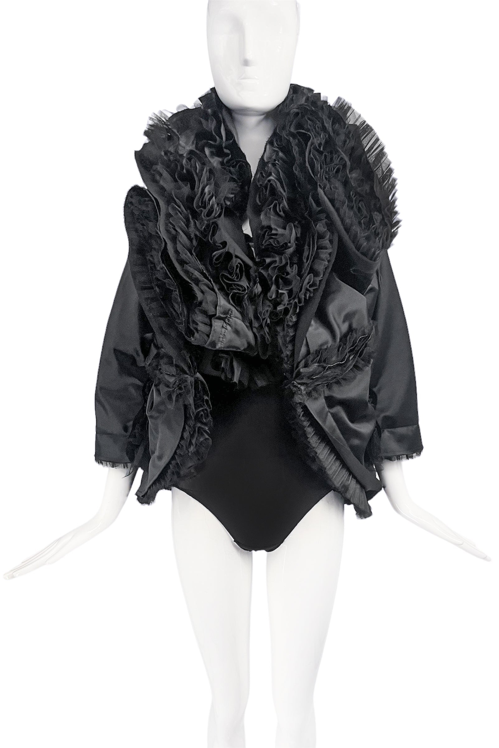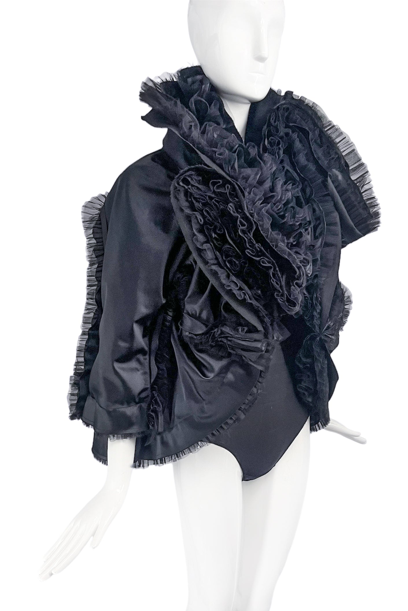 Comme des Garcons Black Satin Ruffle Tulle Couture Cape Jacket