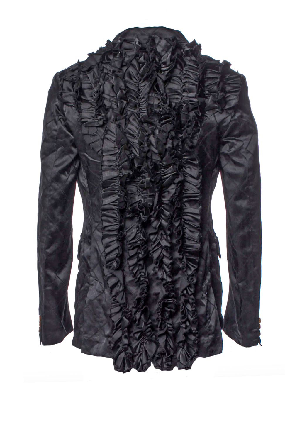 Comme Des Garcons Homme Black Satin Quilted Ruffle Tuxedo Jacket