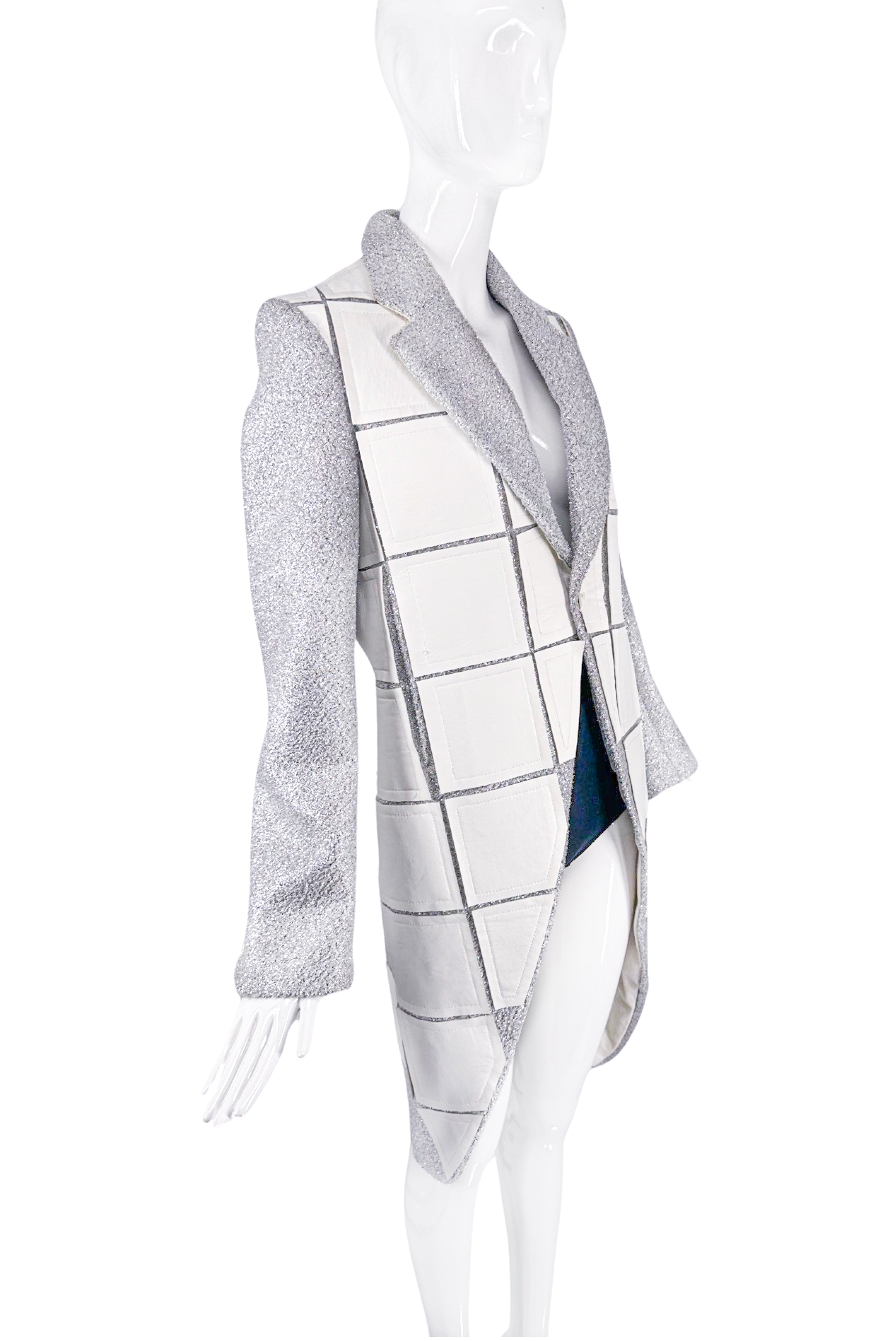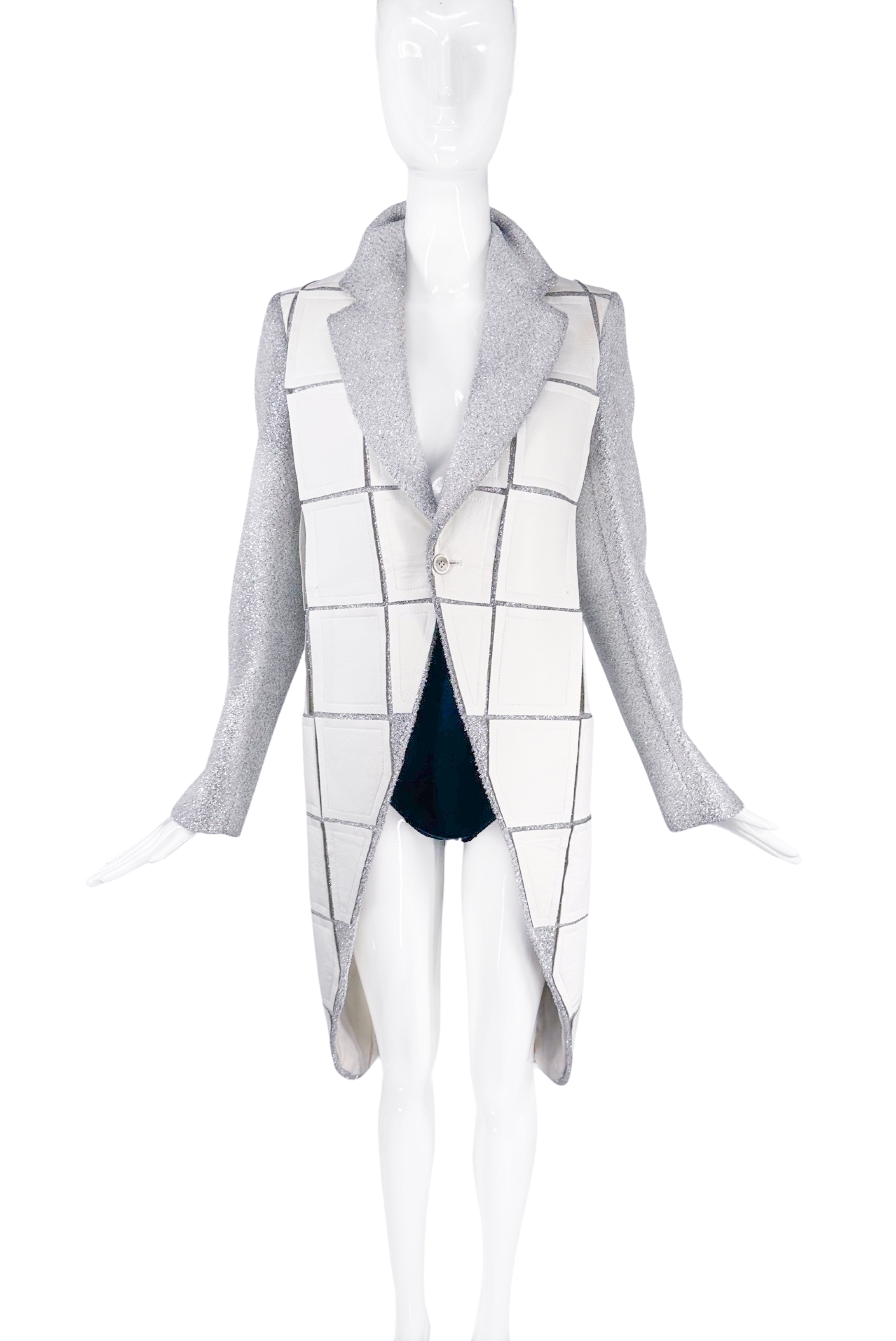Comme des Garcons Homme Plus Silver Lurex Sparkle White Faux Leather Applicate Coat Fall 2018