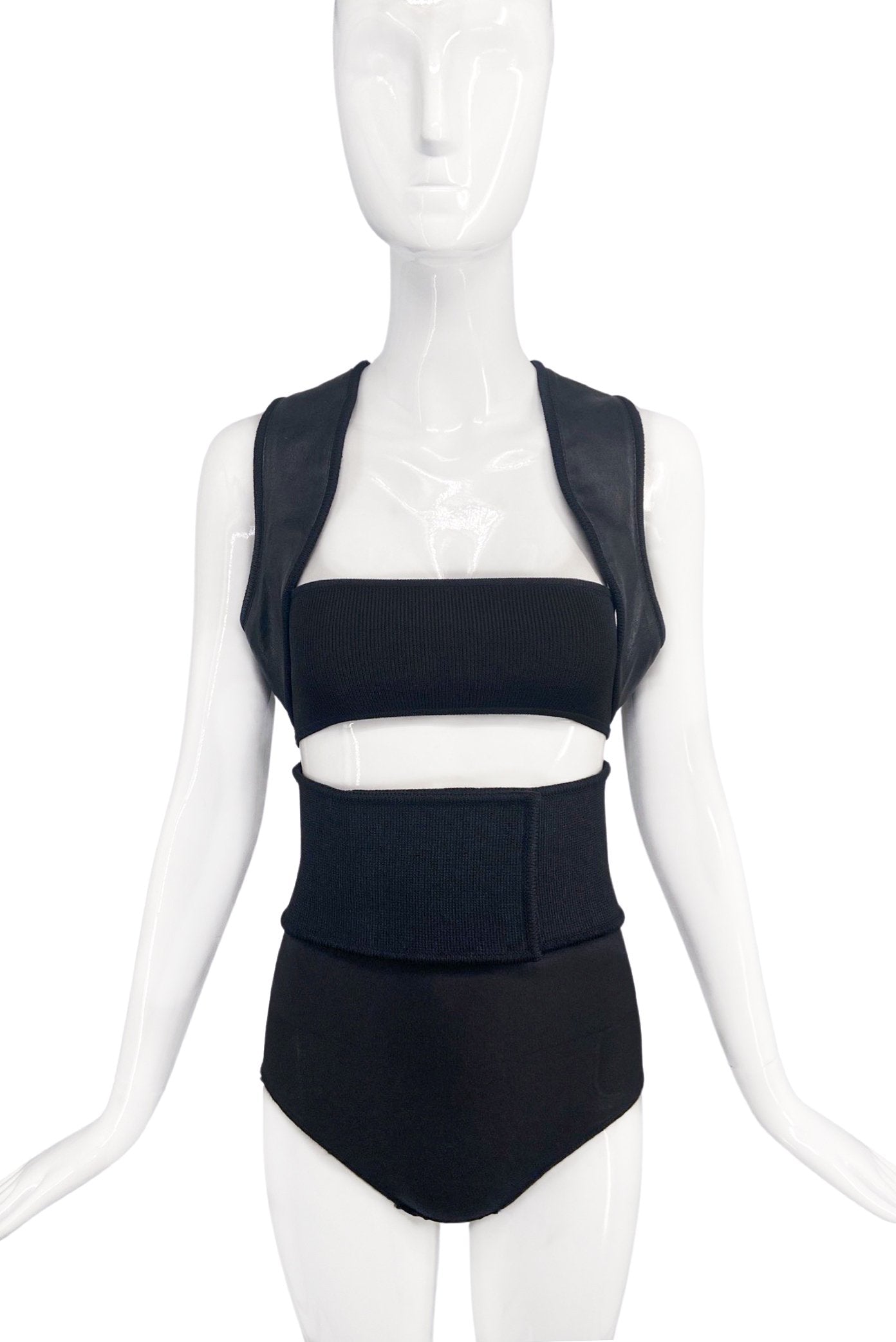 Givenchy Black Corset Halter Vest Harness Leather Shoulder Strap Knit Top
