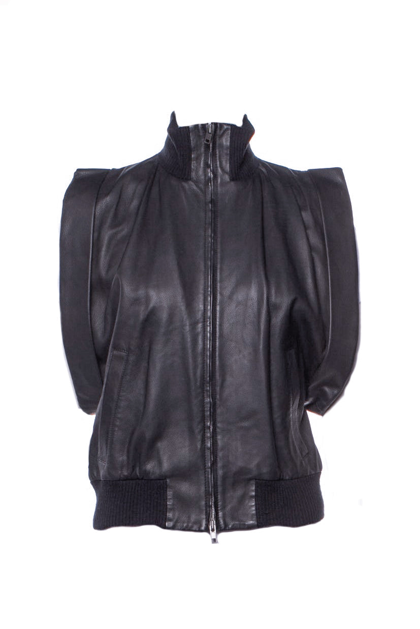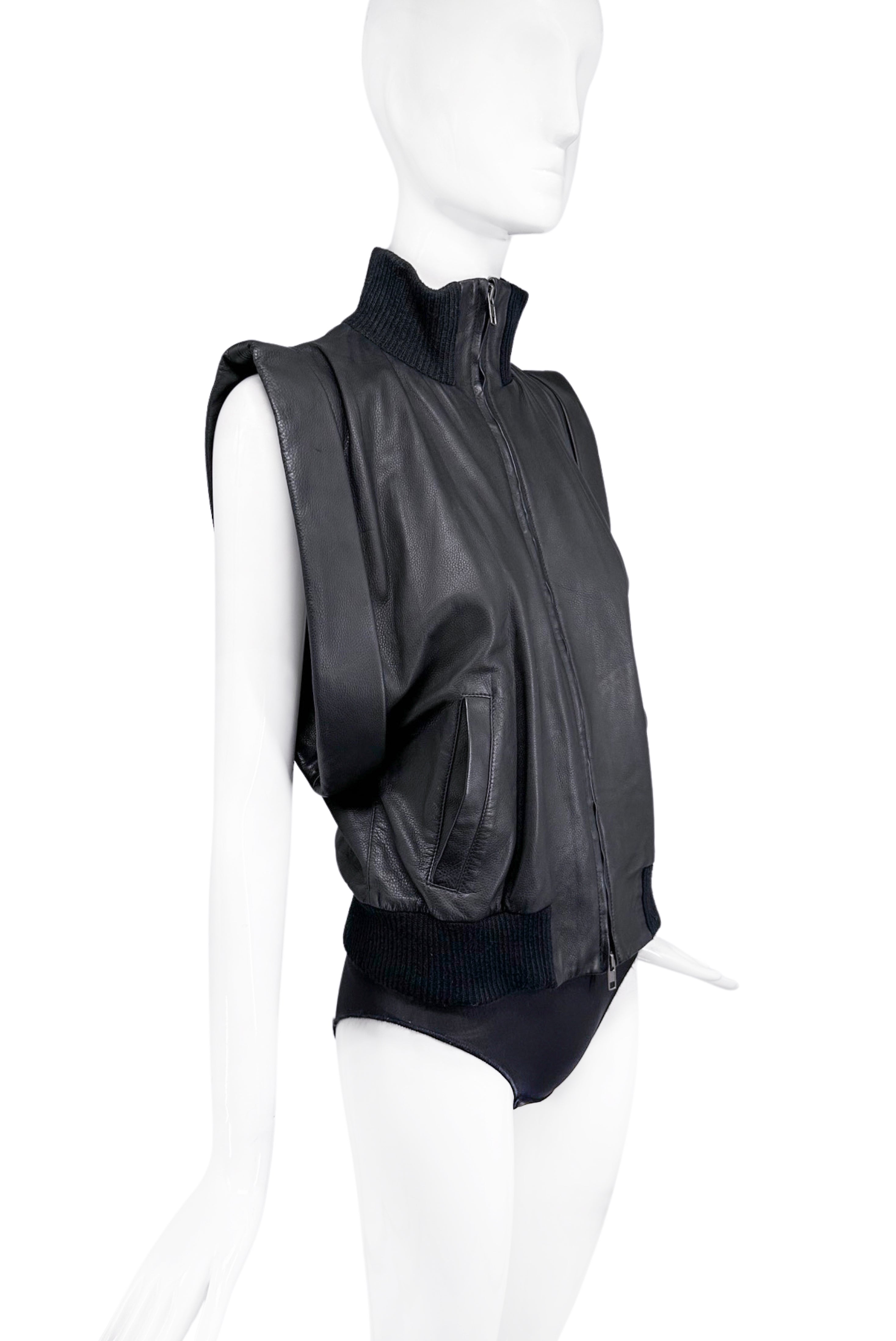Maison Martin Margiela Black Leather Vest with Exaggerated Shoulder Detail
