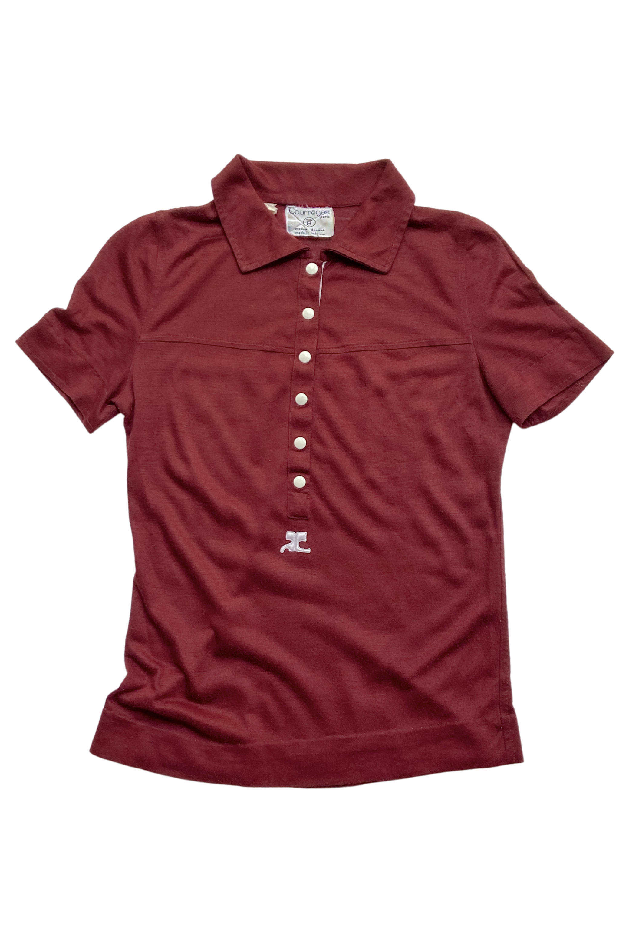 Courrèges Red Vintage Polo Shirt White Logo & Buttons