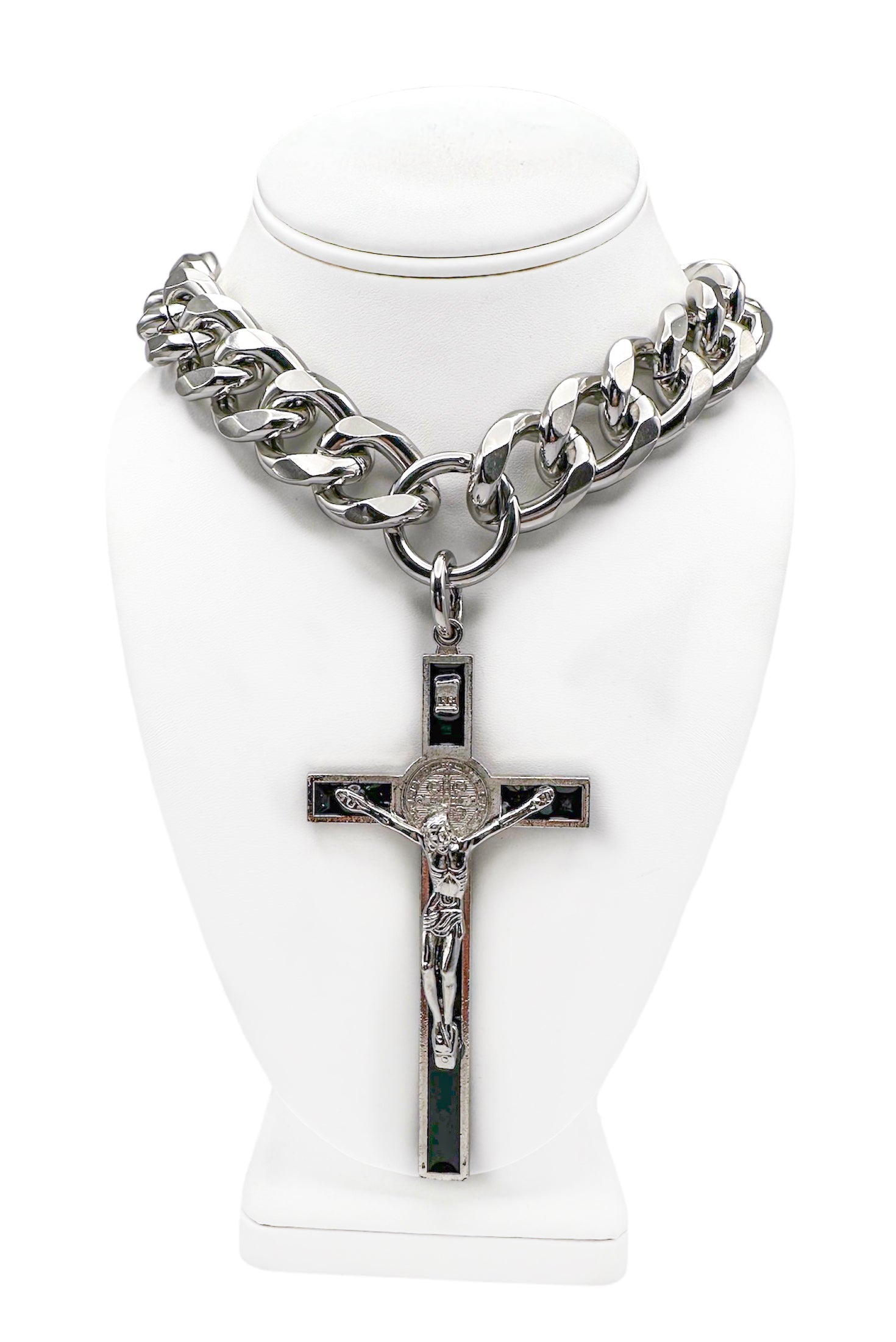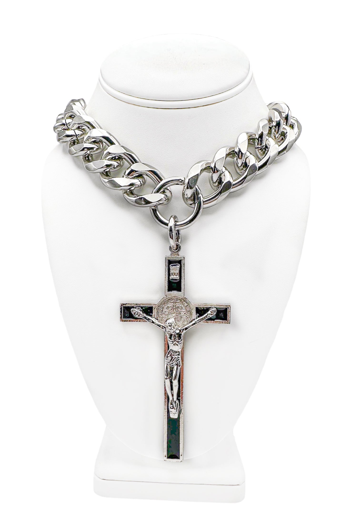 Cruize "Robin" Silver Metal Heavy Duty Chain Oversized Cross Necklace