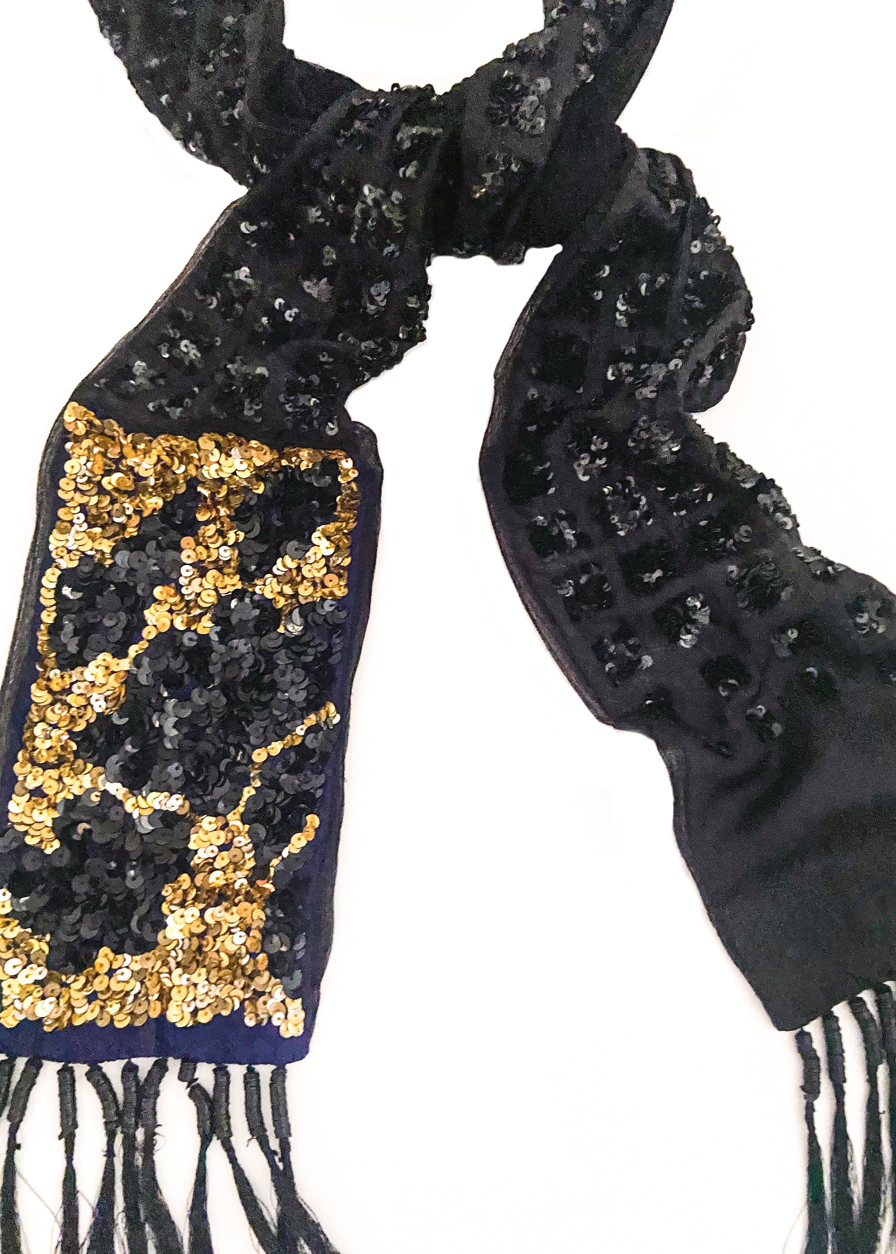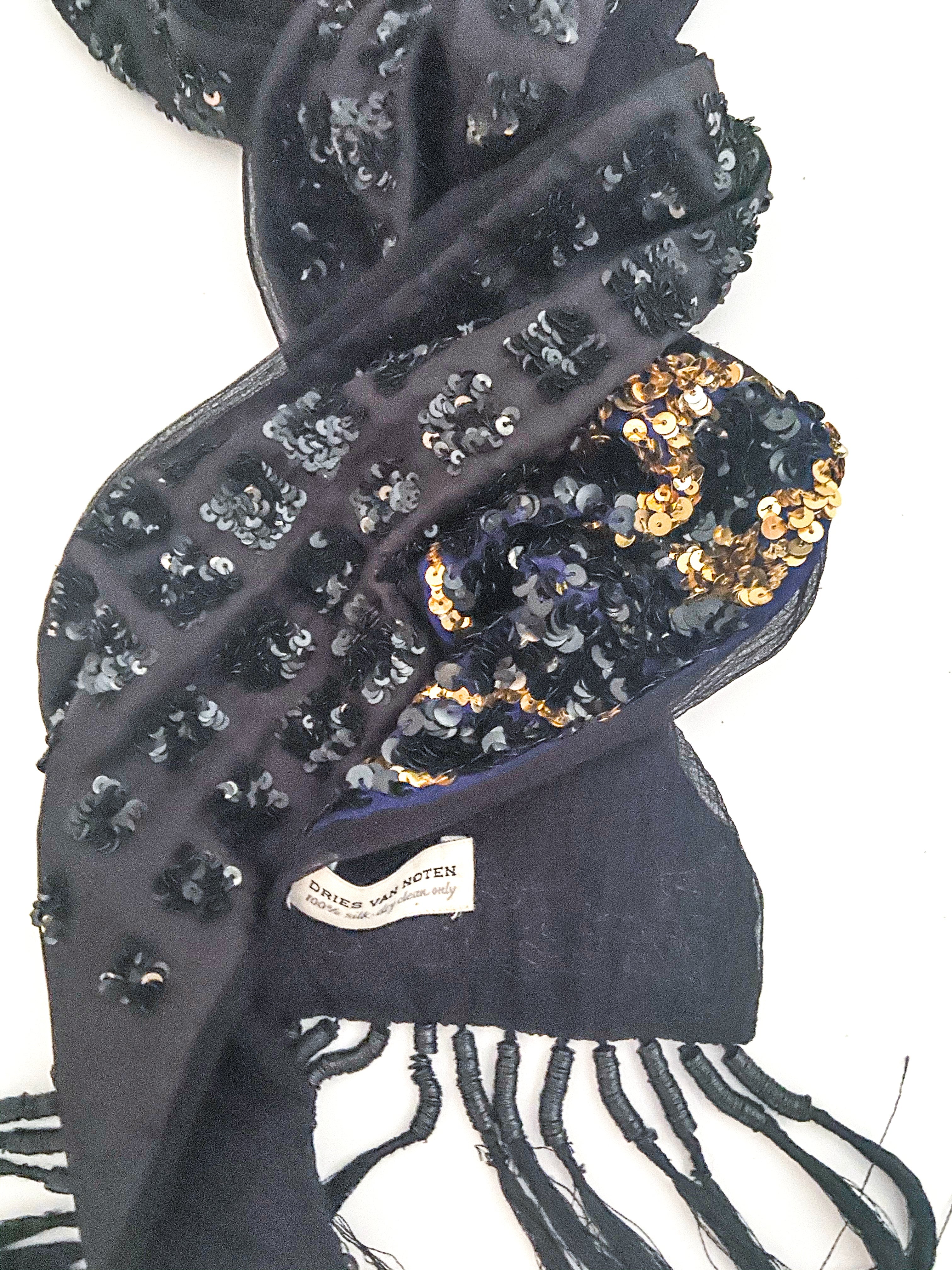 Dries Van Noten Black Evening Scarf with Sequin Details