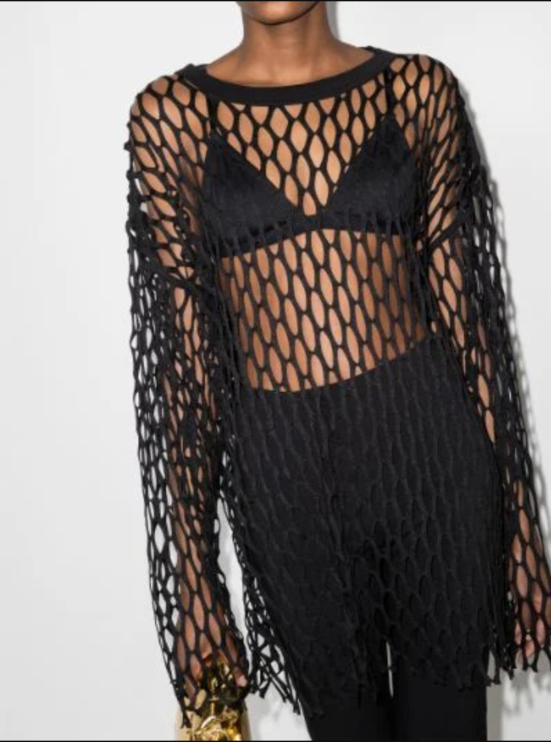 Dries Van Noten Black Oversized Fishnet Mesh Top