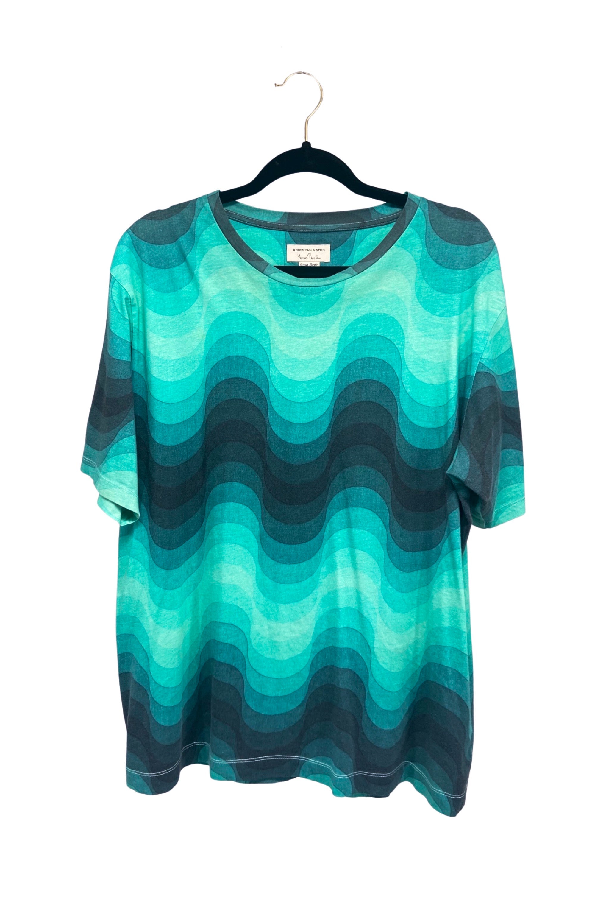 Dries Van Noten Teal and Navy Blue Ombré "Vernon Panton" Pattern T-Shirt SS2019