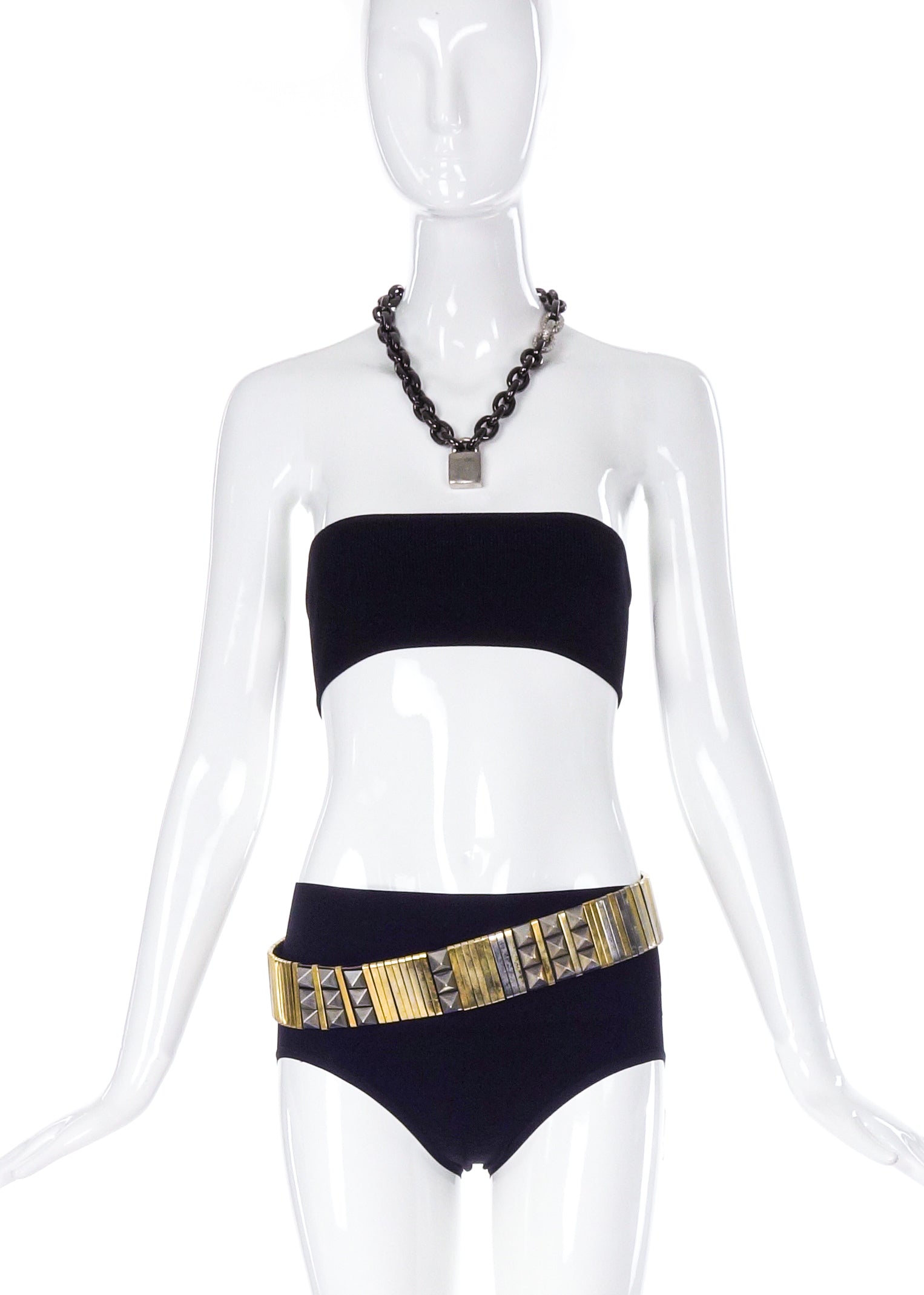 The necklace has a matching gunmetal, medium sized chain with padlock bracelet. Please not the bracelet has a bit of tarnishing. Bracelet is in good condition.