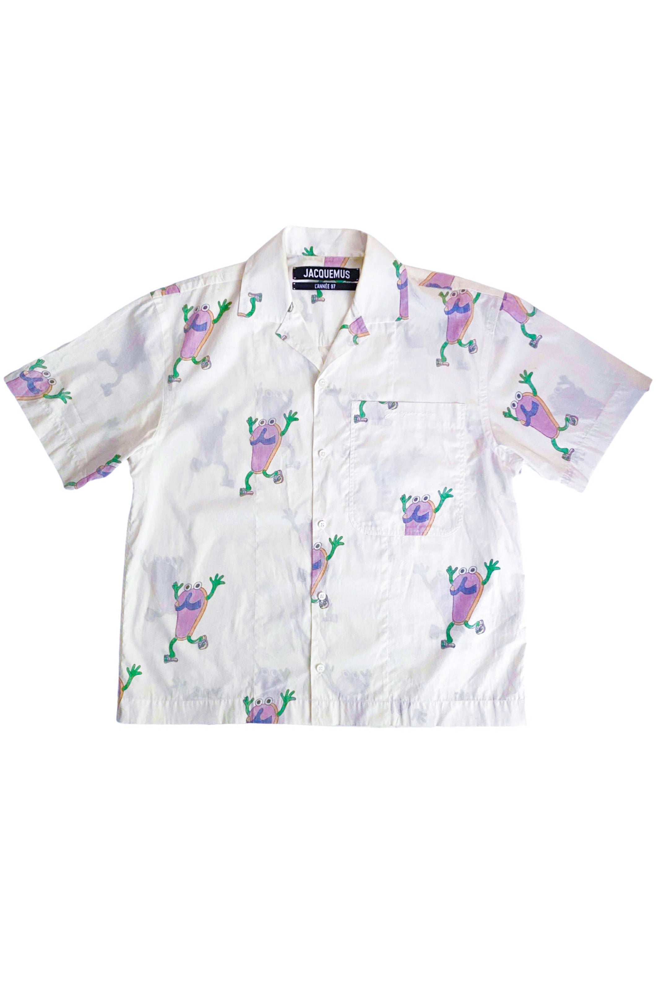Jacquemus White Cotton Short Sleeve Button-Up with Flip-Flop Print FW2020*