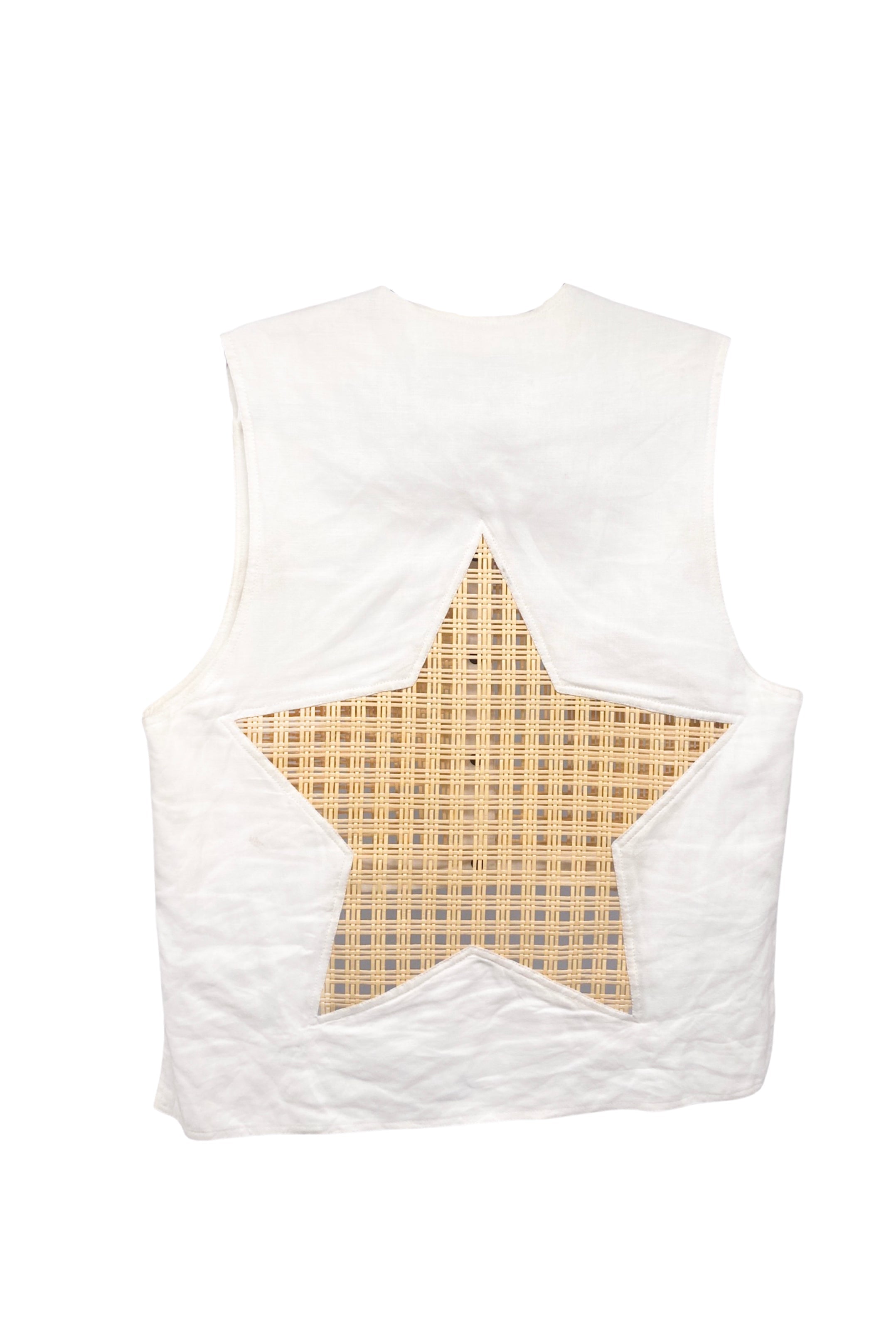Jean-Charles de Castelbajac White Cotton Vest with Straw Weave Details and Star Cut-Out on Back