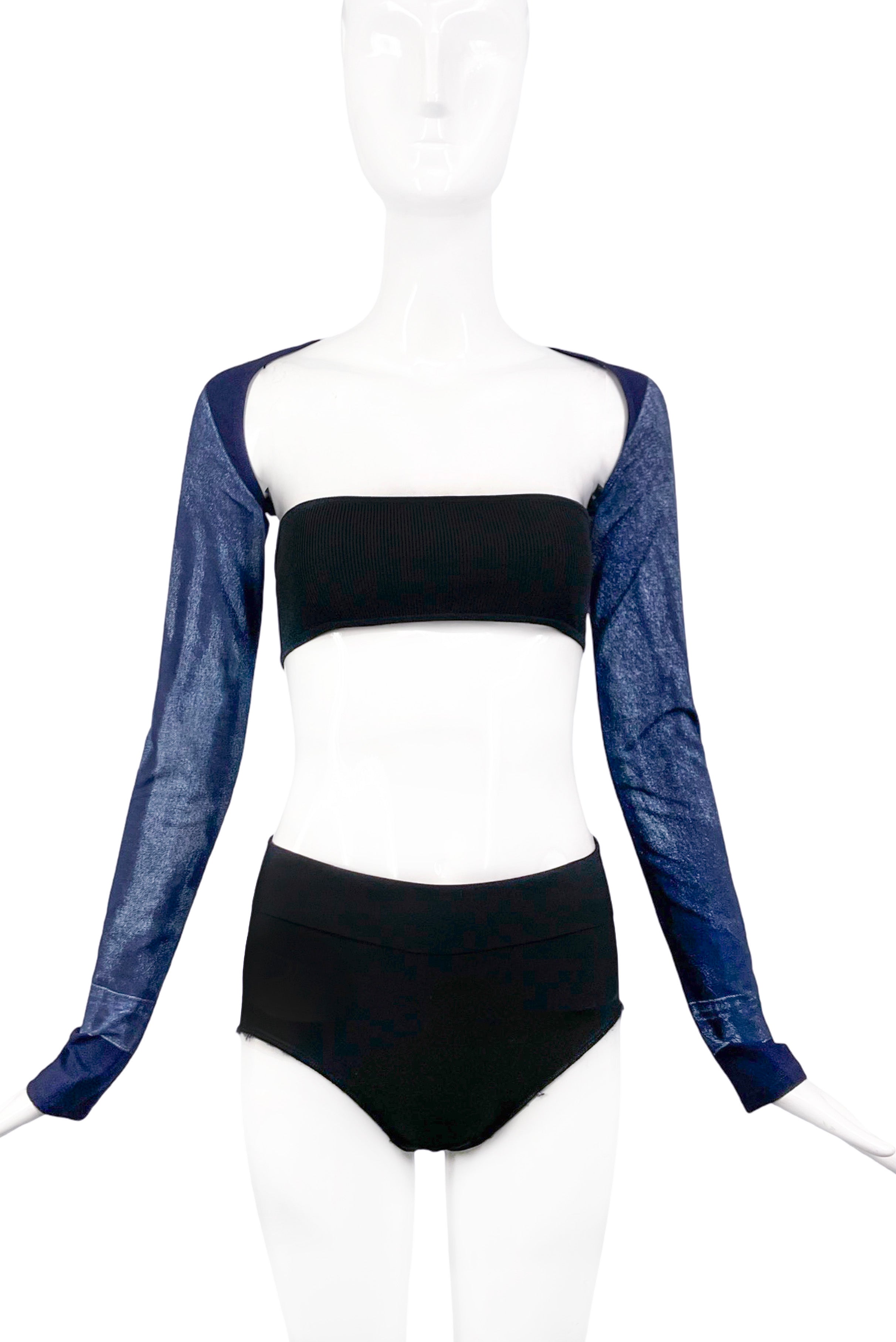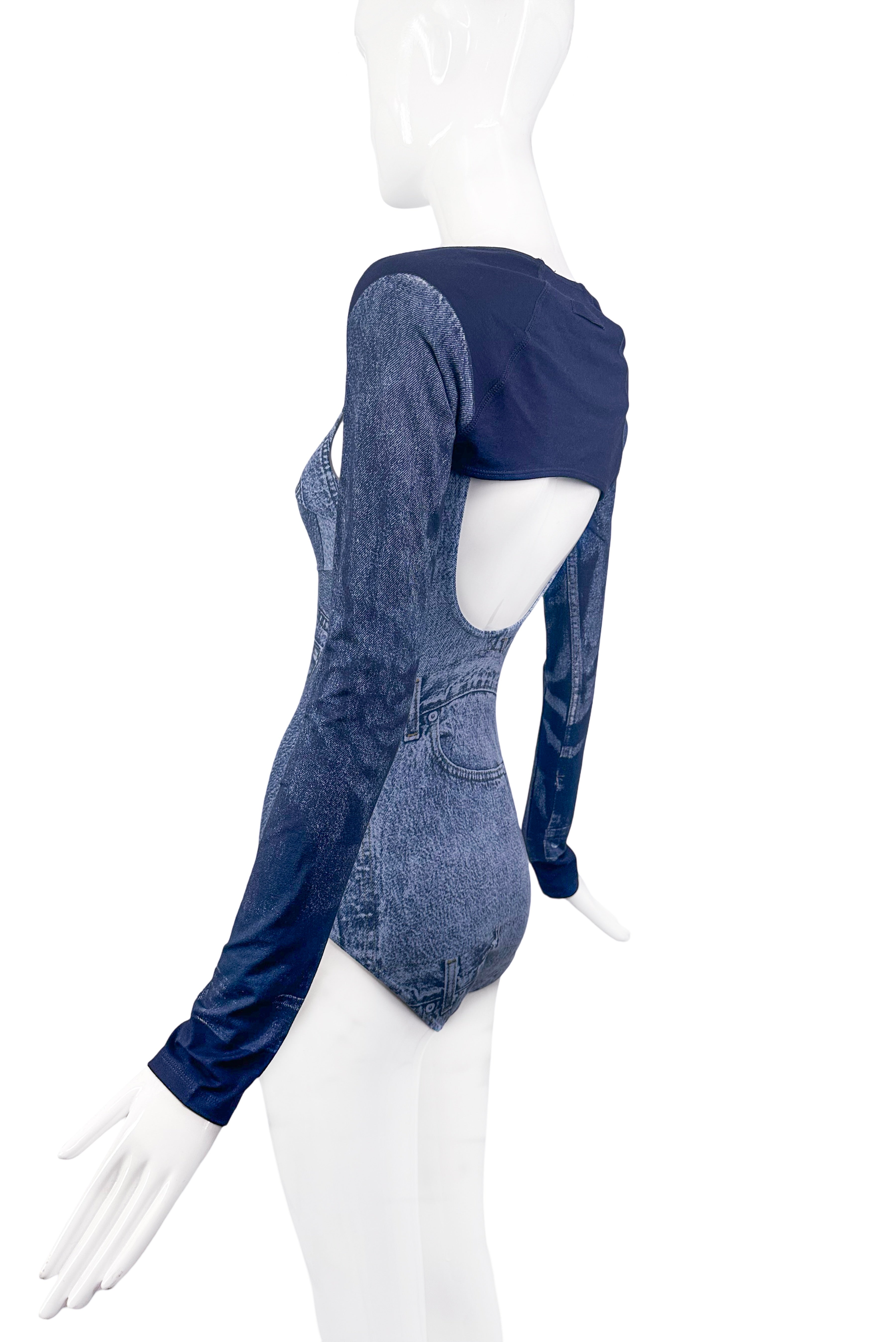 Jean Paul Gaultier Dark Blue Denim Printed Sleeve Shrug