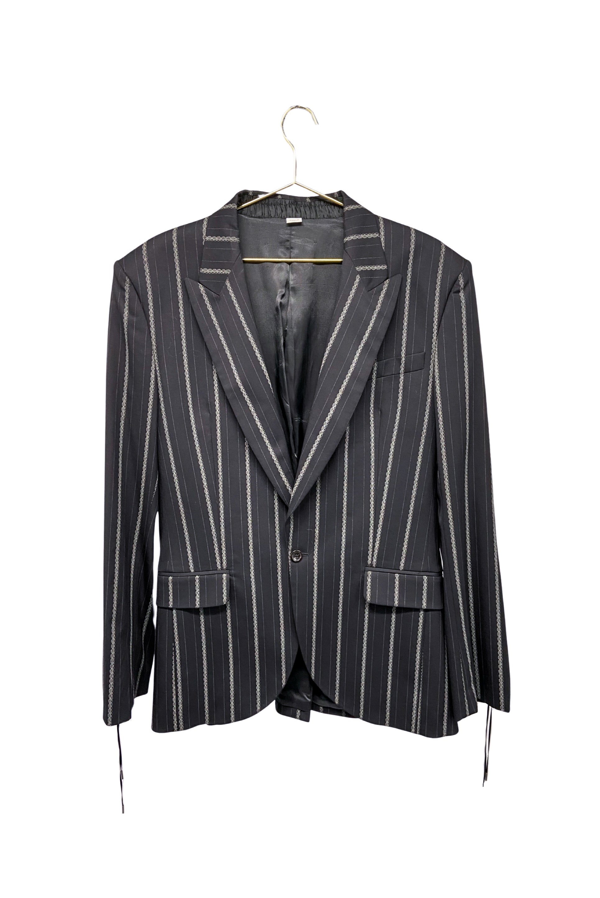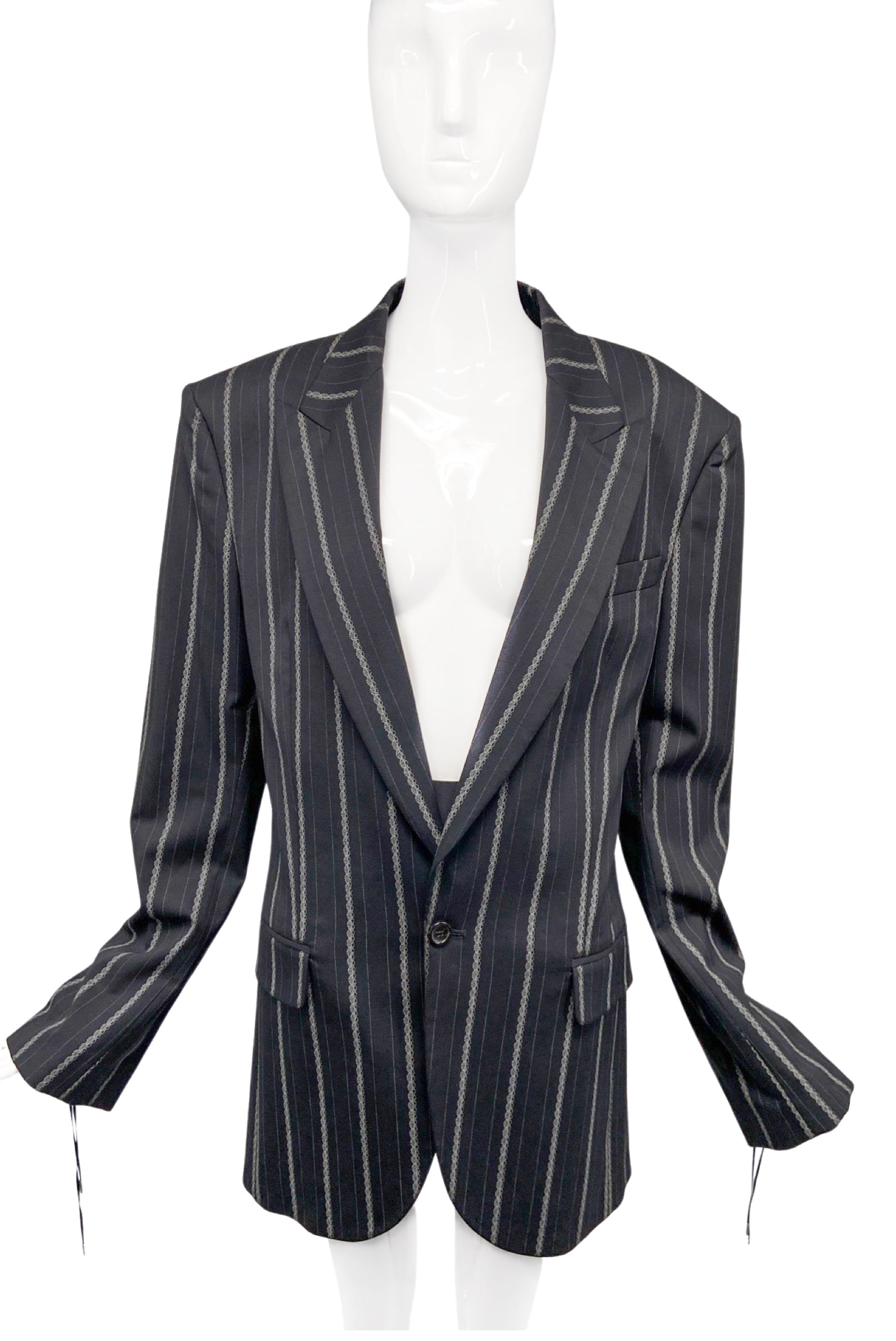 John Galliano Black Pin Stripe Lace Stripe Corset Sleeve Men's Unisex Blazer