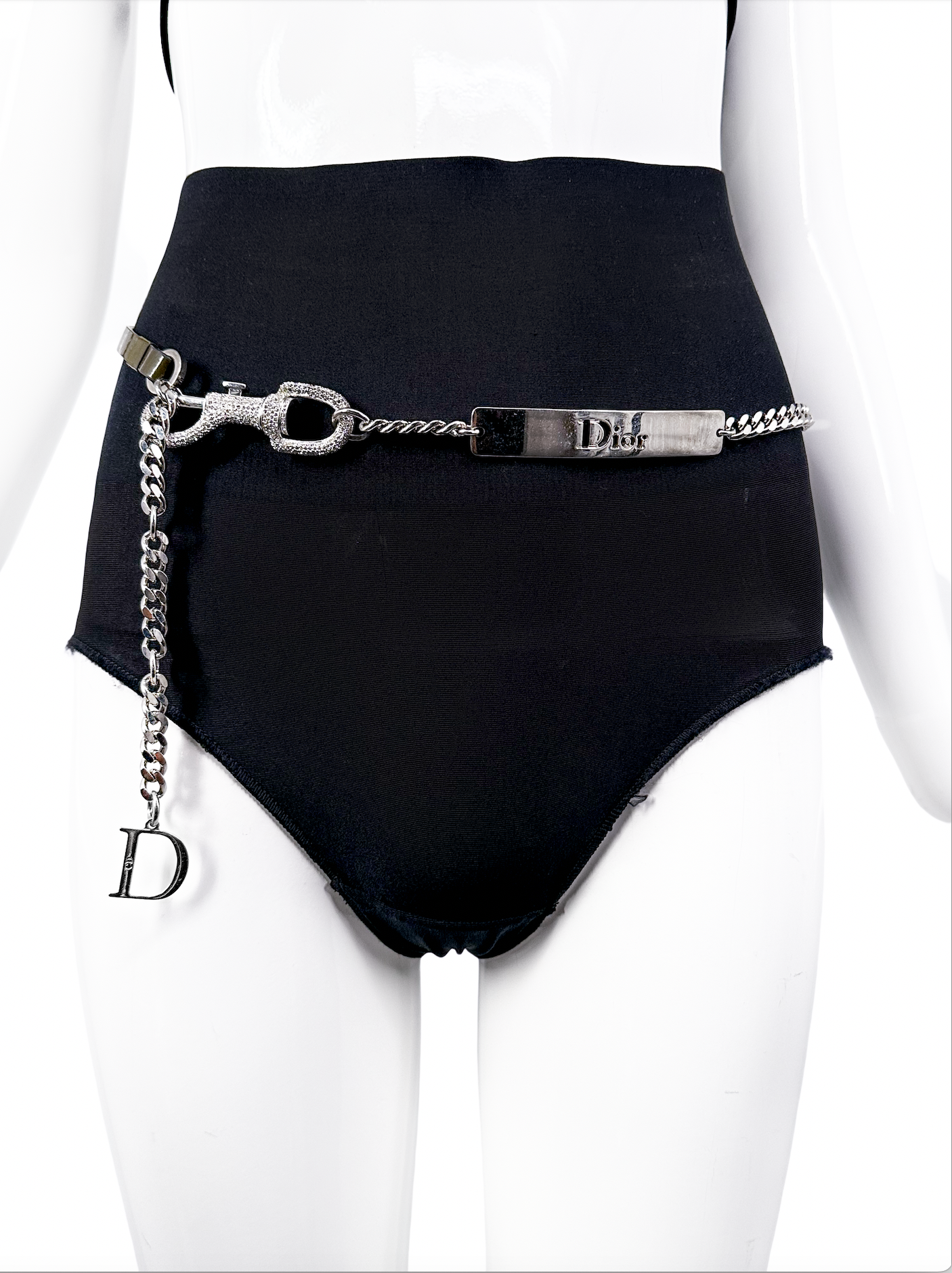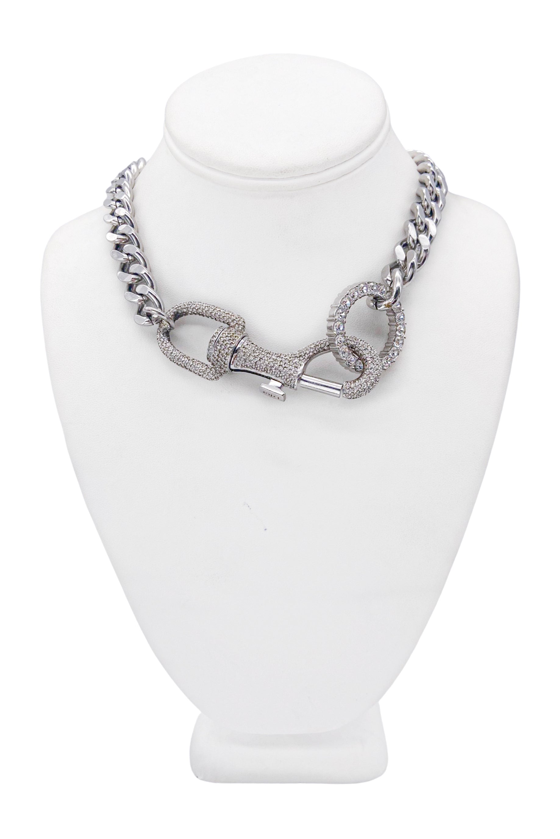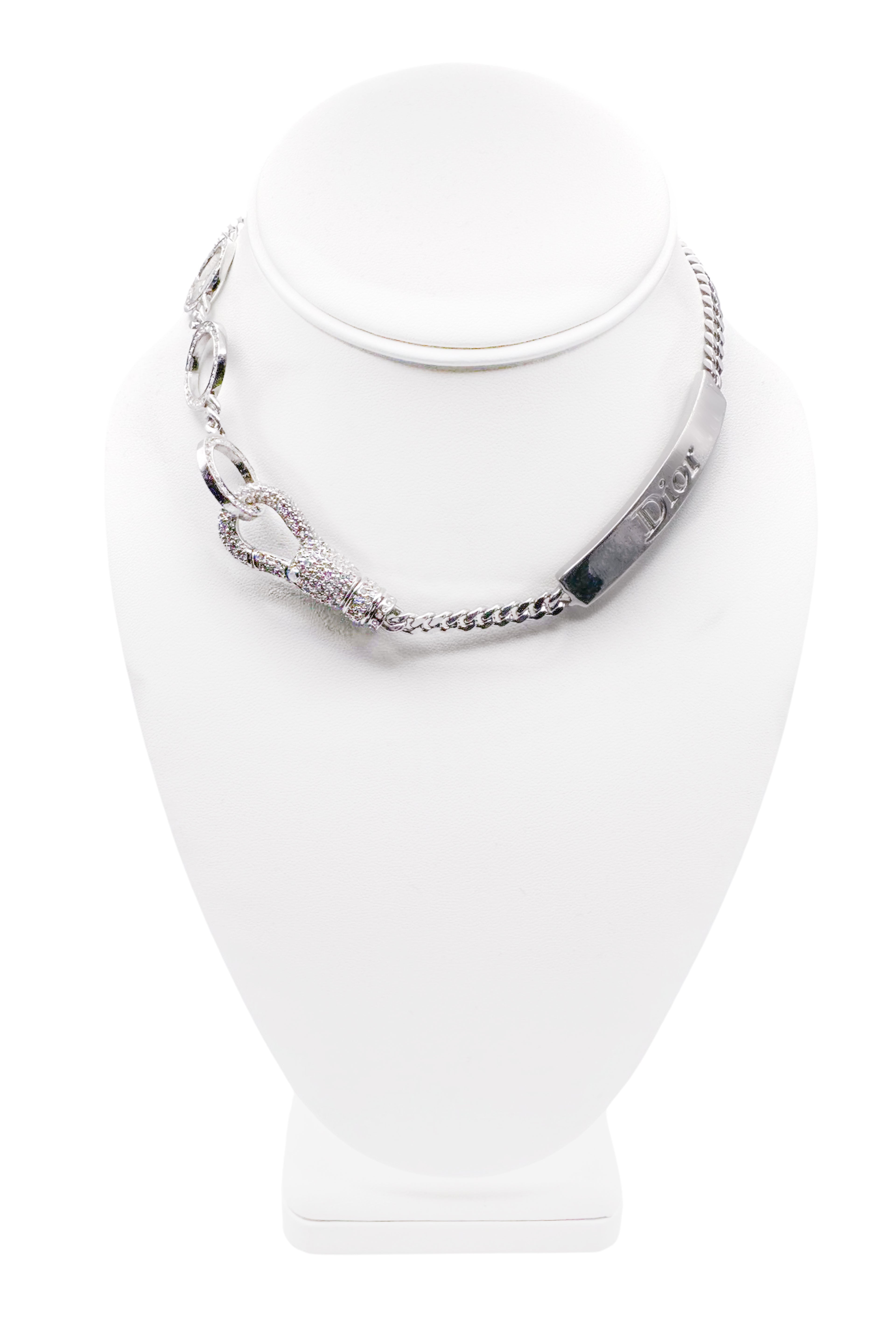 John Galliano For Christian Dior Silver Curb Chain Pave Crystal Safety Lobster Clasp Necklace Spring 2003