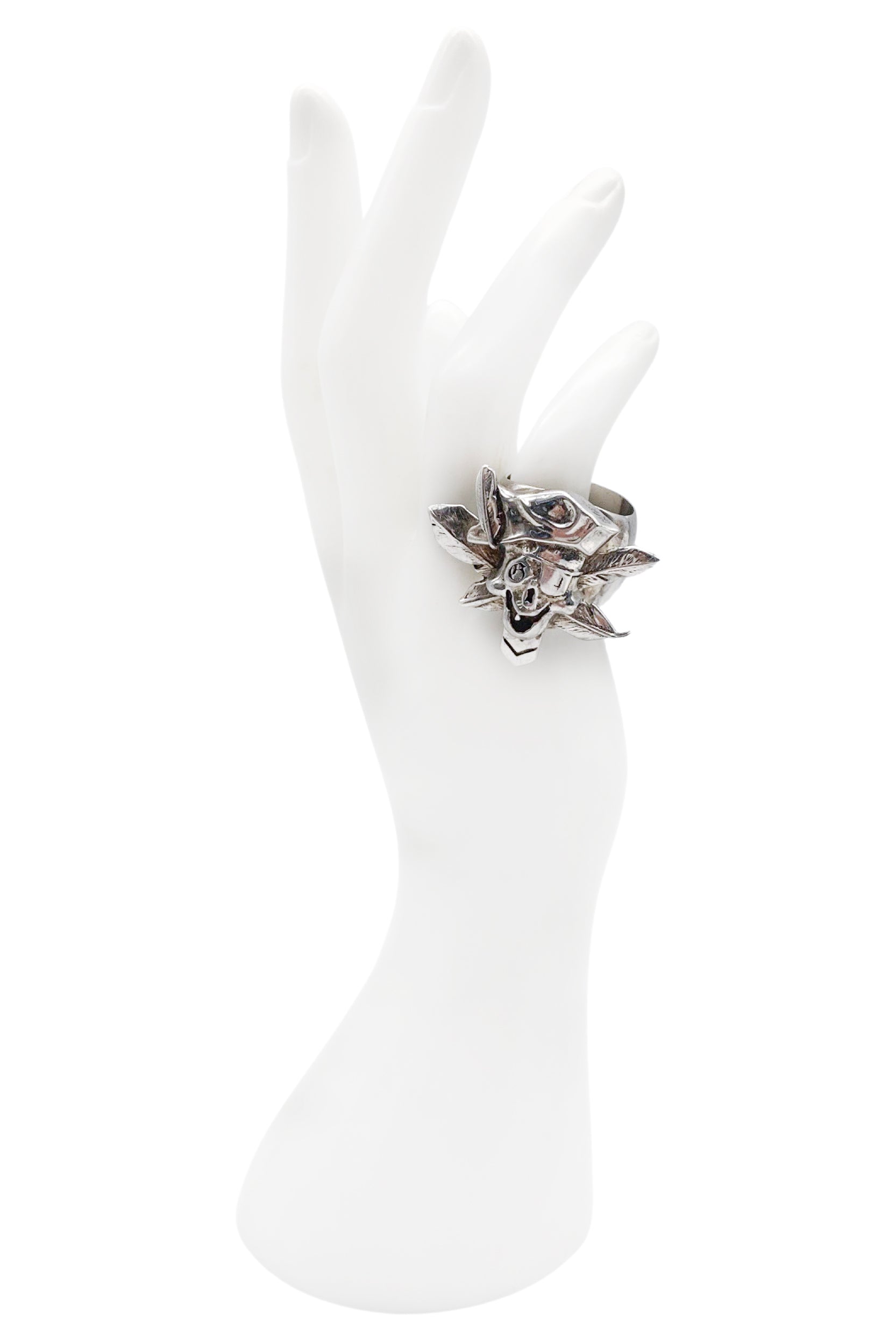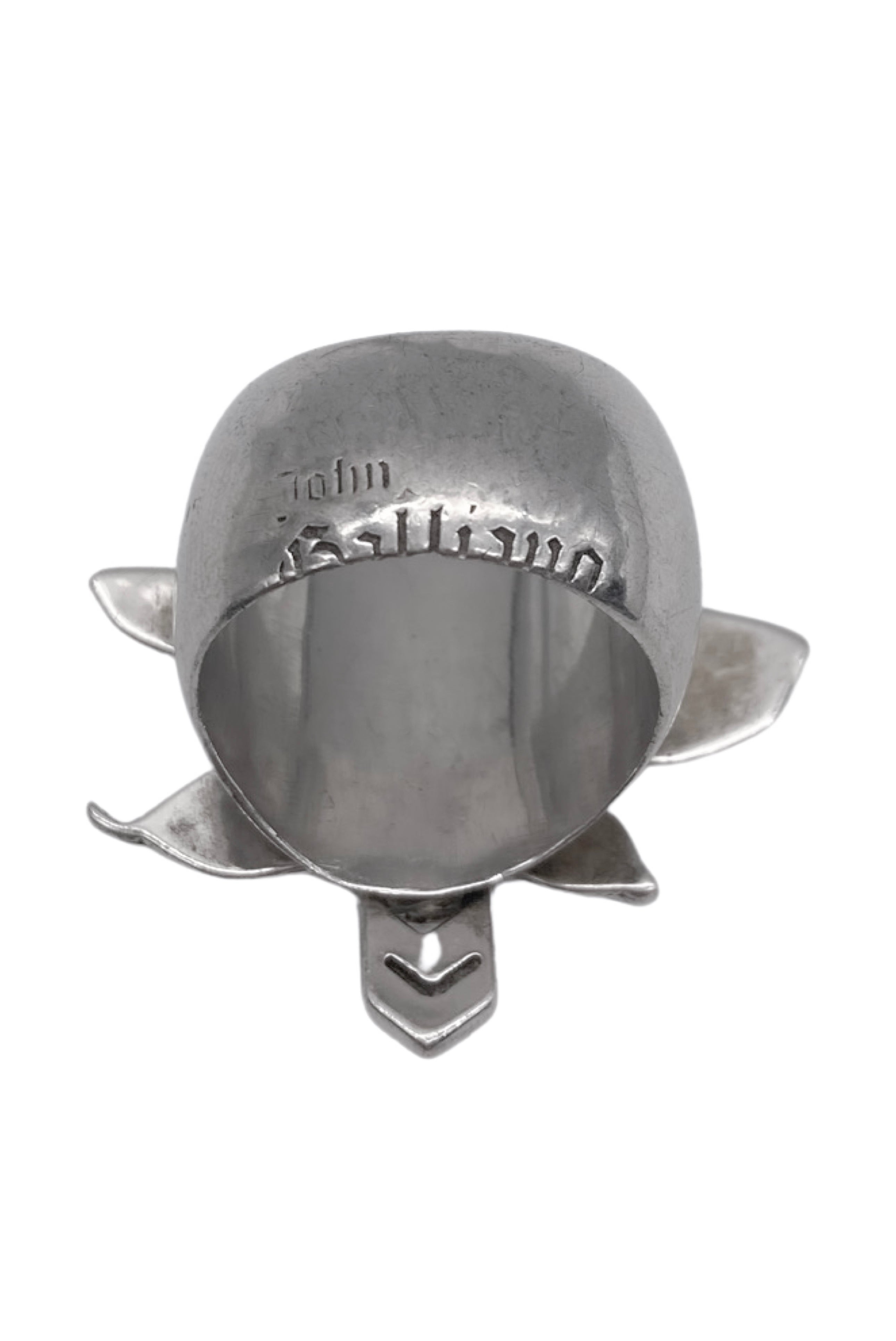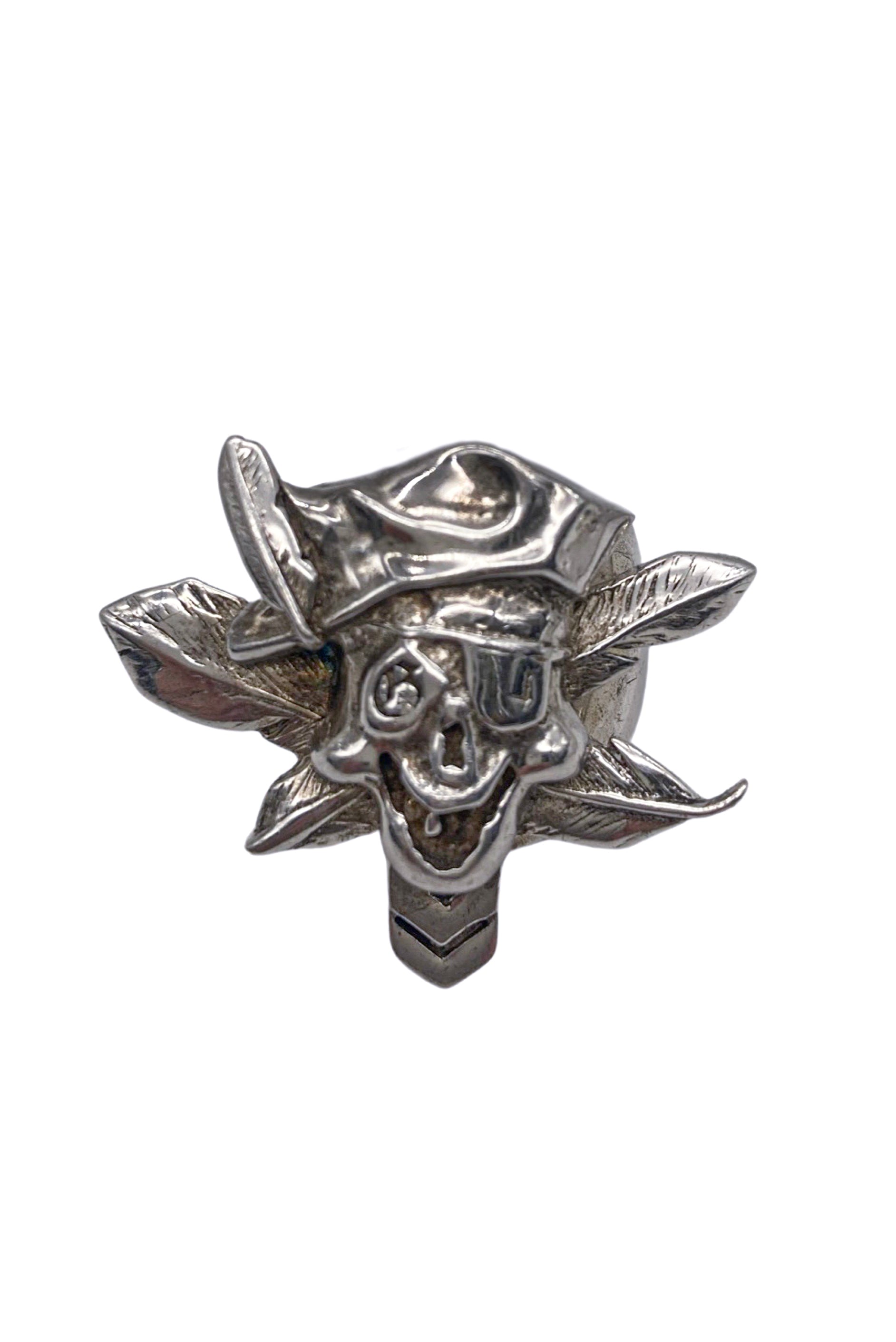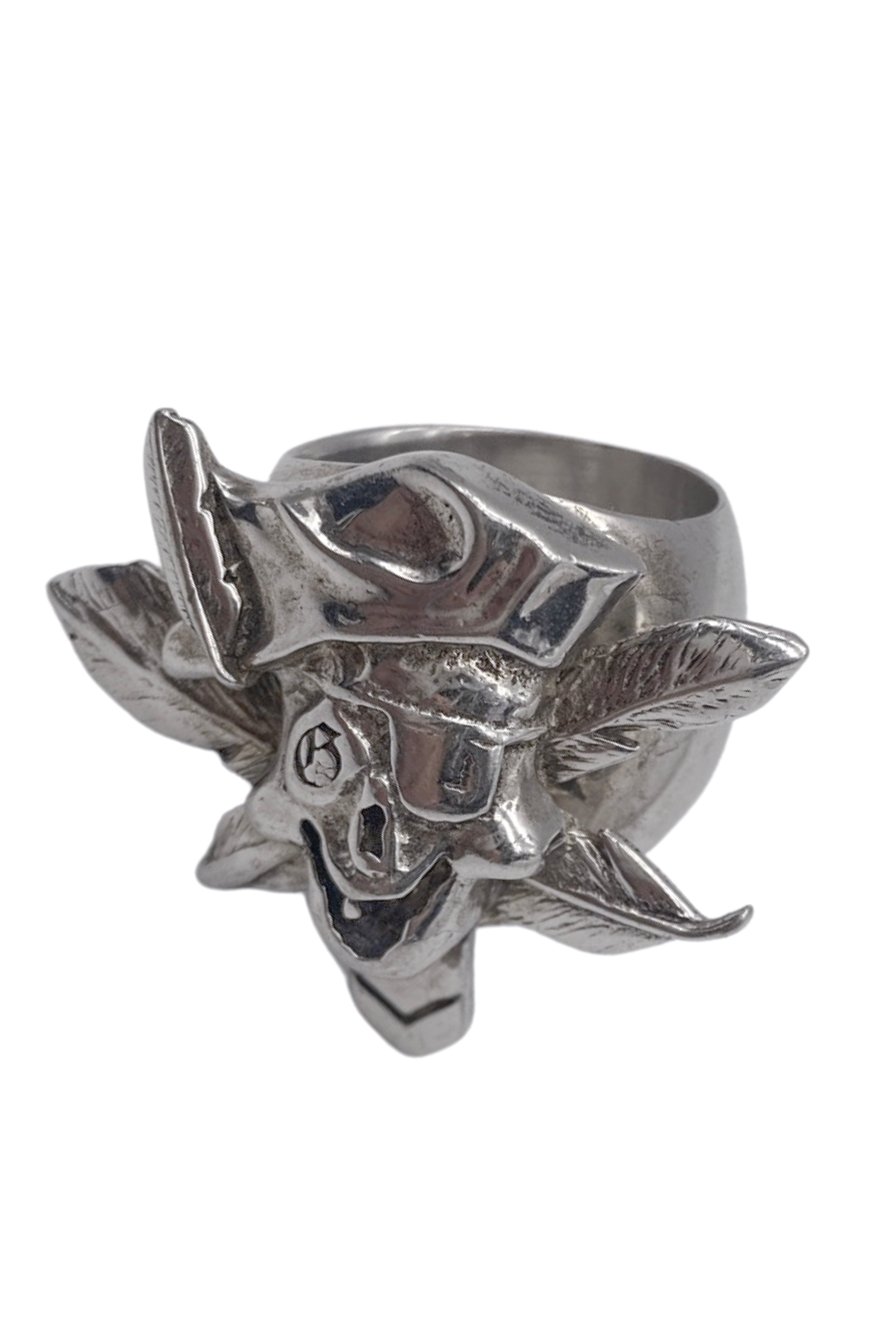 John Galliano Silver Metal Pirate Skull Feather Ring