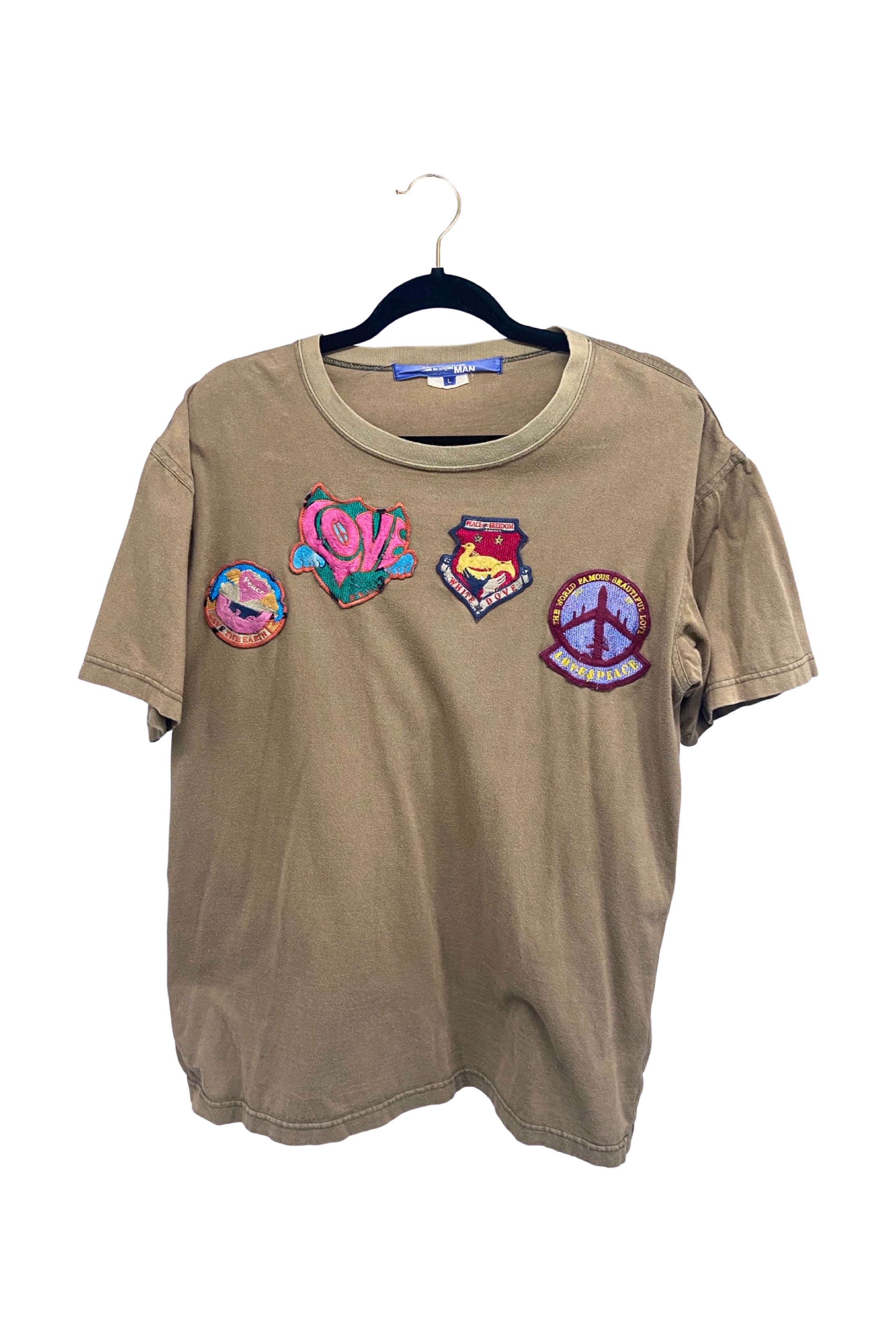 Junya Watanabe Grey T-Shirt with Vintage Inspired Patch Details