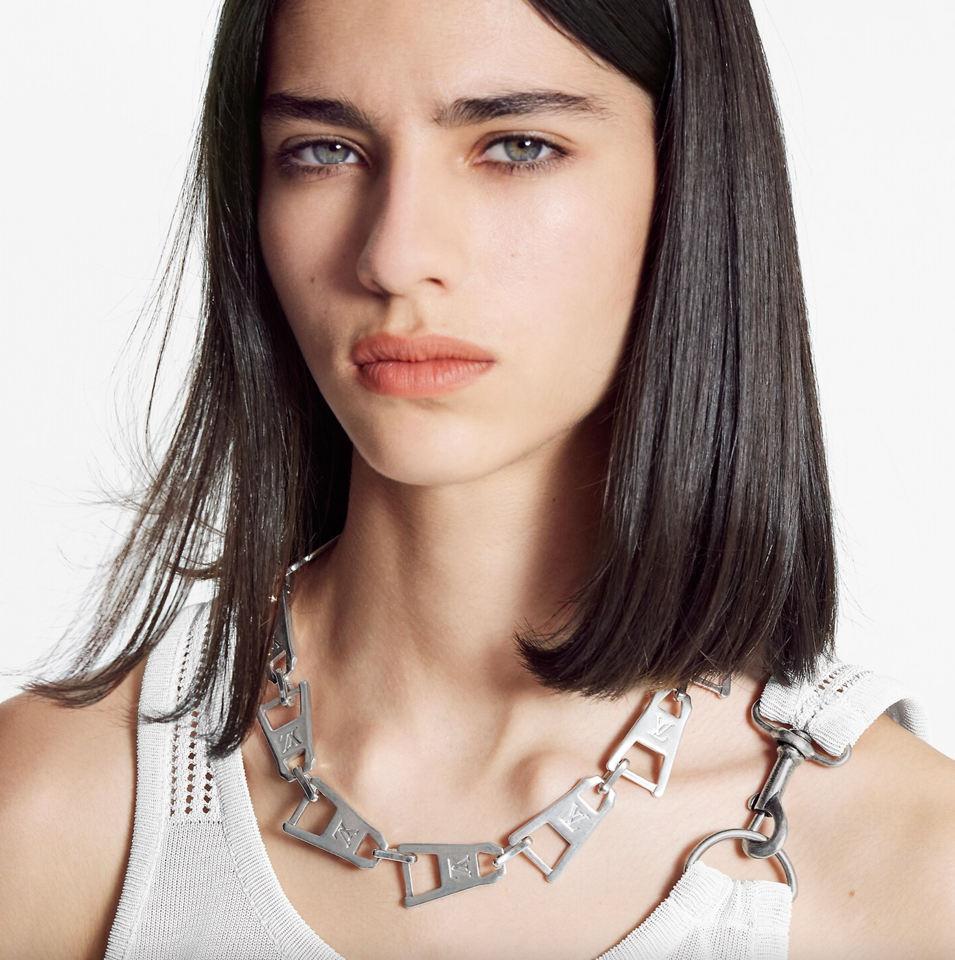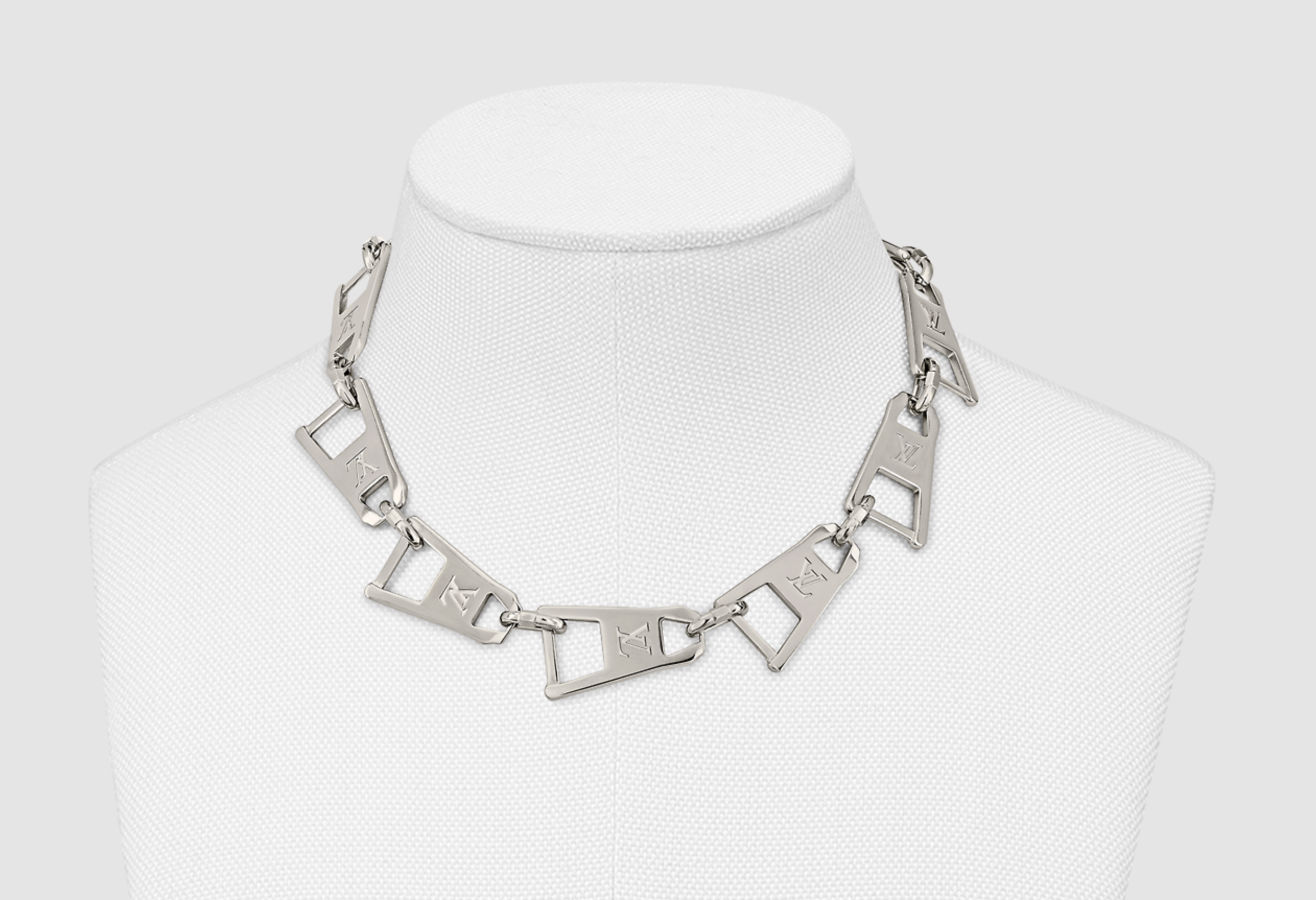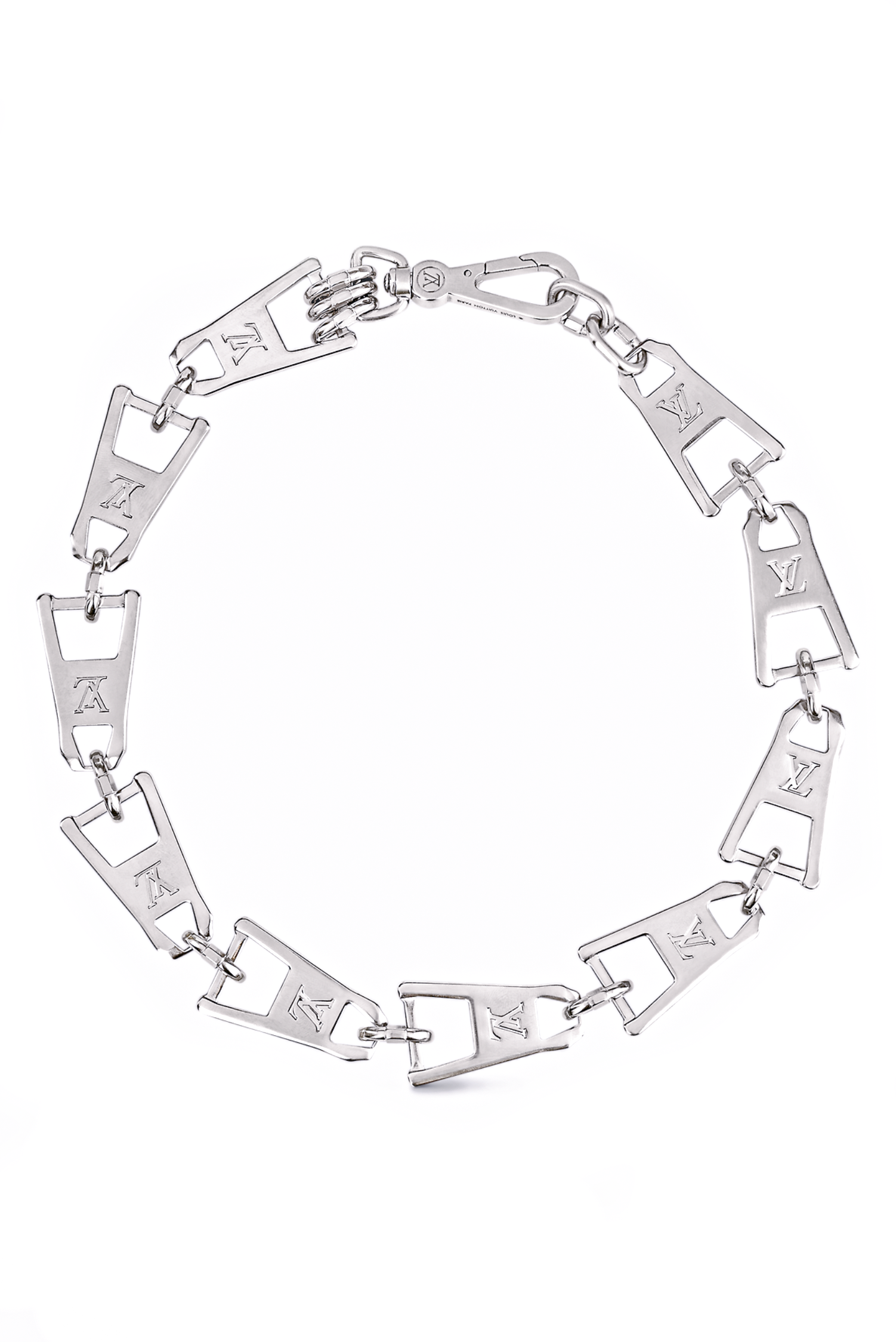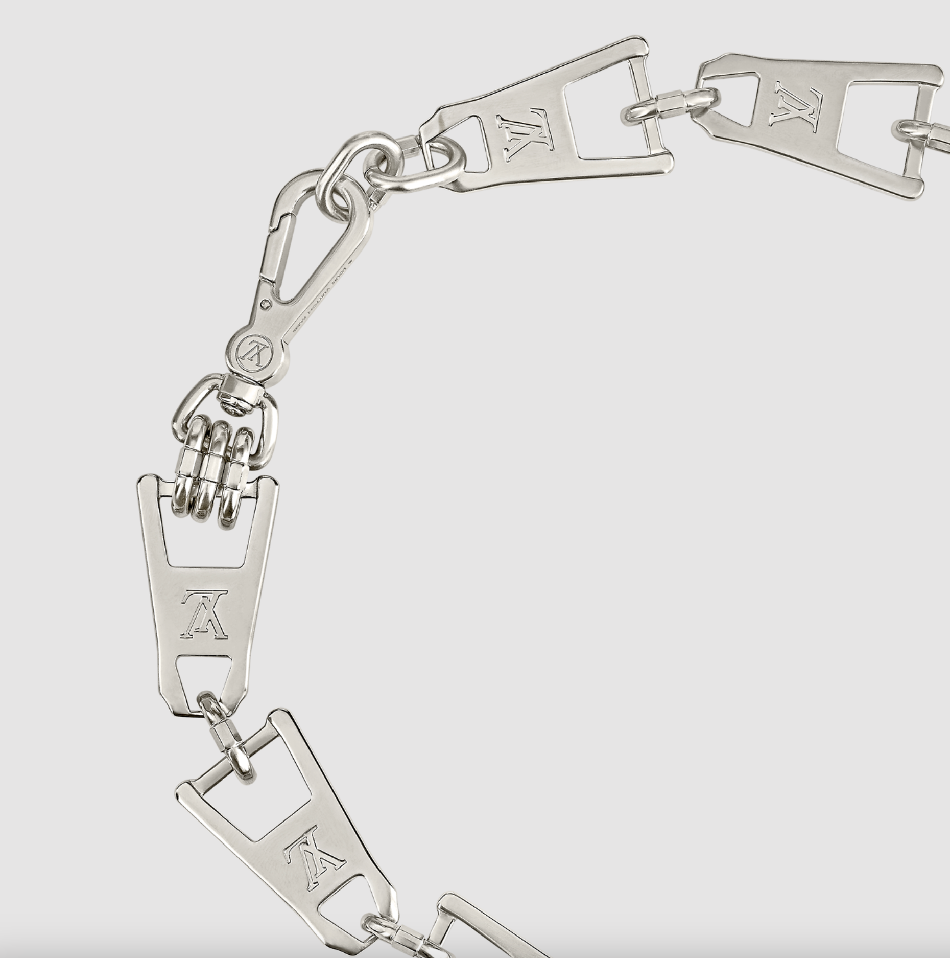Louis Vuitton Silver Metal Zipper Pull Logo Necklace