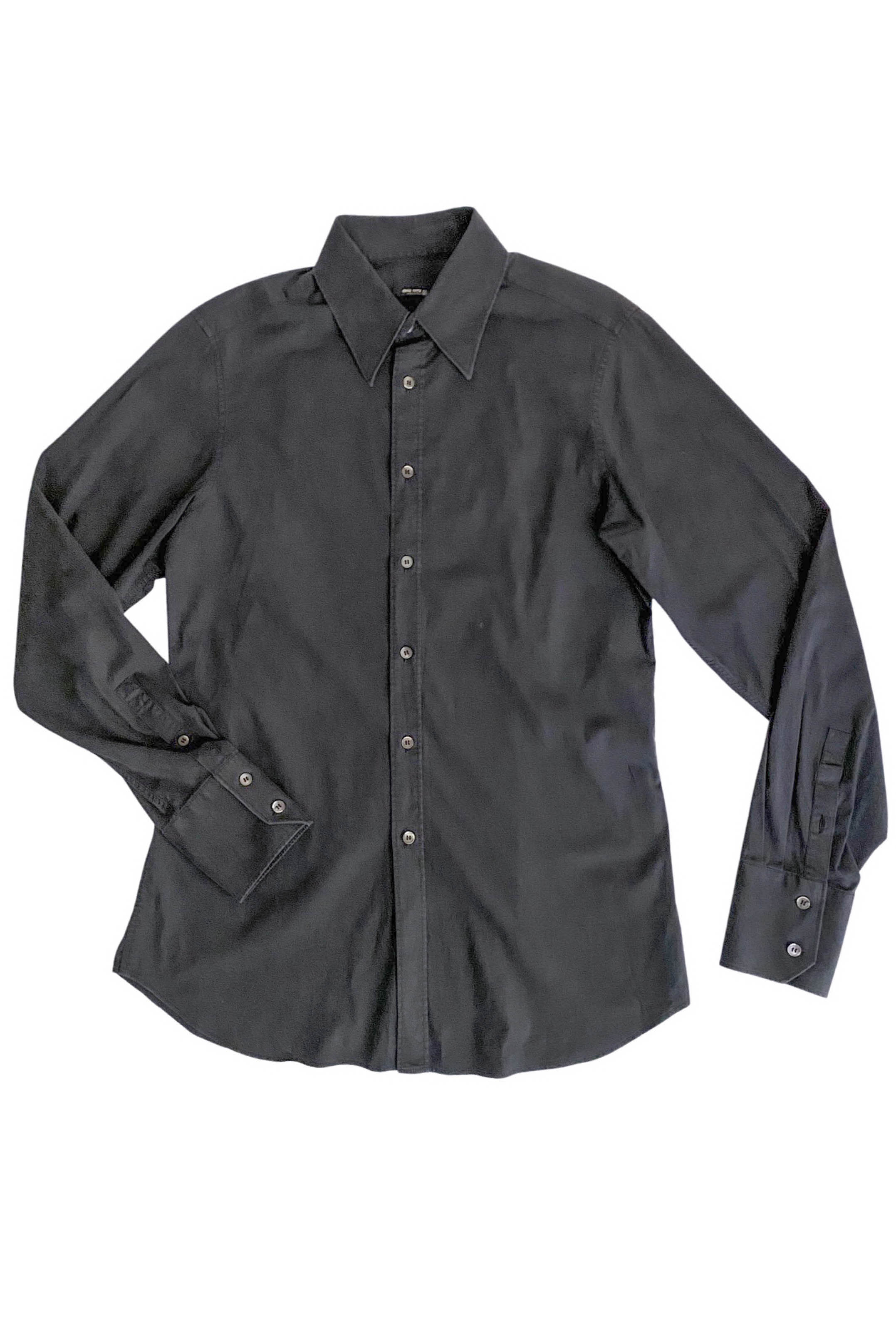 A Miu Miu menswear black cotton fitted style button-up shirt with a large seventies style collar. Circa late 1990's.