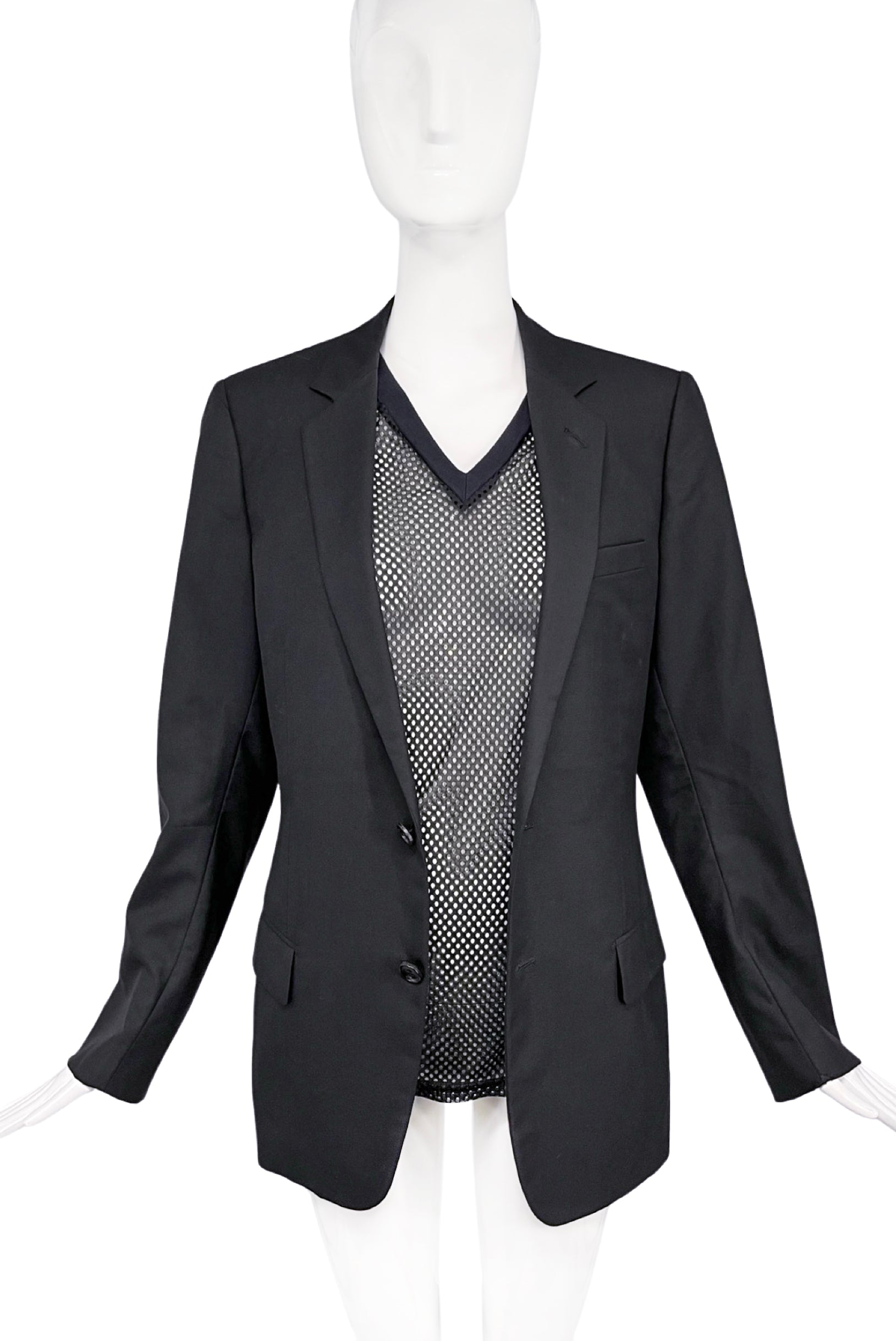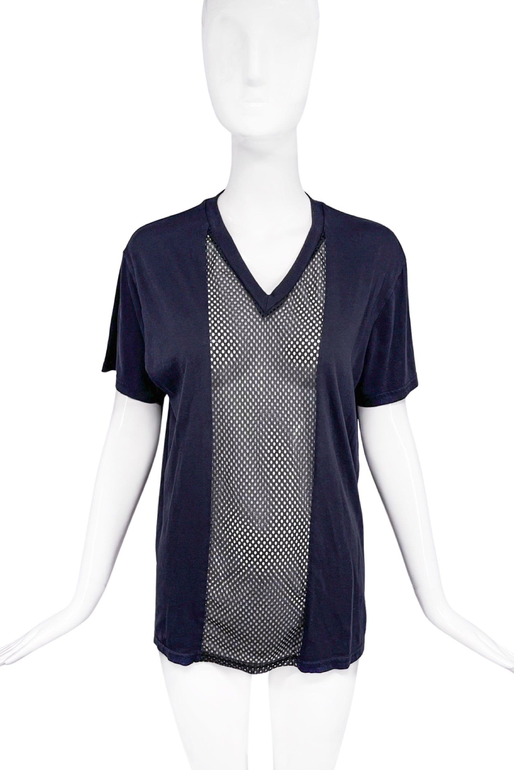 Prada Black Navy Blue V-Neck T-Shirt with Basketball Mesh Insert Detail