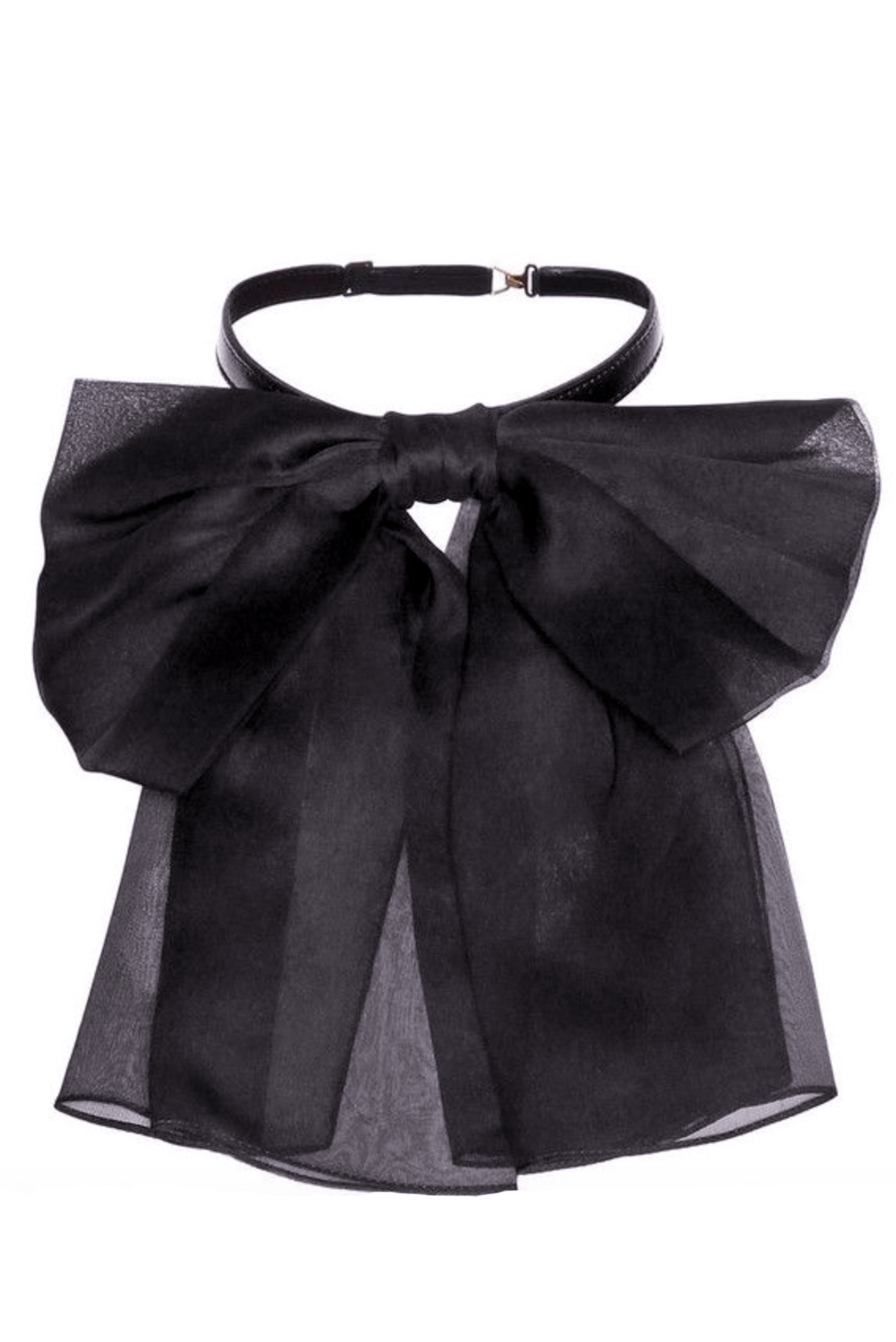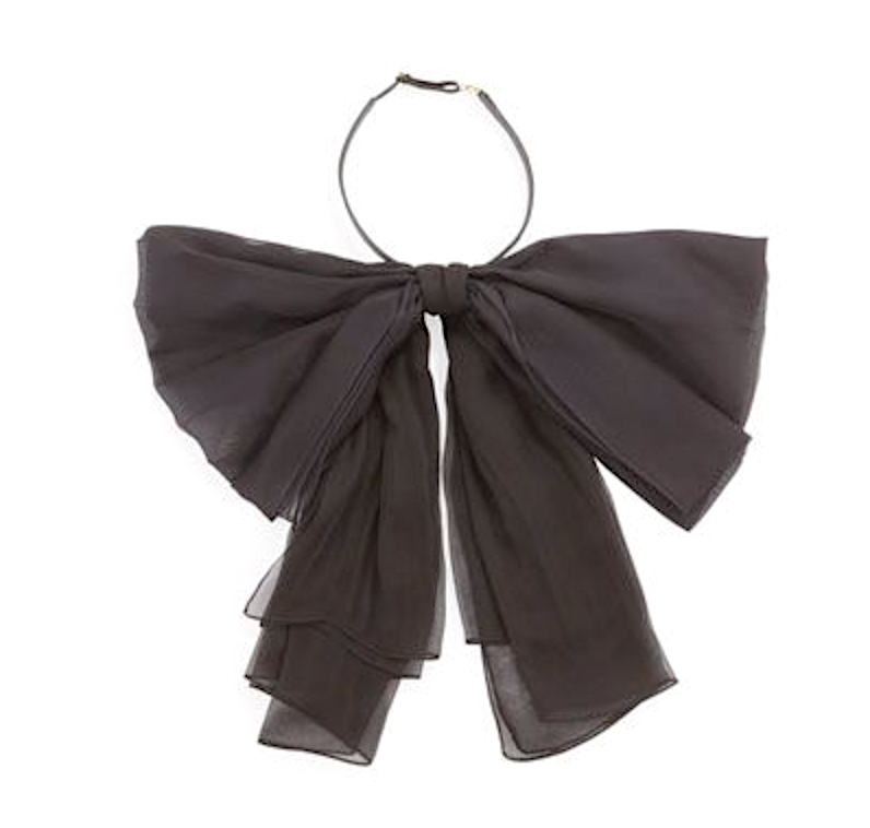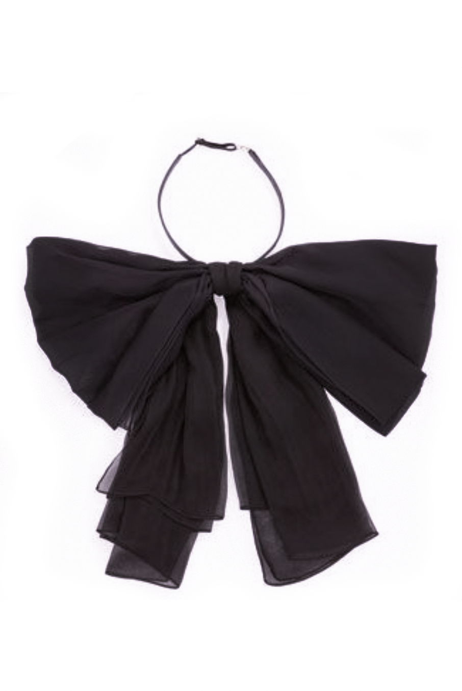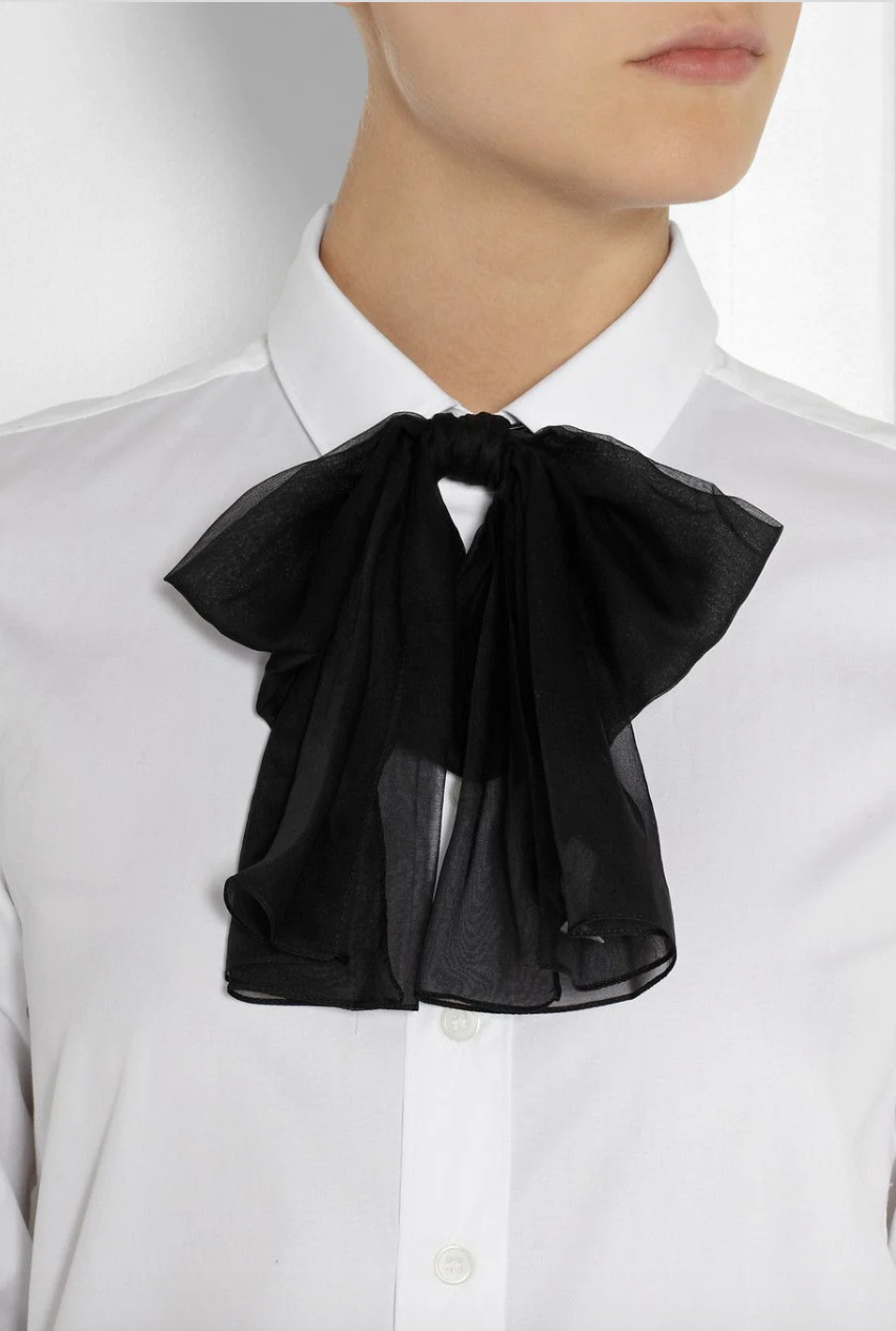 Saint Laurent Black Chiffon Silk Bow Leather Neck Tie