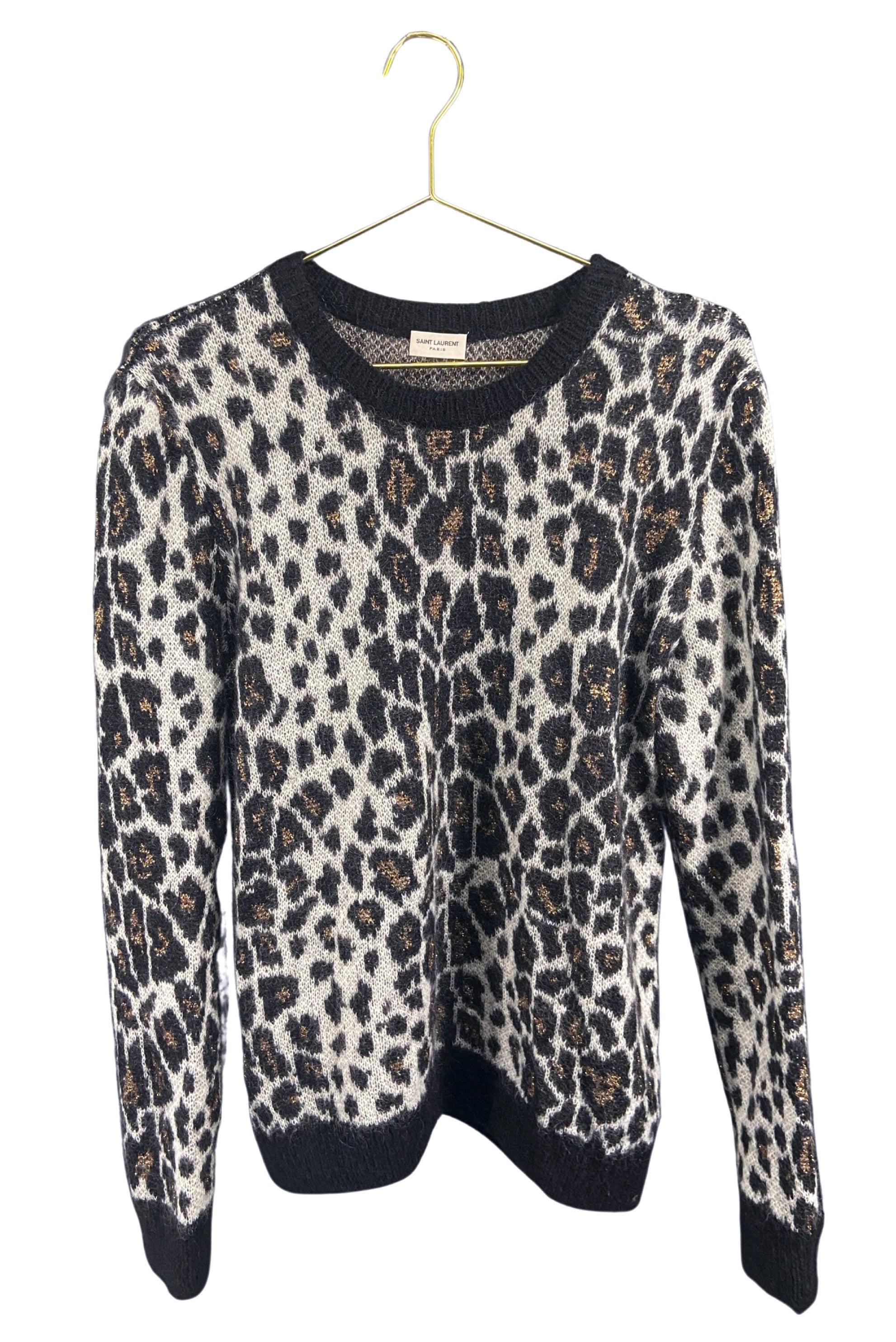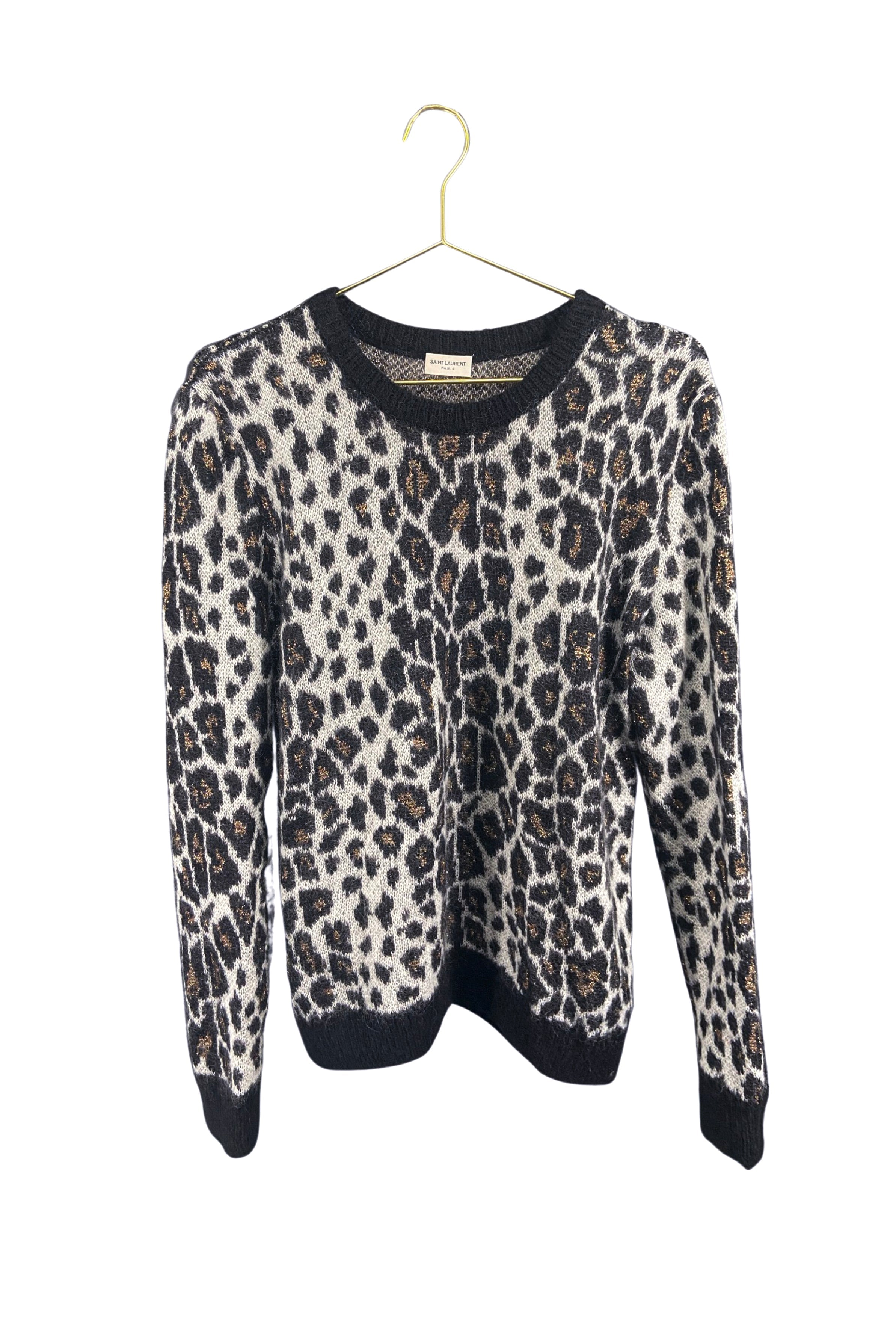 Saint Laurent Paris Black and Grey Leopard Print Sweater FW2015
