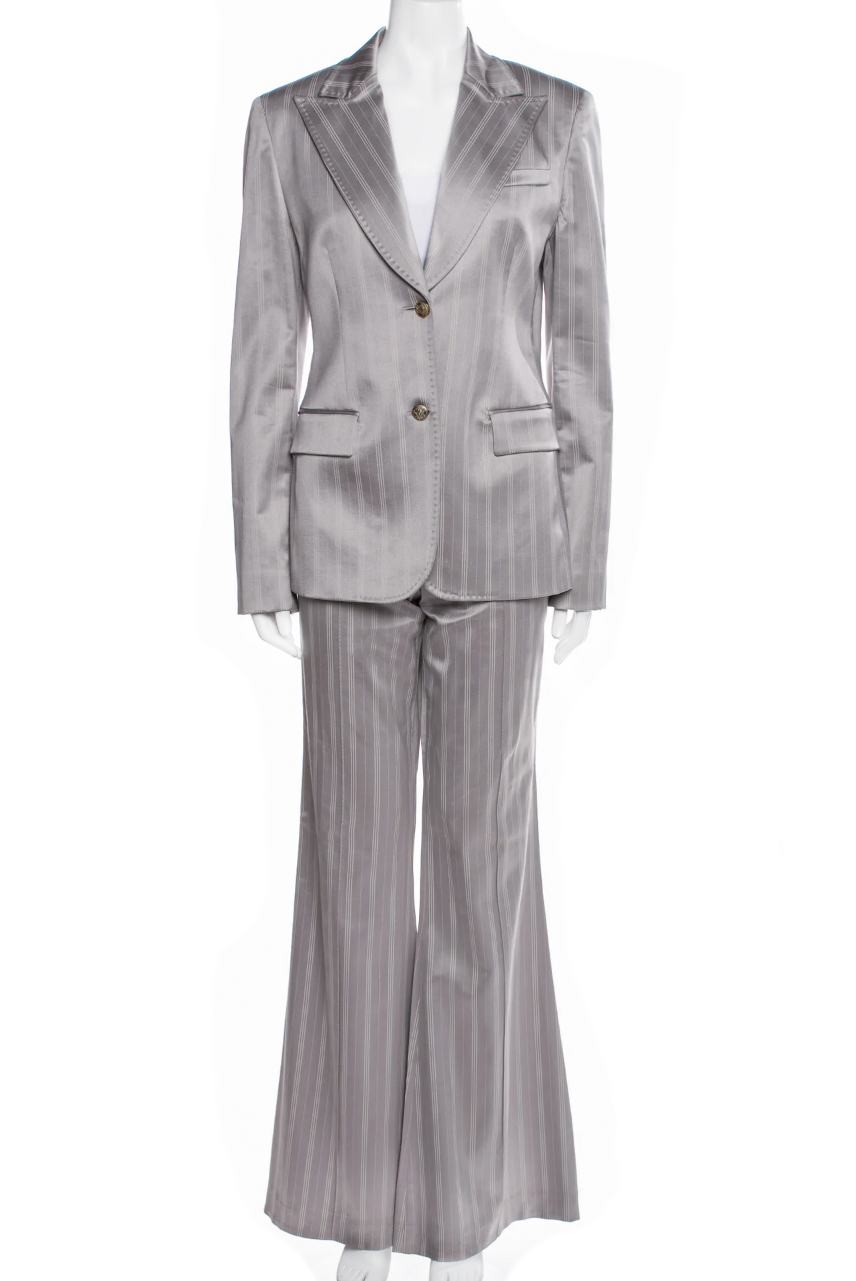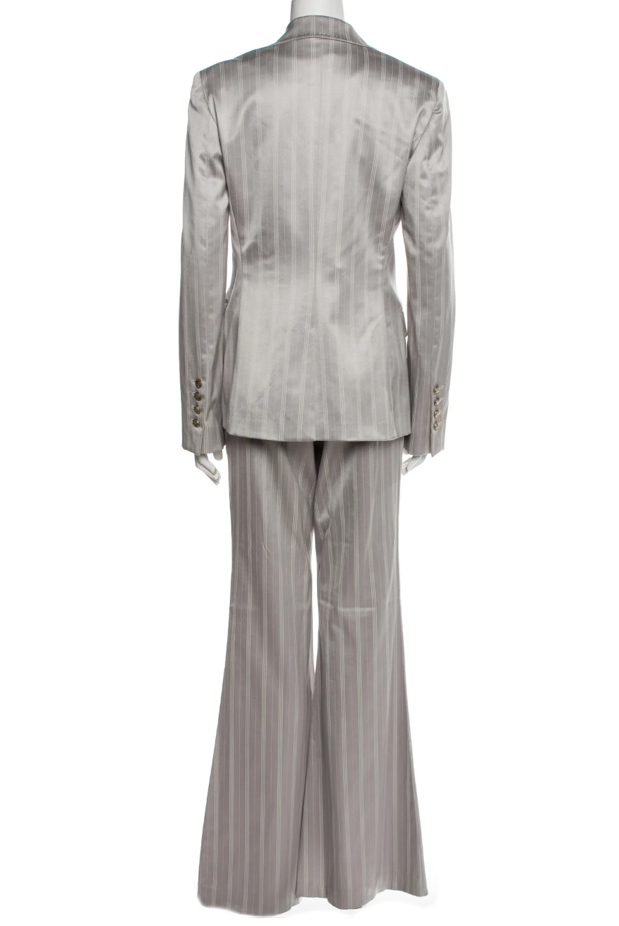 Versace Gray Pin Stripe Satin Flair Pants David Bowie Suit