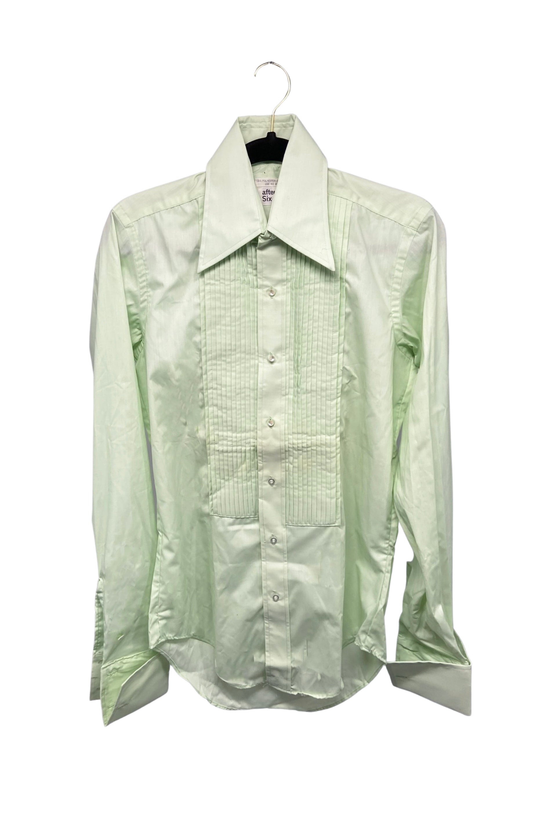 Vintage After Six Mint Green Pleat Front Tuxedo Button-Down Dress Shirt