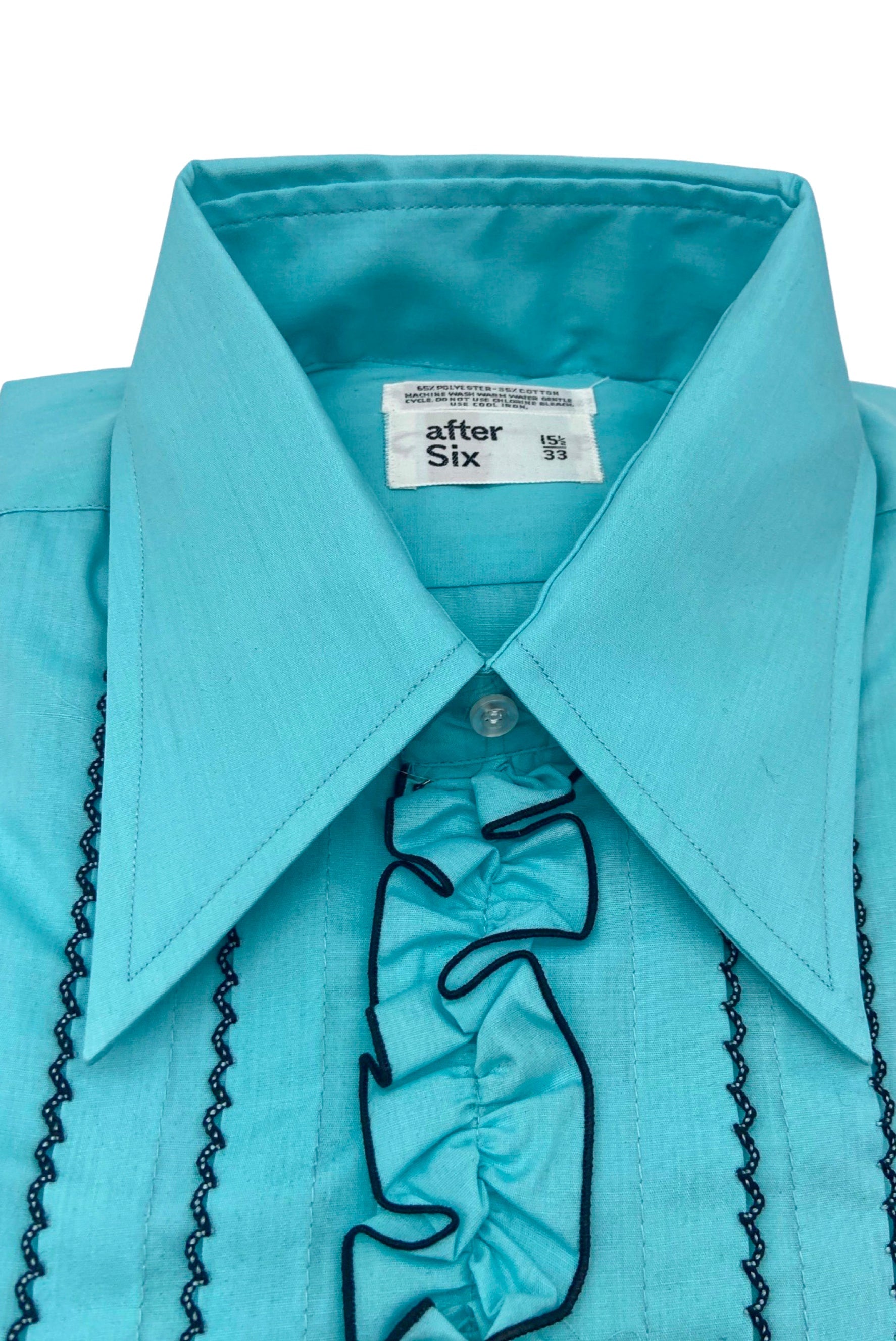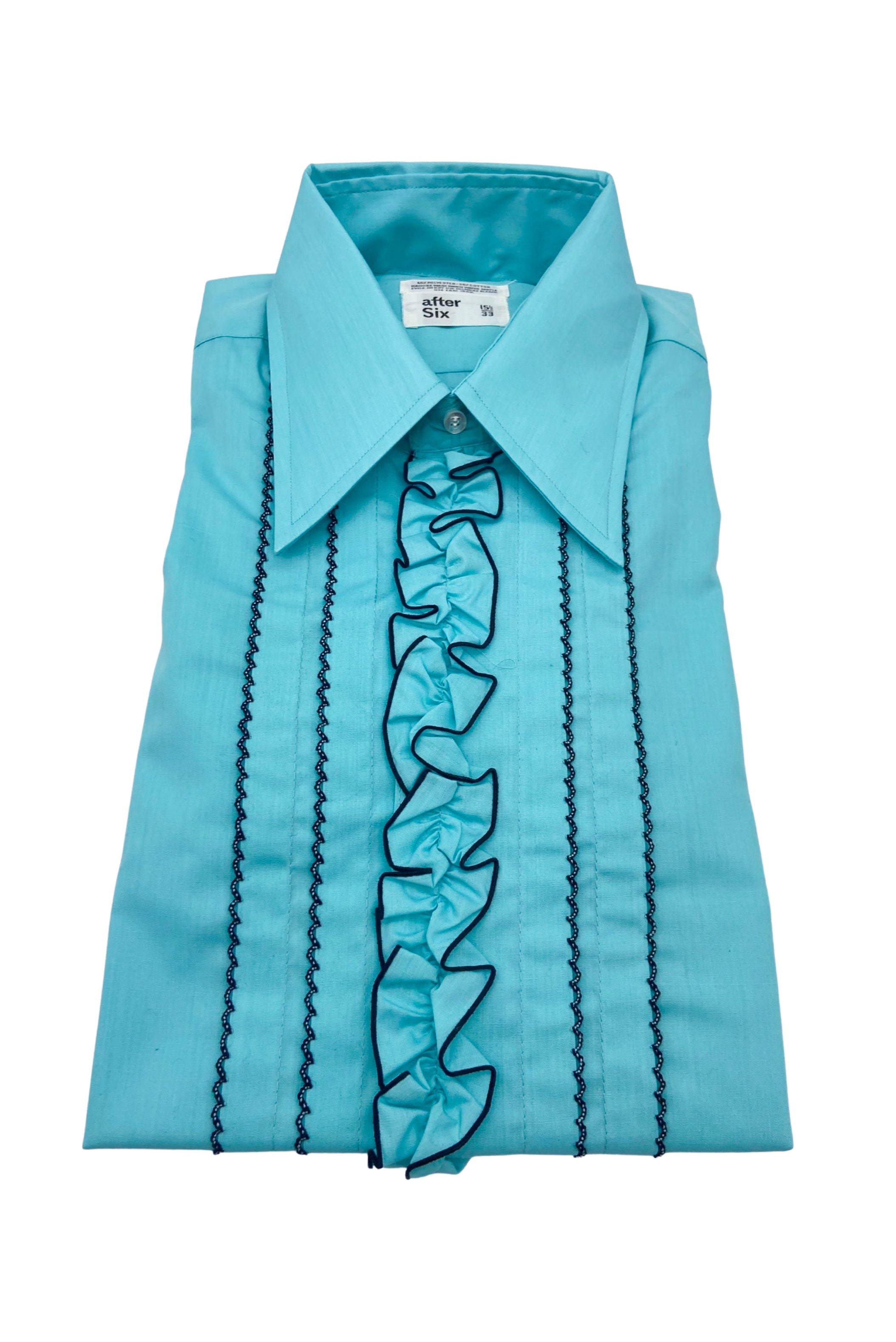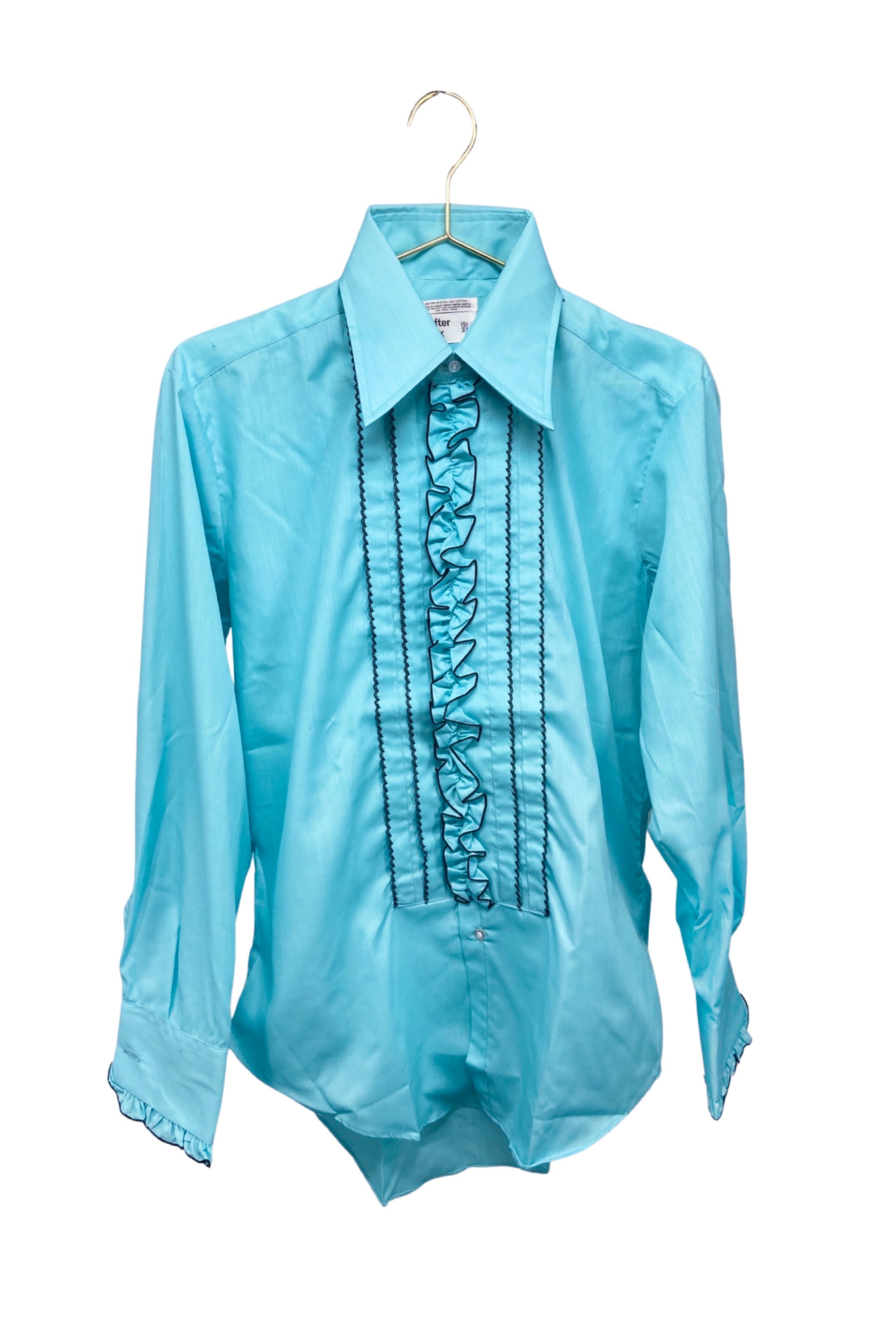 Vintage After Six Teal Blue "Gucci" Ruffle Tuxedo Button-Down Dress Shirt