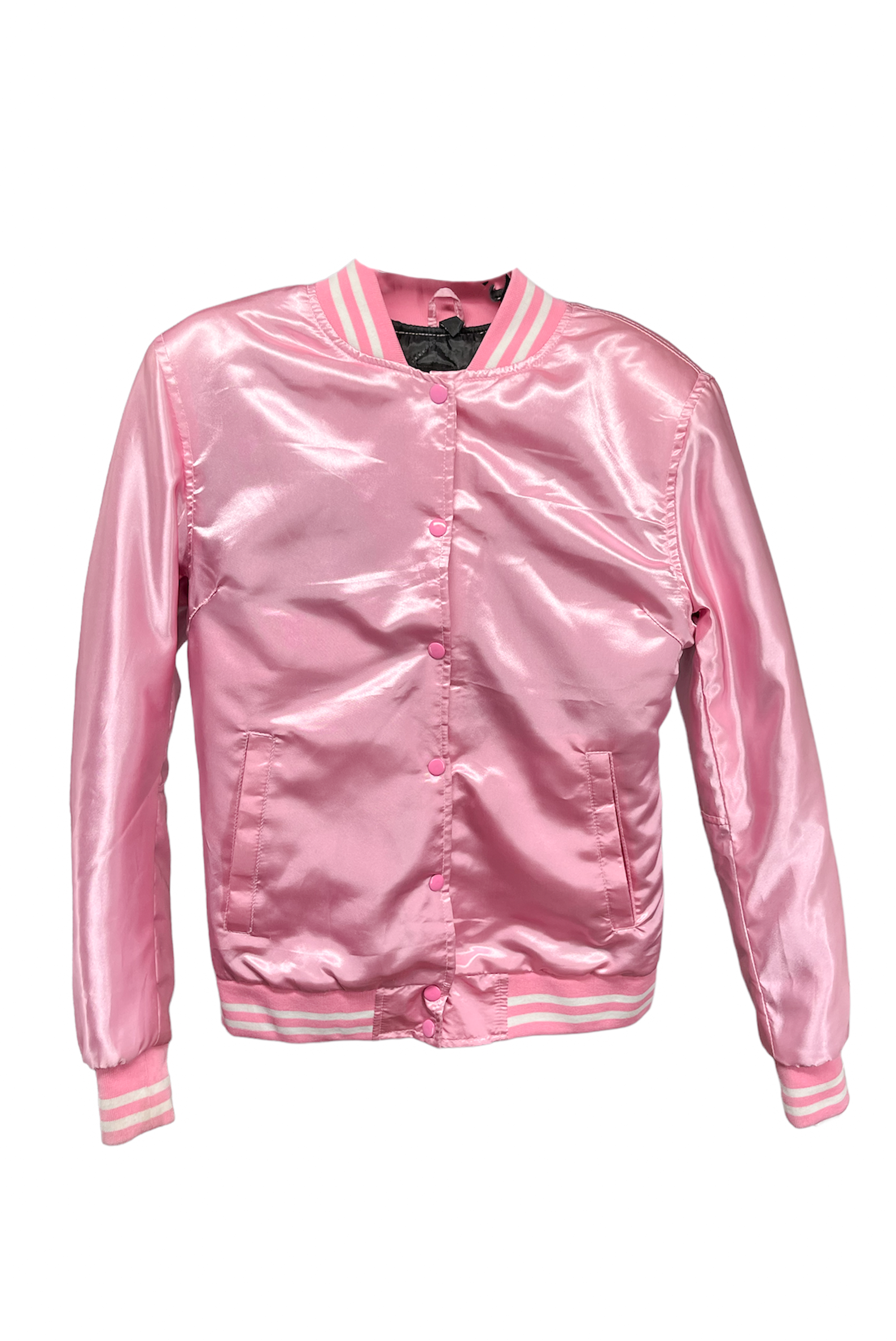 Vintage Baby Pink Satin Baseball Bomber Jacket