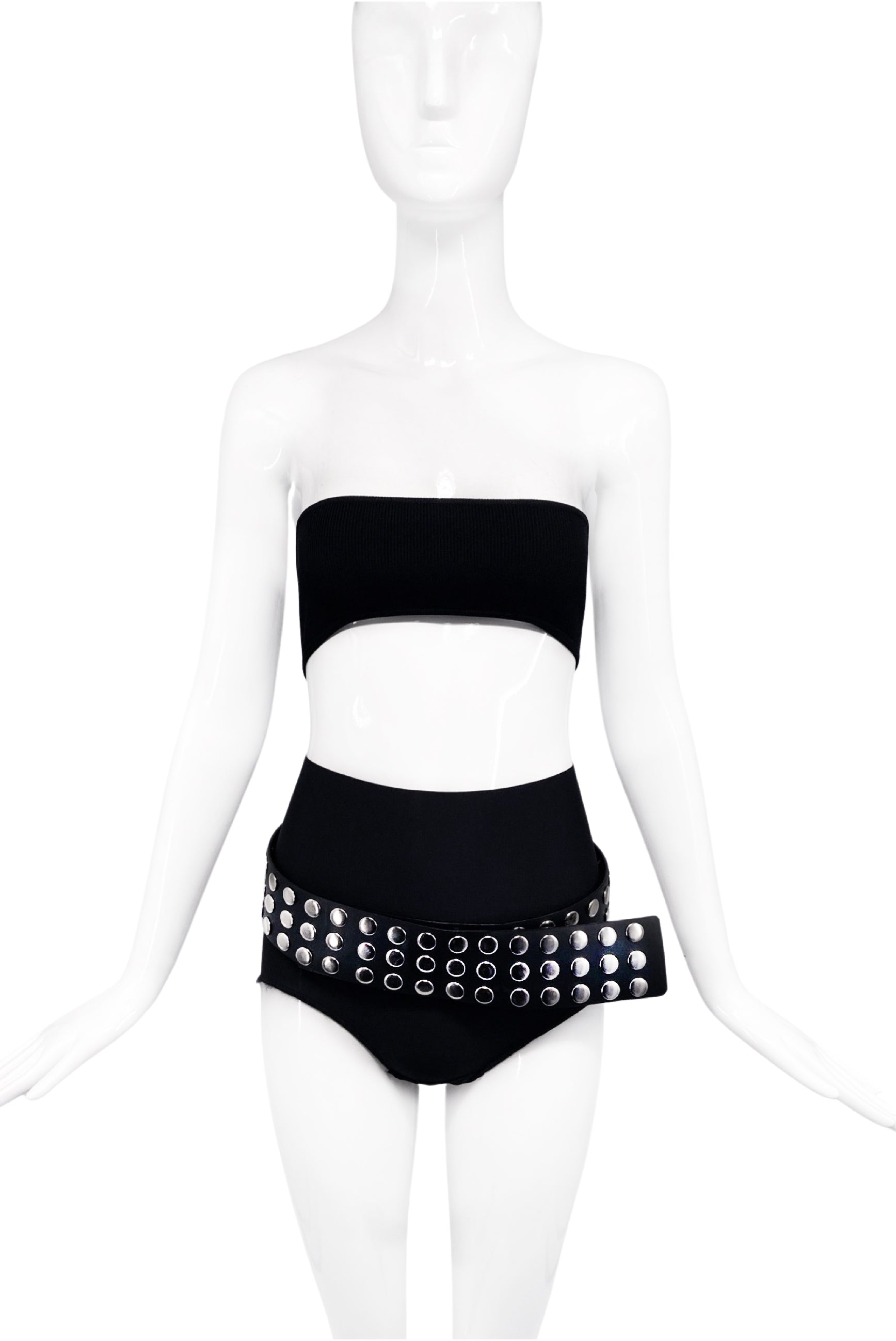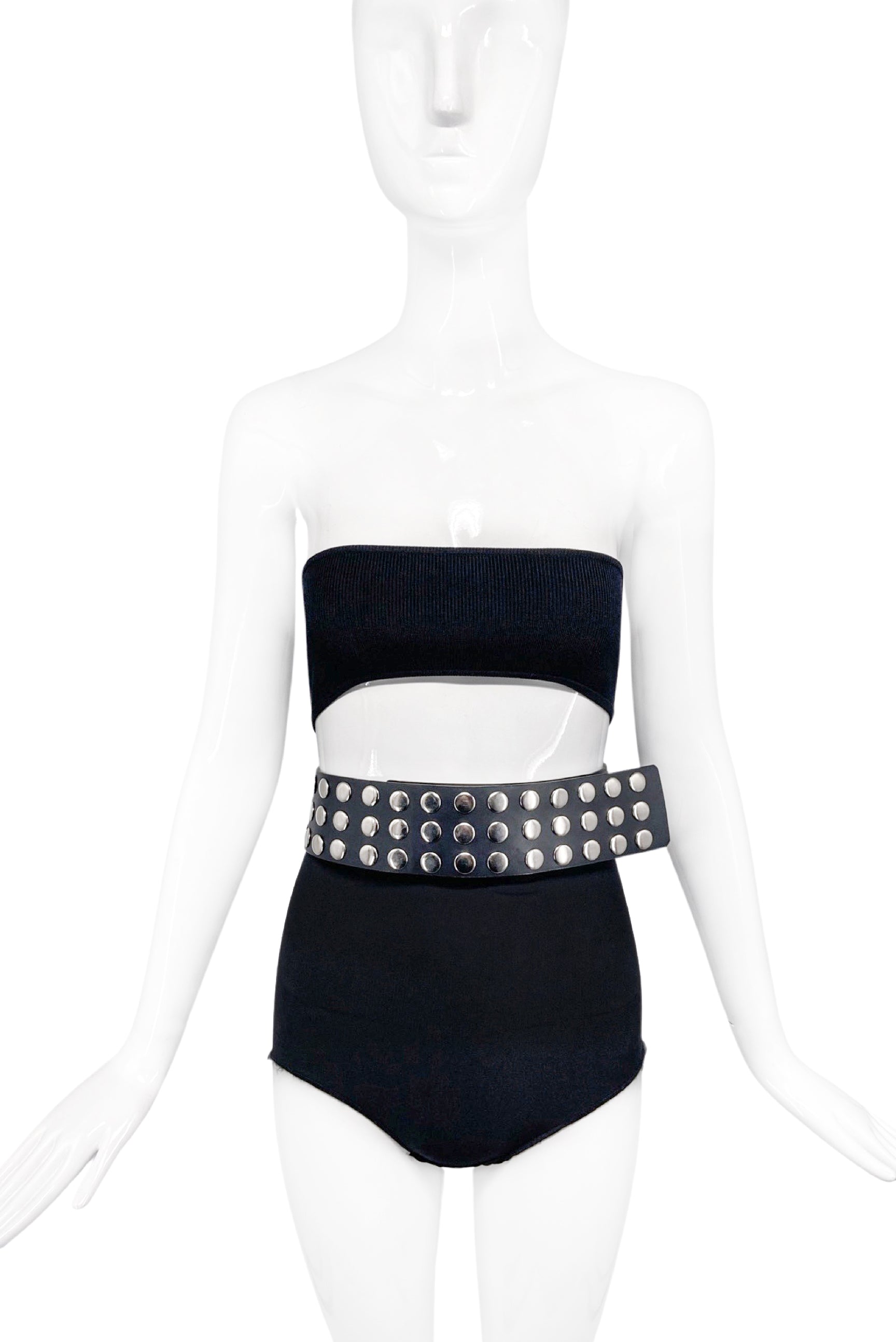 Vintage Black Leather Silver Grommet Snaps Adjustable Belt
