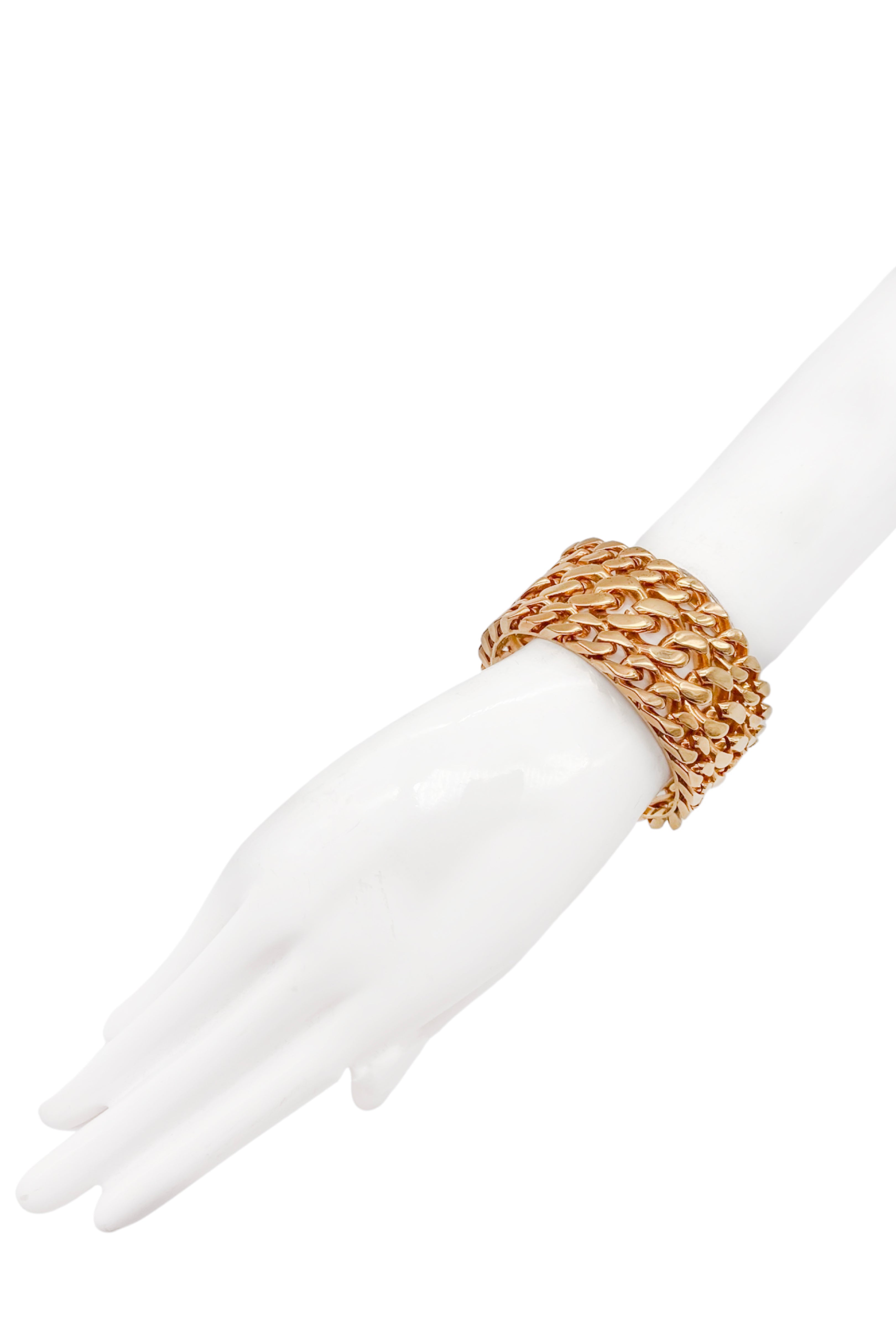 Vintage Gold Triple Wide Curb Chain Bracelet Cuff