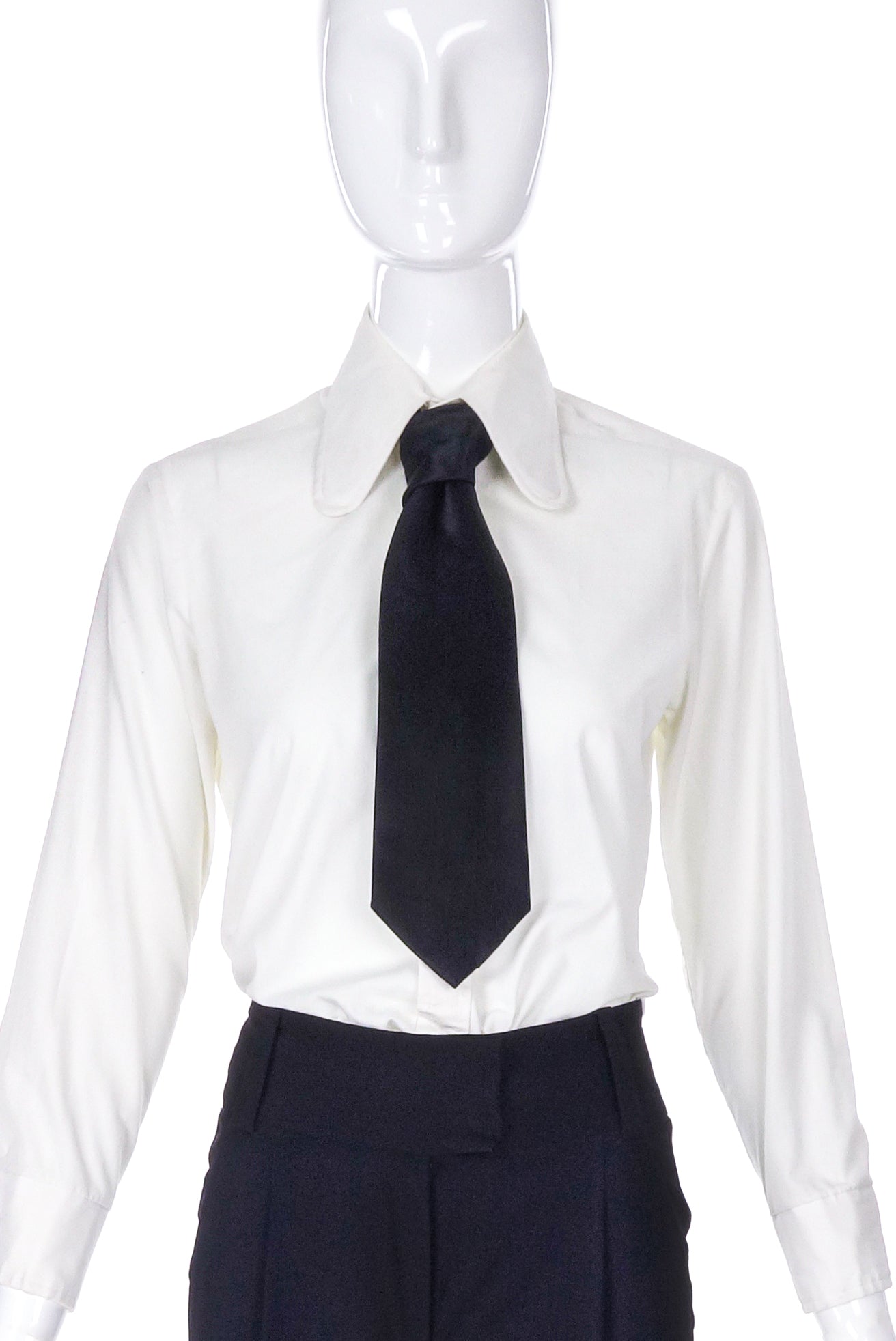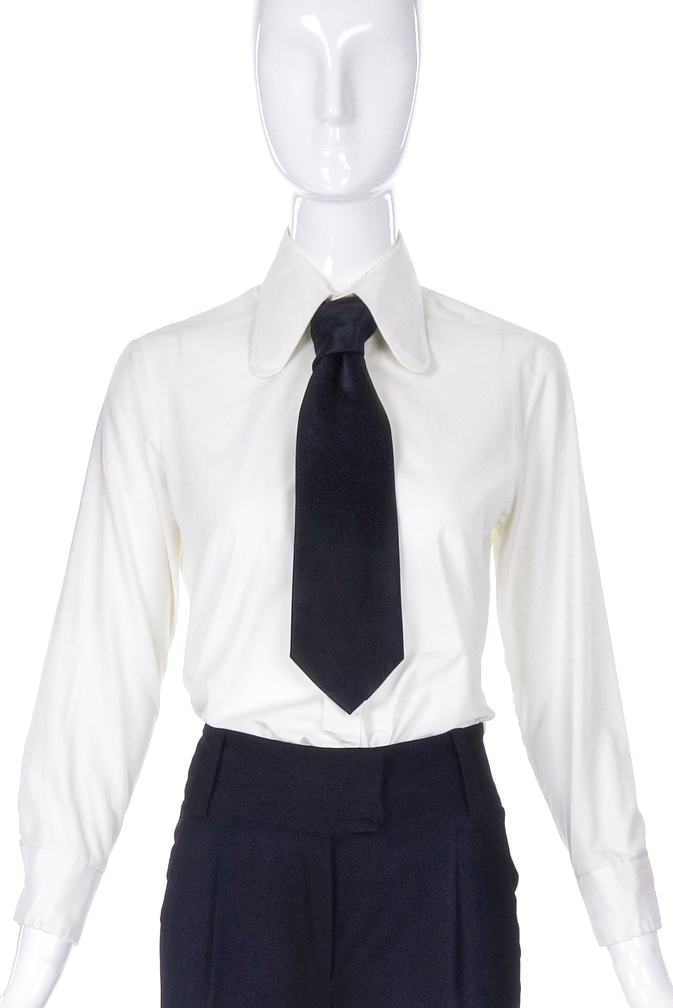 Vintage Trak White 1970's Penny Round Shirt and Wide Black Satin Kipper Tie