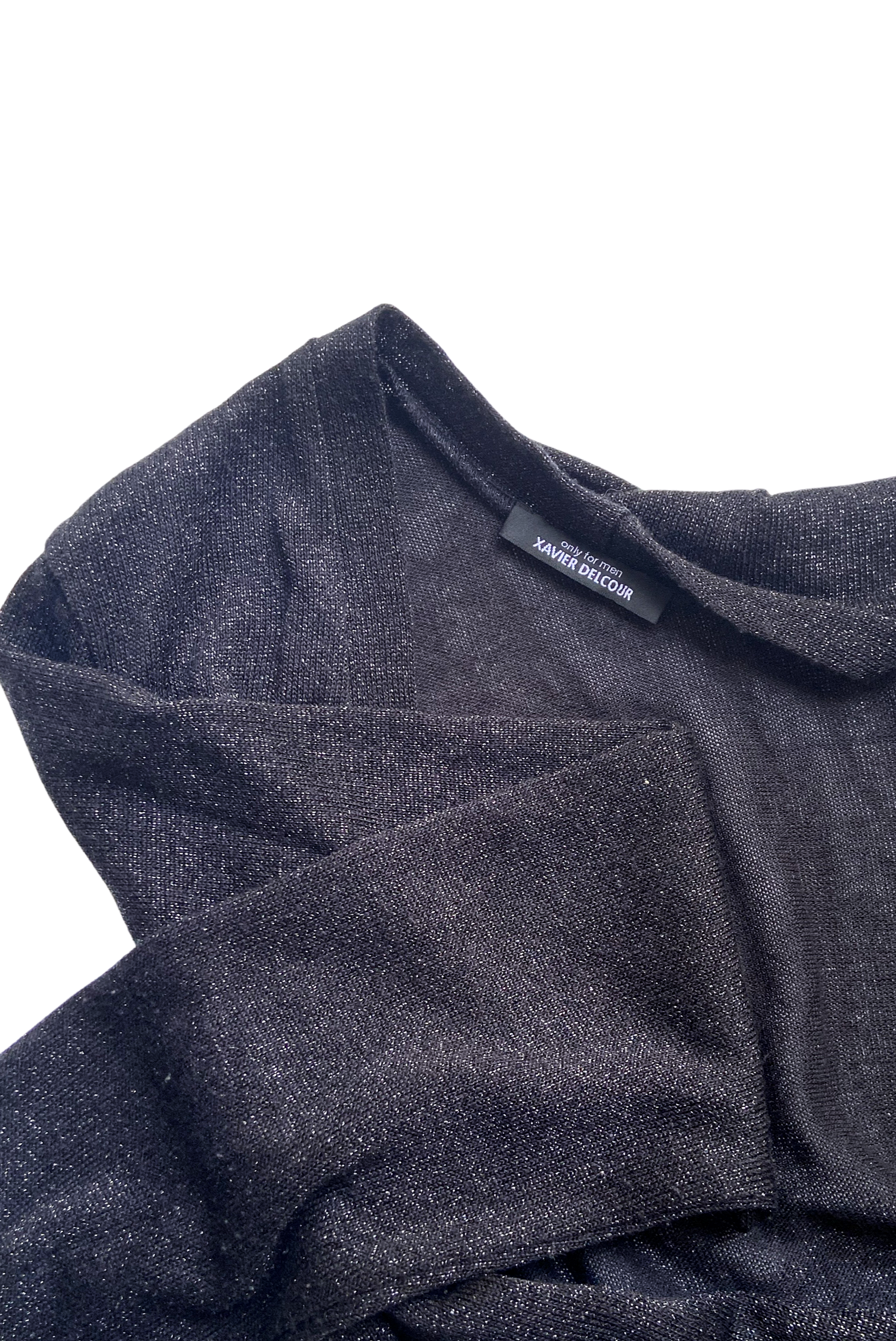Xavier Delcour Black Glitter Deep Plunging V Neck Sweater Top #