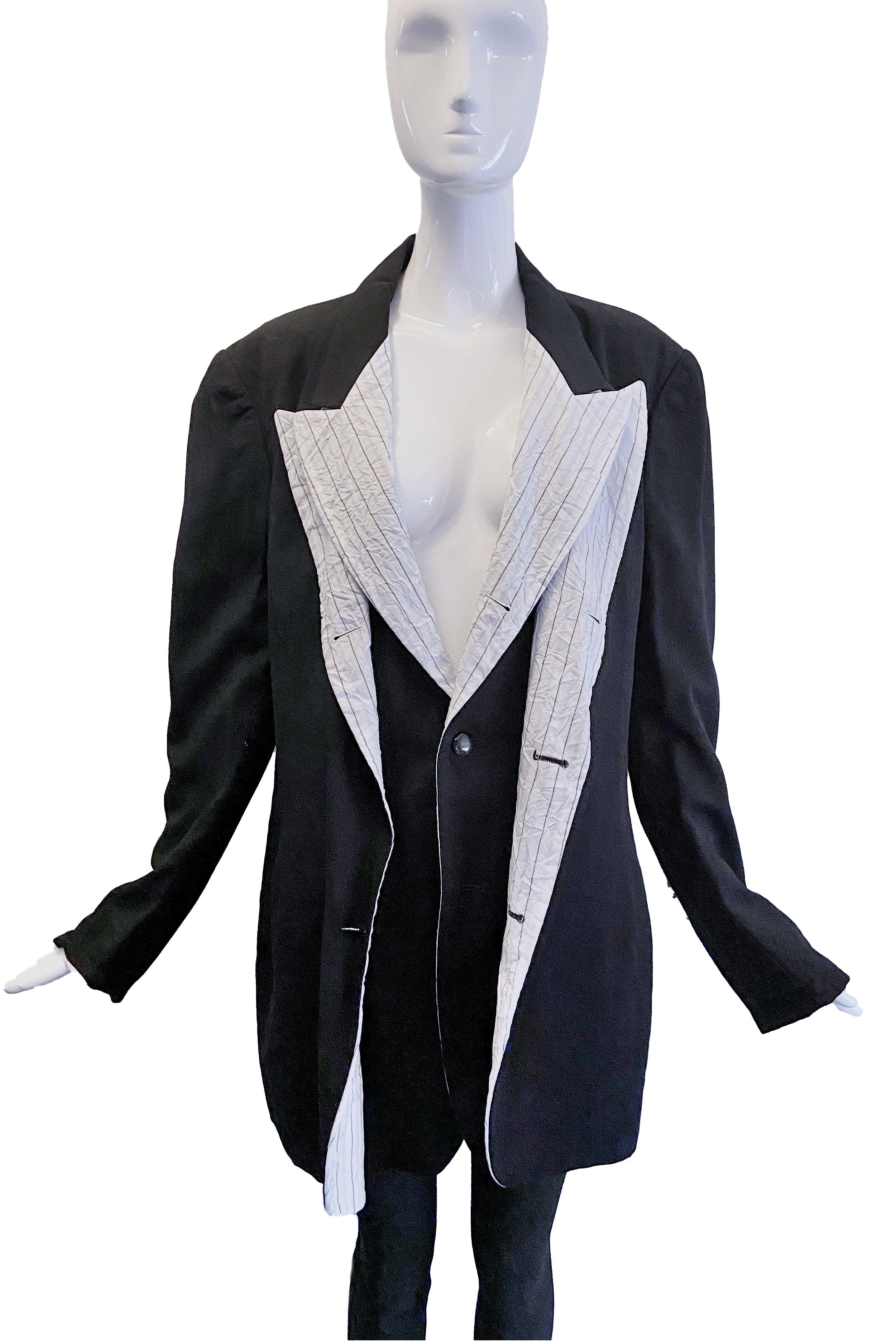 Yohji Yamamoto Black Double Layer Blazer with Pinstripe Lapel
