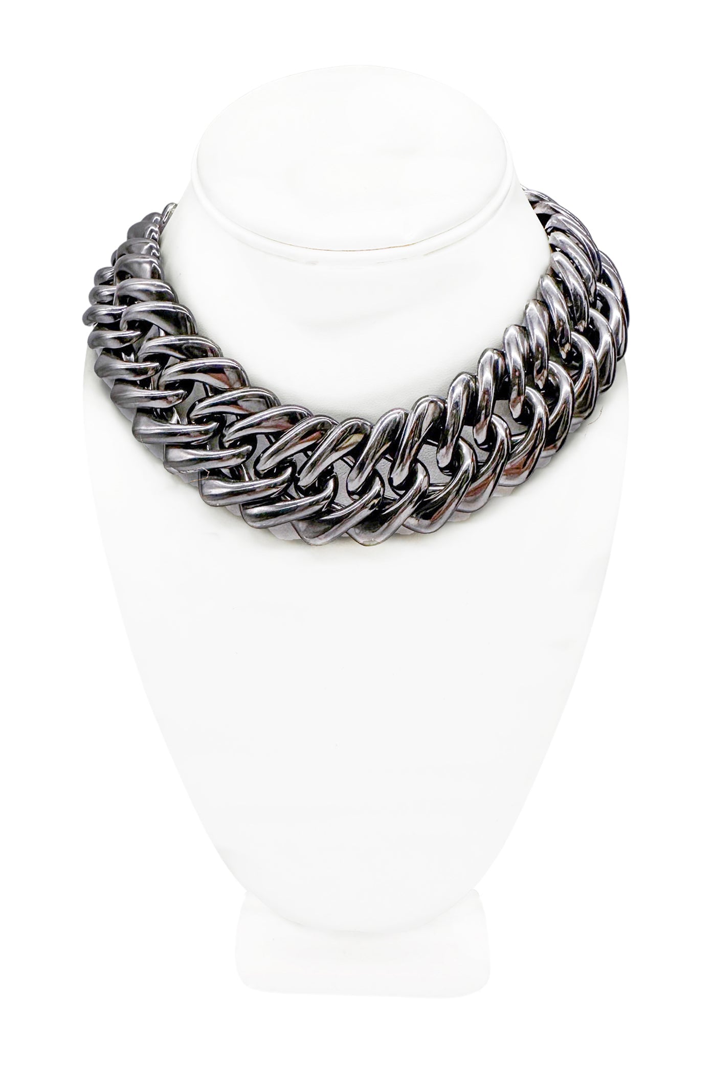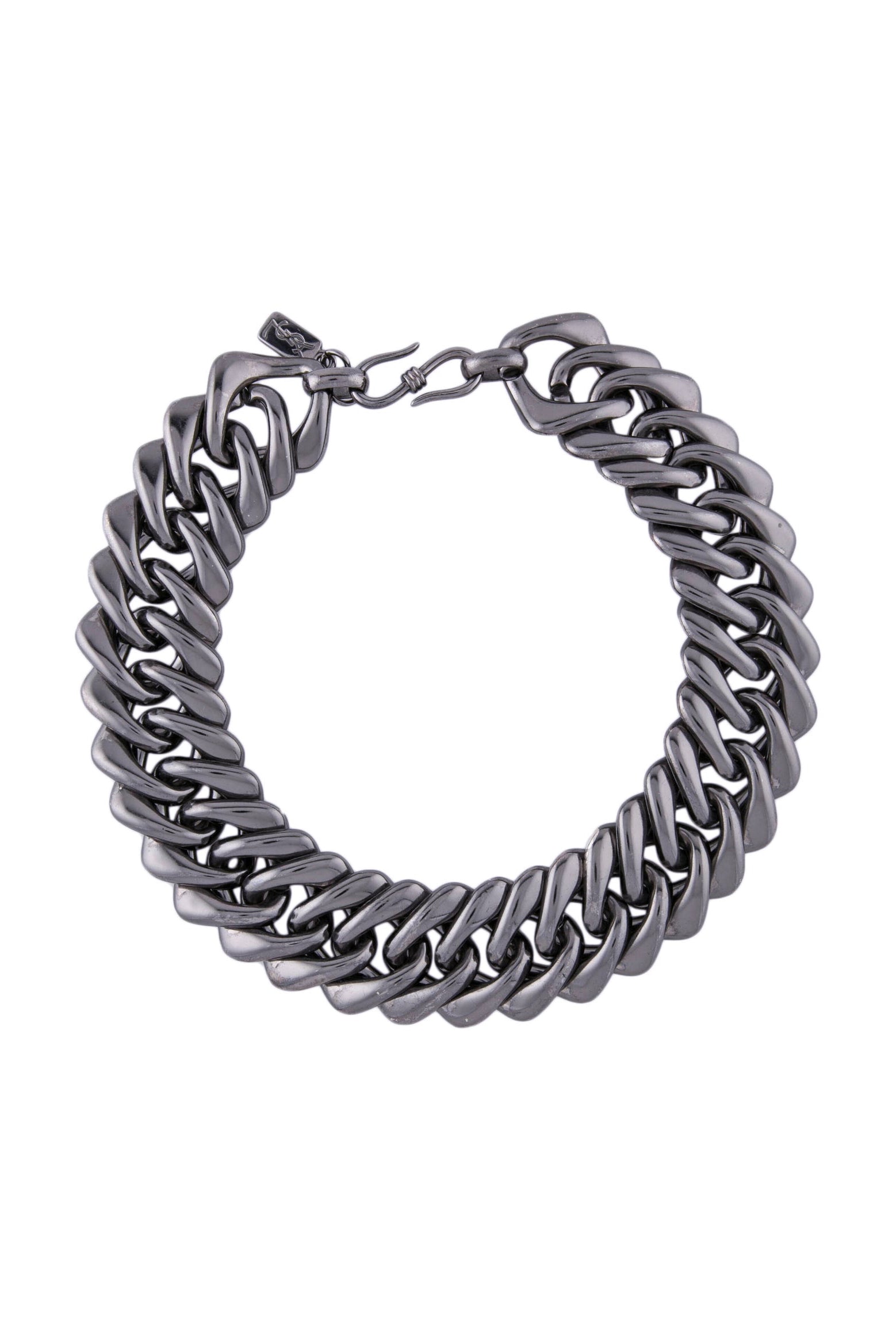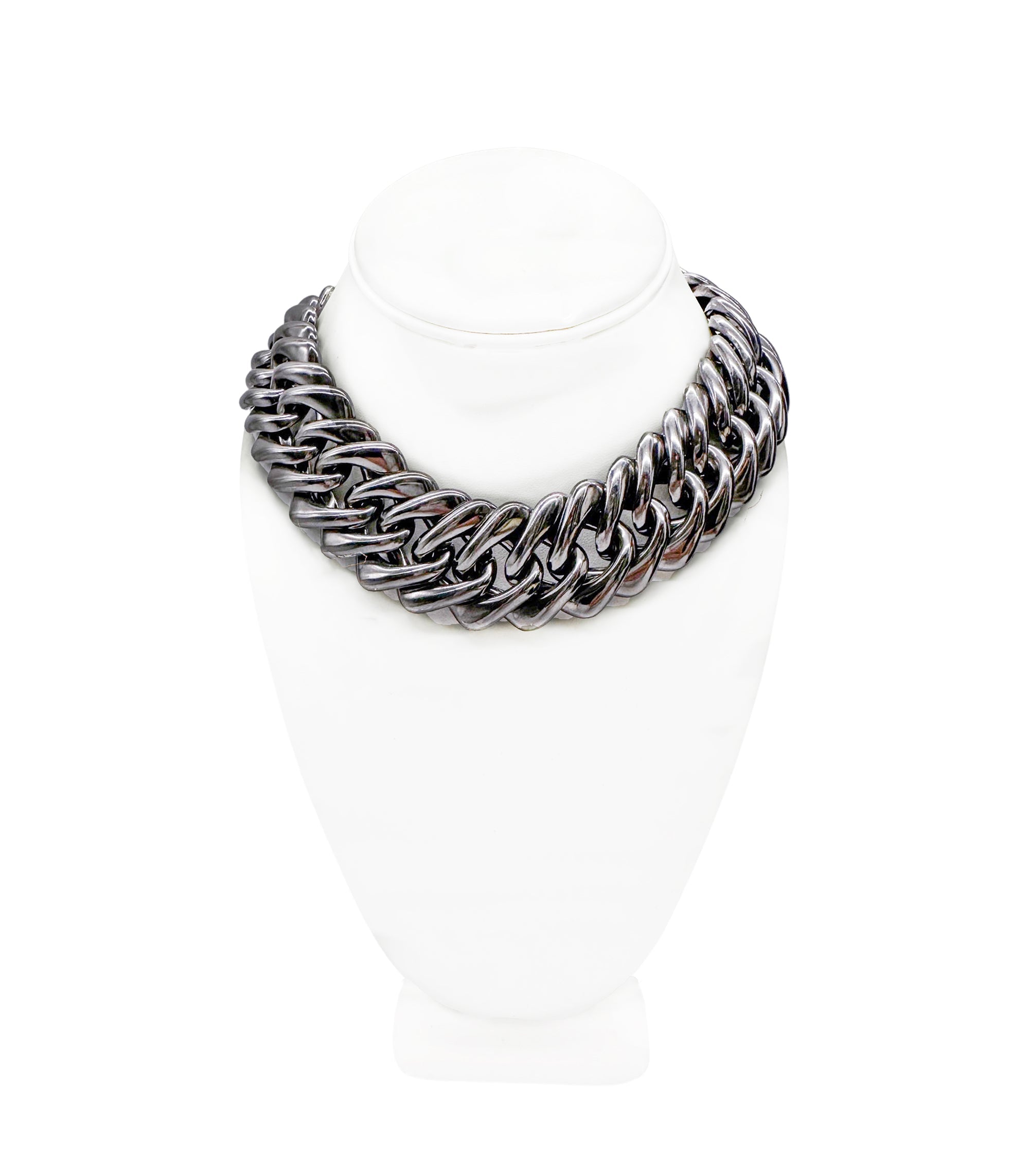 Yves Saint Laurent Gunmetal Silver Chain Link Necklace
