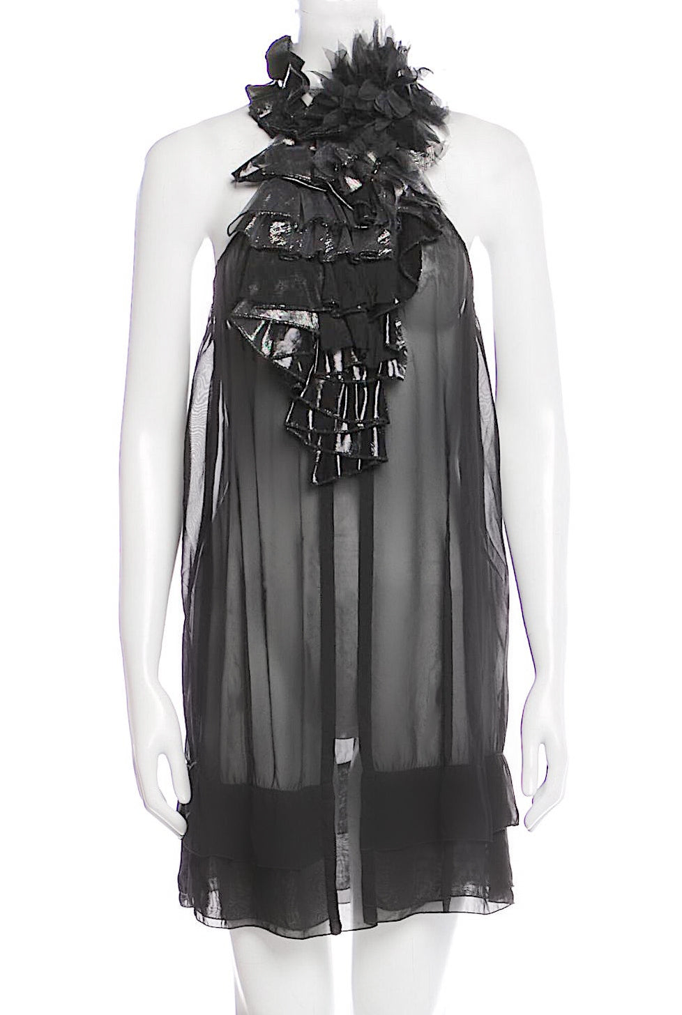 Marc Jacobs Black Sheer Neck Ruffle Flower Mini Dress
