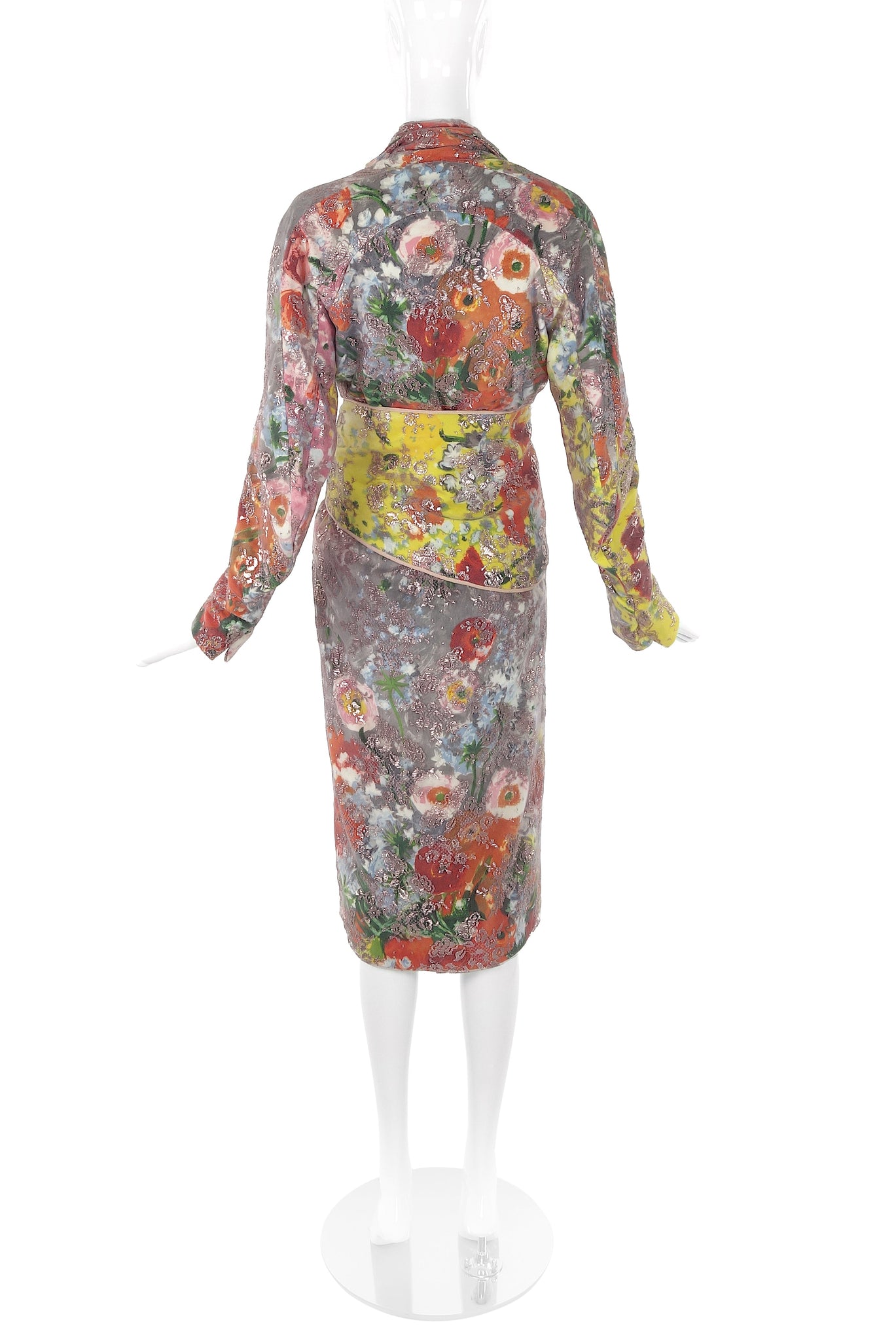 As Four Multi Color Pink Yellow Floral Lace Dress Coat with Kimono Belt