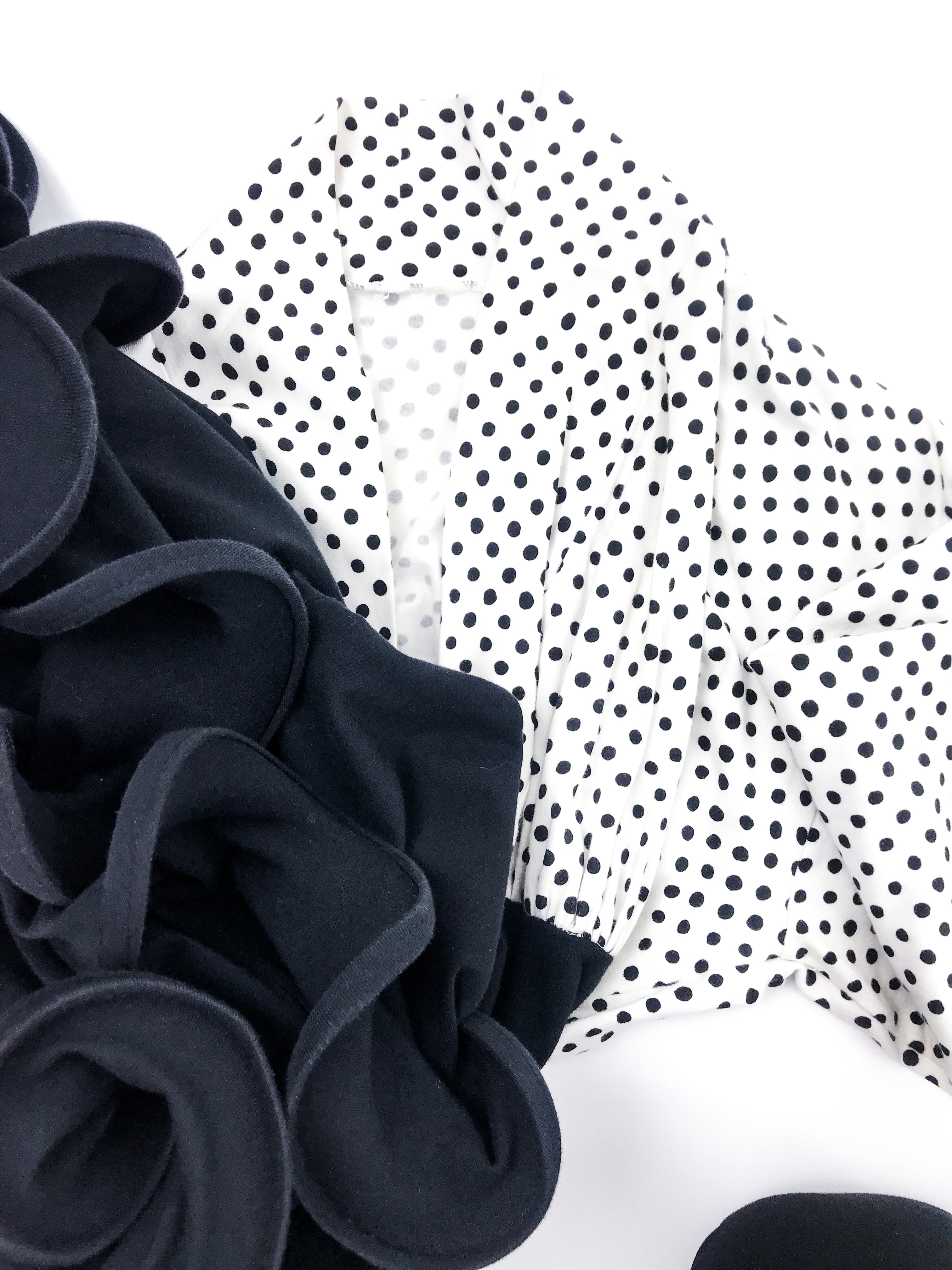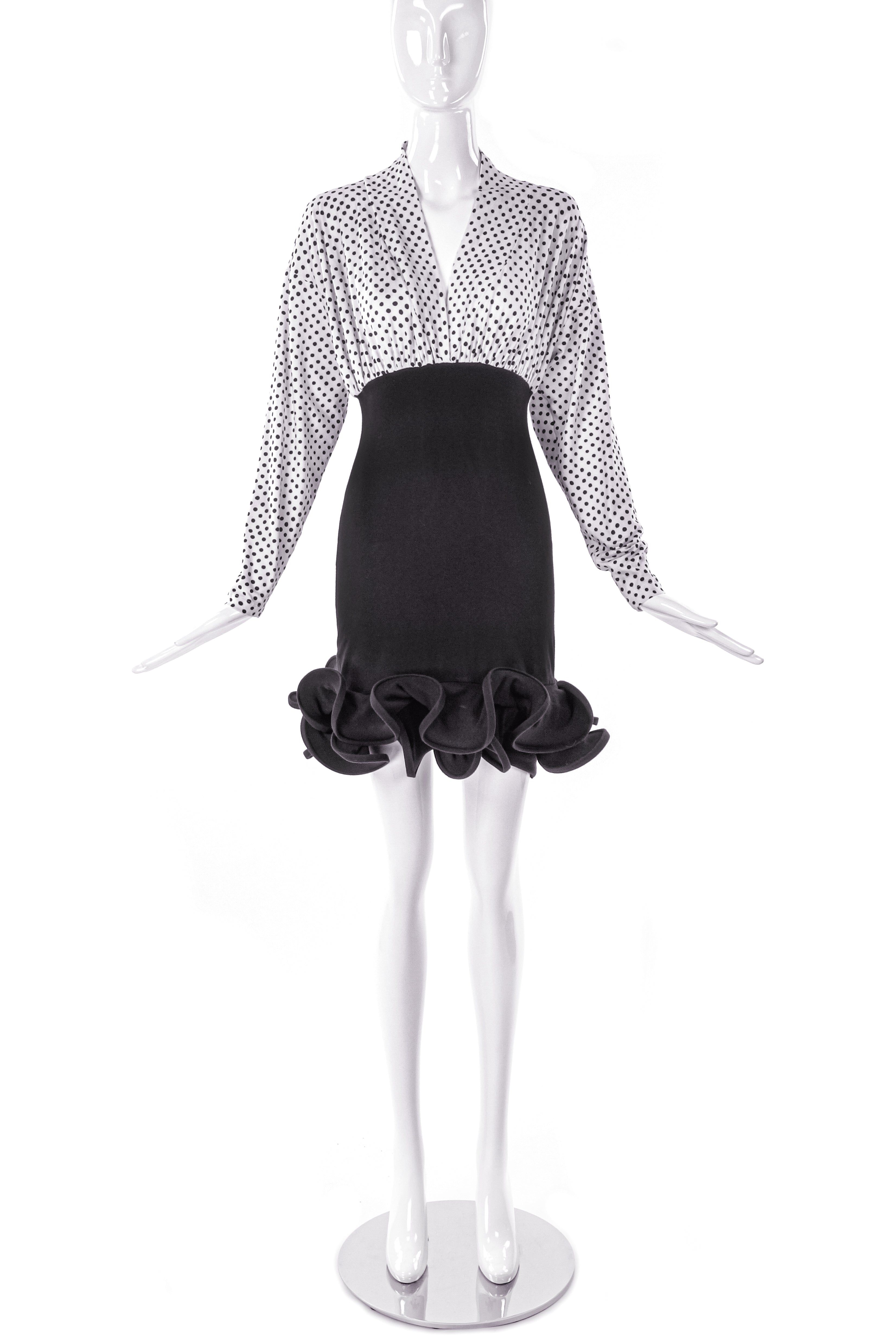 Vintage Black and White Polka Dot Swirl Hem Party Dress