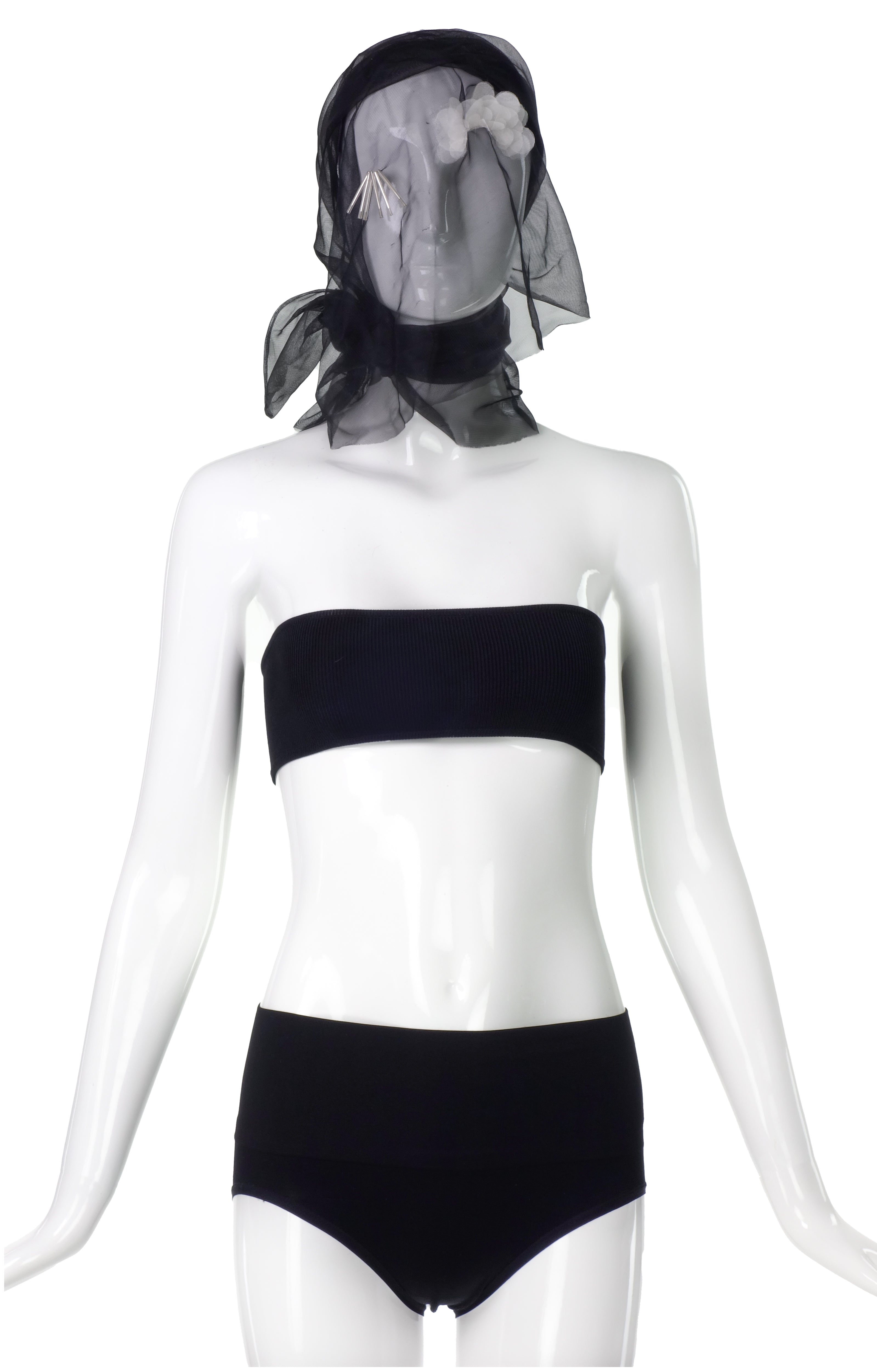 A black chiffon "Madeline Ashton" veil with jet black tear drop bead details placed under where the eyes would be.