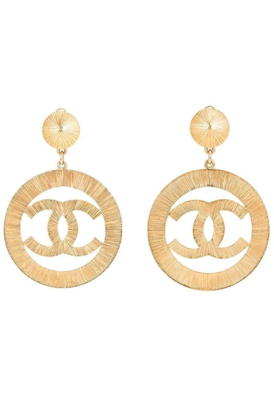 Chanel Gold Sunburst Iconic "CC" Logo Hoop Earrings 1990's Supermodel Era