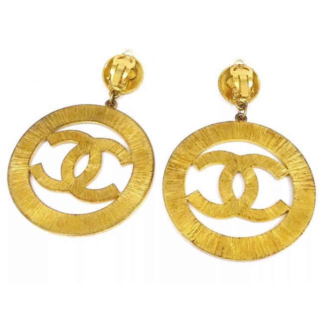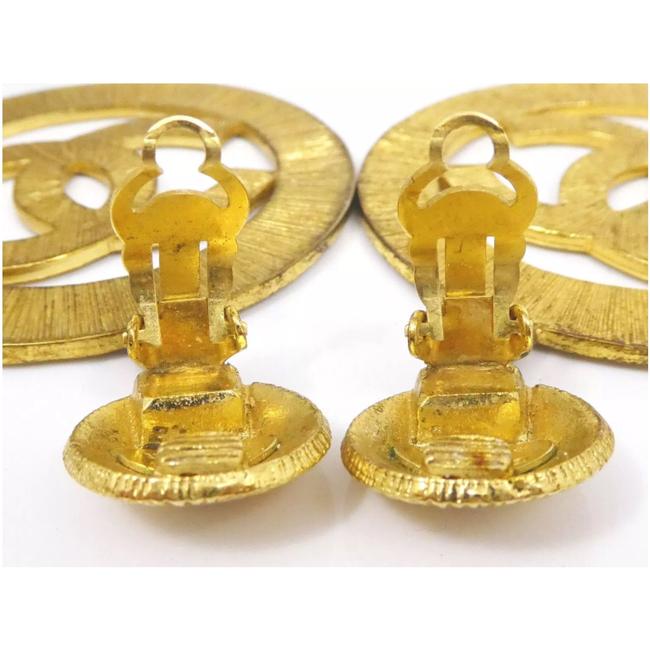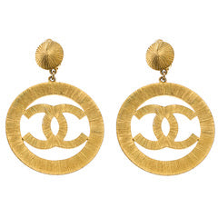 Chanel massive vintage gold tone sunburst textured CC-logo hoop clip-on earrings.