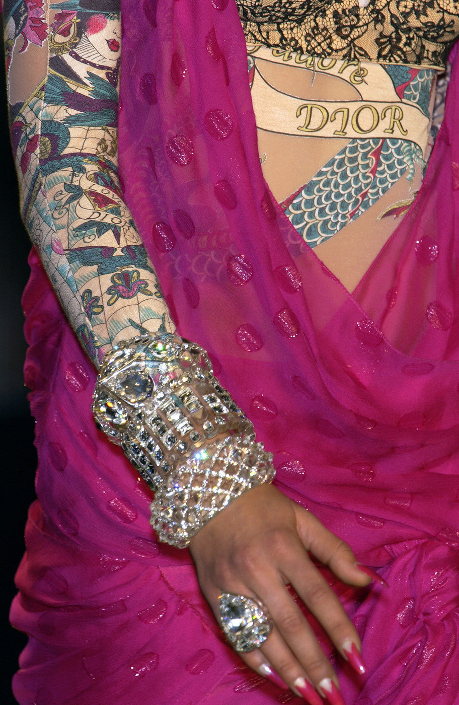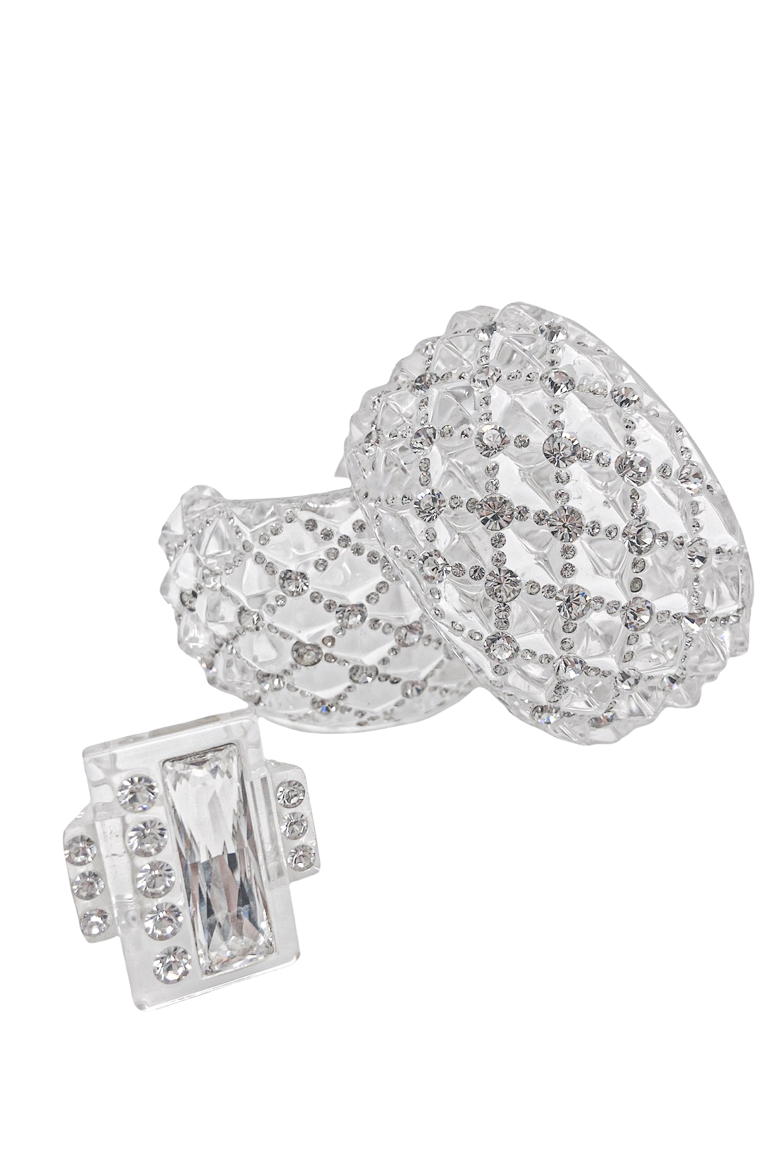 Also available for rental are the Christian Dior Clear Lucite and Baguette Cut Crystal "Gloria" Choker the and Christian Dior Lucite and Large Crystal Broach and the matching Crystal Lucite Ring from the SS2004 collection