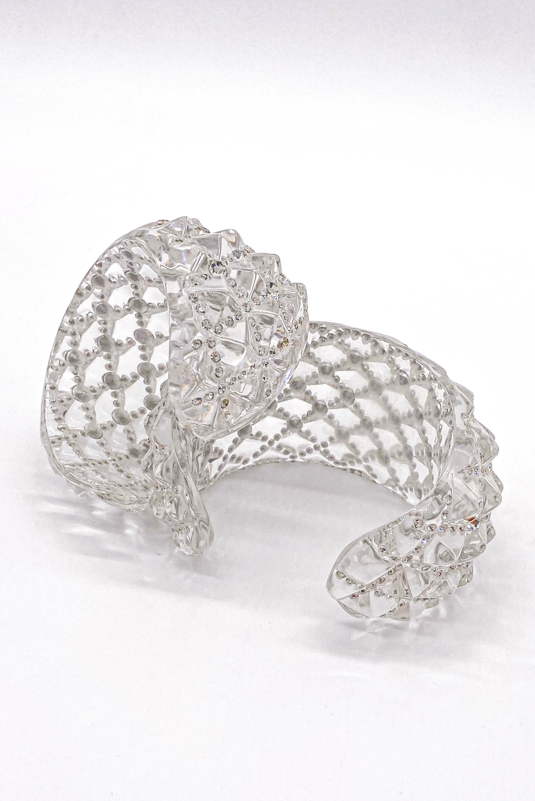 A Christian Dior set of quilted textured lucite bracelets with sparkling, petite crystal rhinestones interspersed throughout the cuffs. From the Christian Dior by John Galliano Spring / Summer "Marlene Dietrich" 2004 runway collection. Please see runway image included for reference.
