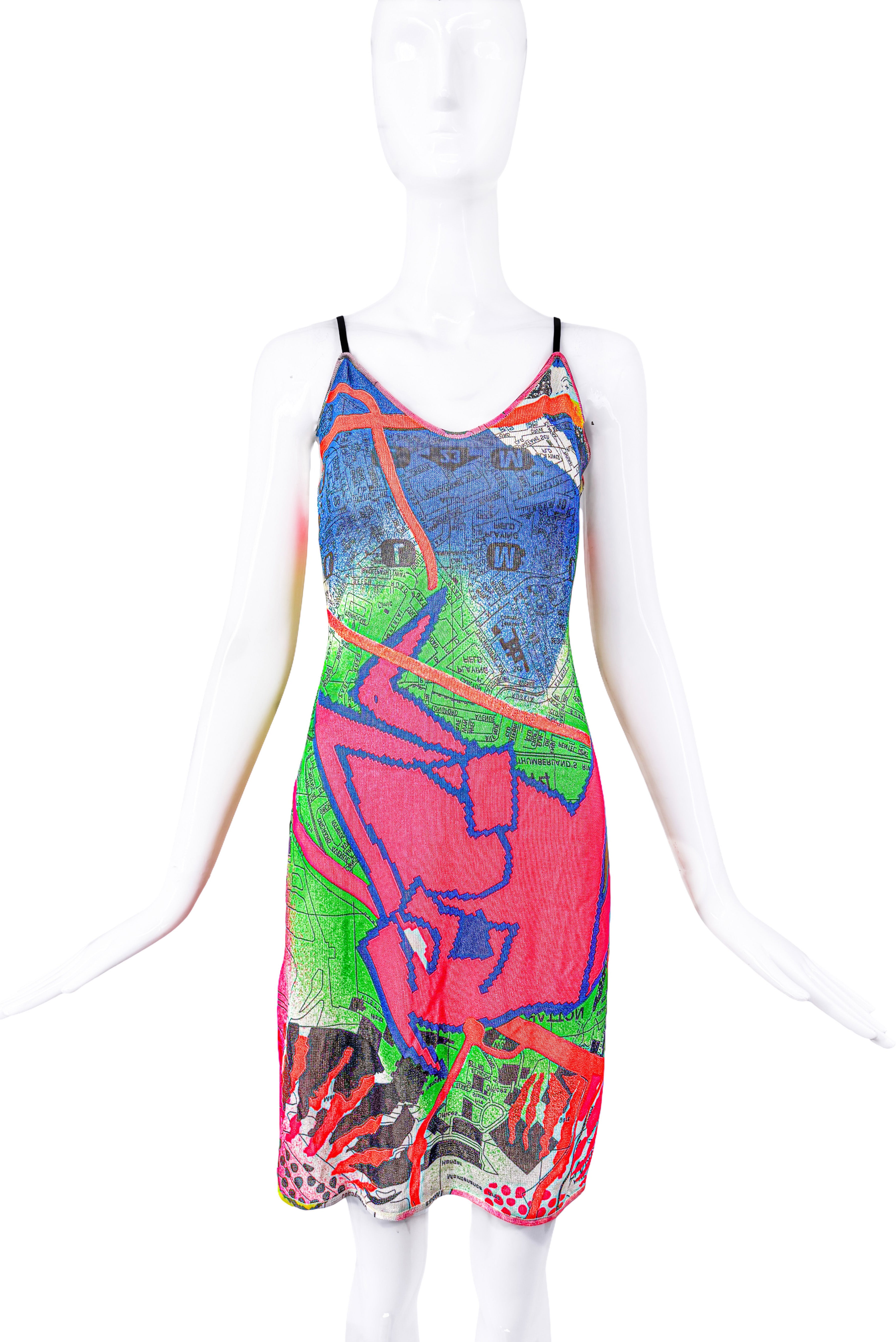Christian Dior by John Galliano 2001 London Map Print Neon Dress
