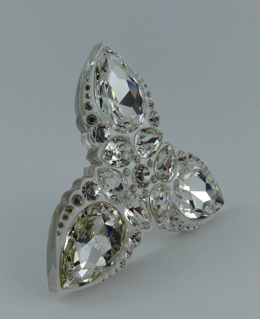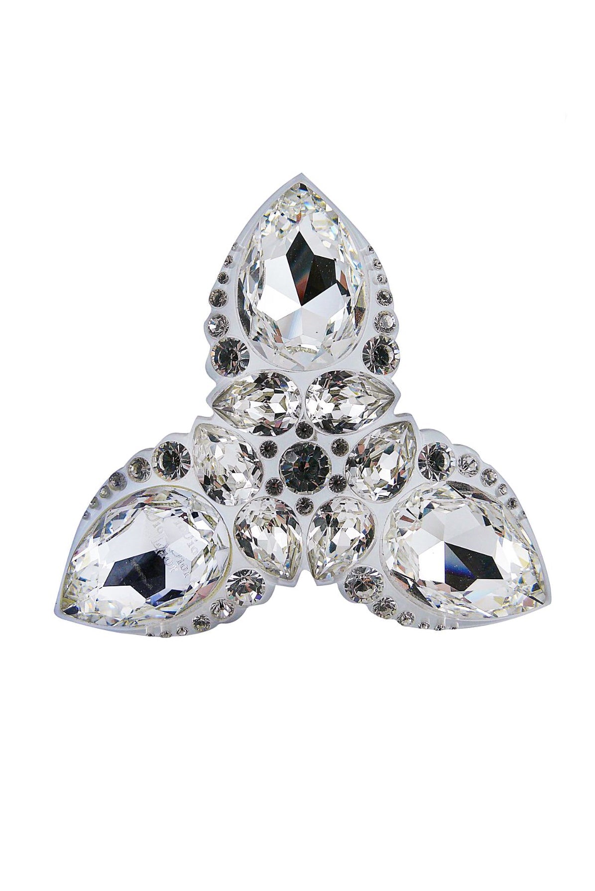 A Christian Dior lucite and crystal brooch fixed into a symmetrical pinwheel pattern on a silver backing and stamped Christian Dior within the crystals. From the Christian Dior by John Galliano Spring / Summer "Marlene Dietrich" 2004 Runway Collection.