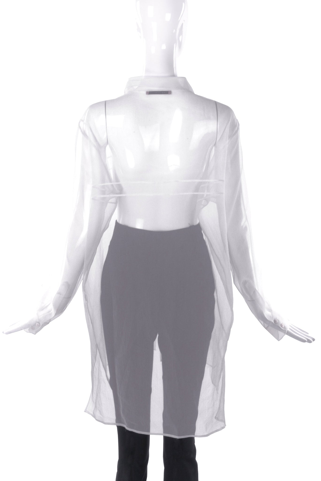 Christopher Kane White Oversized Sheer Button- Up Shirt Blouse with Bow - BOUTIQUE PURCHASE PRICE