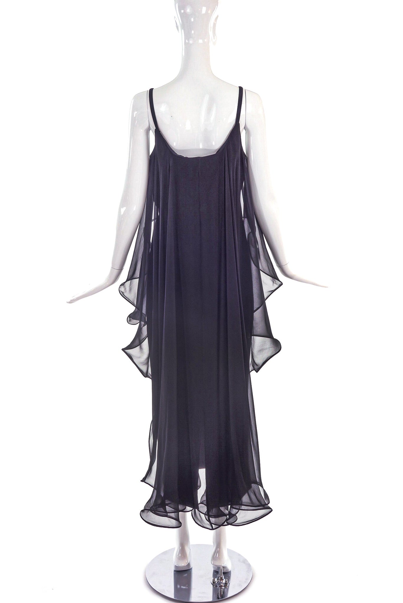 Claude Montana Black Column Gown Dress with Chiffon Cape
