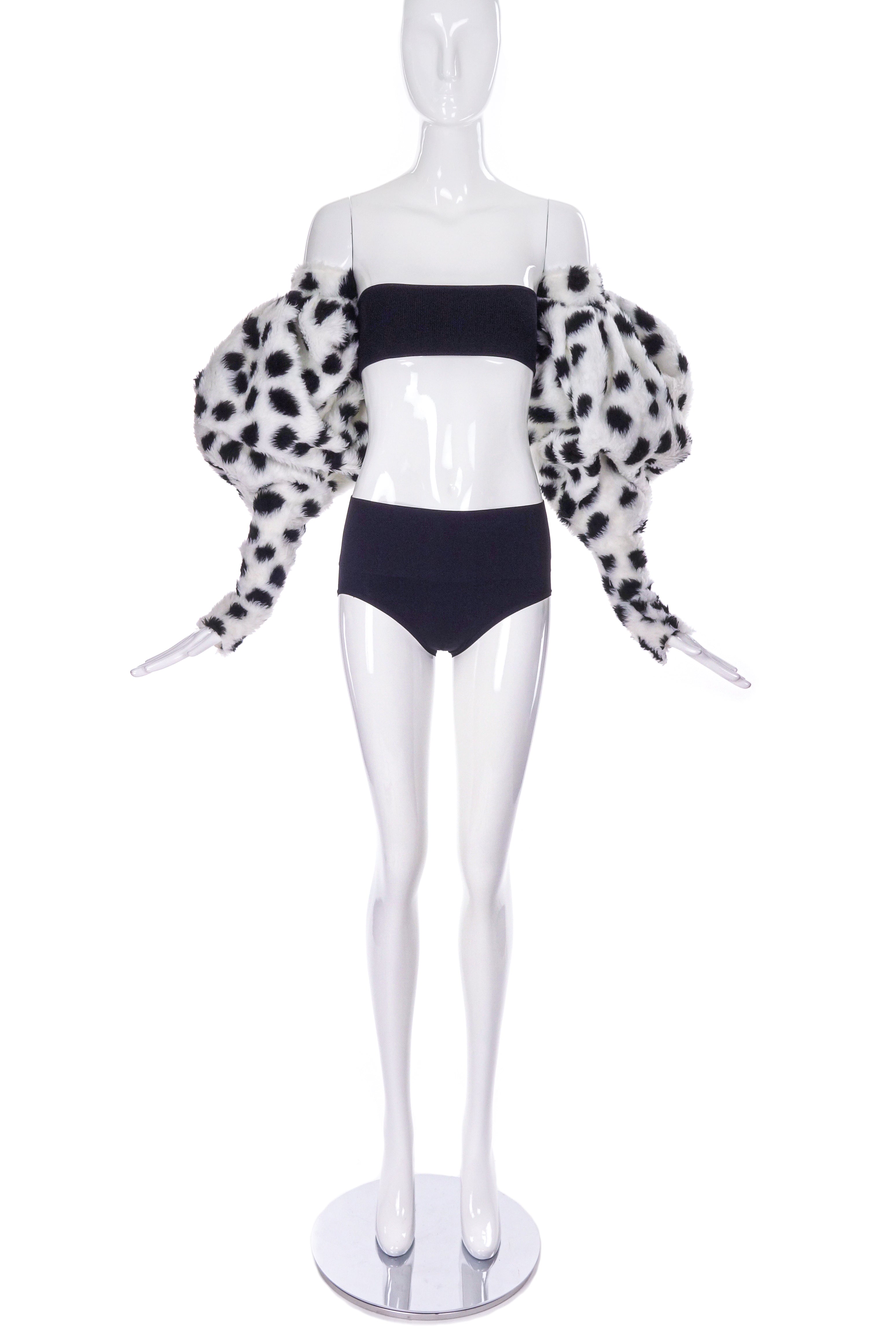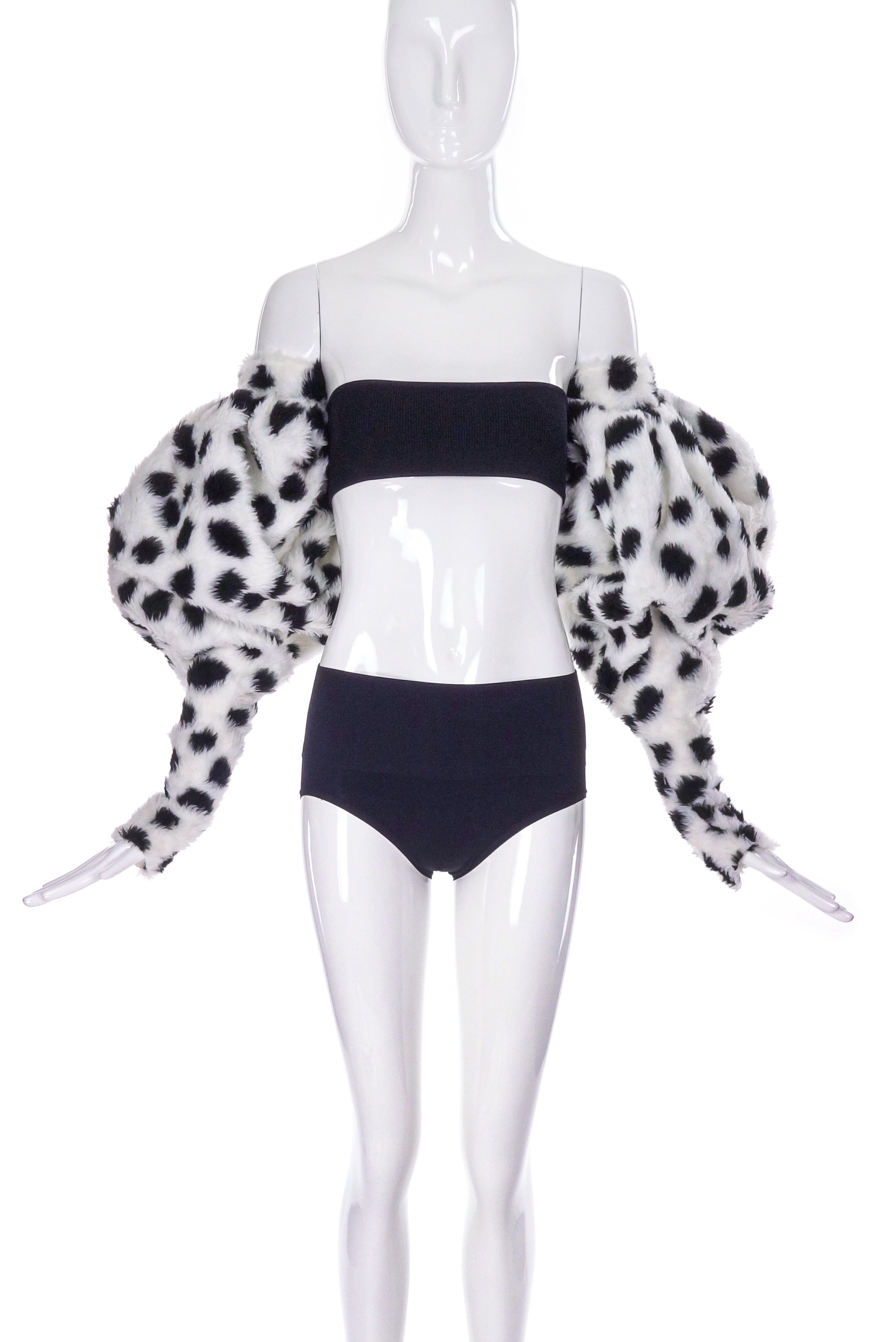 Vintage Black White Snow Leopard Print "Teddy" Puff Fur Sleeves