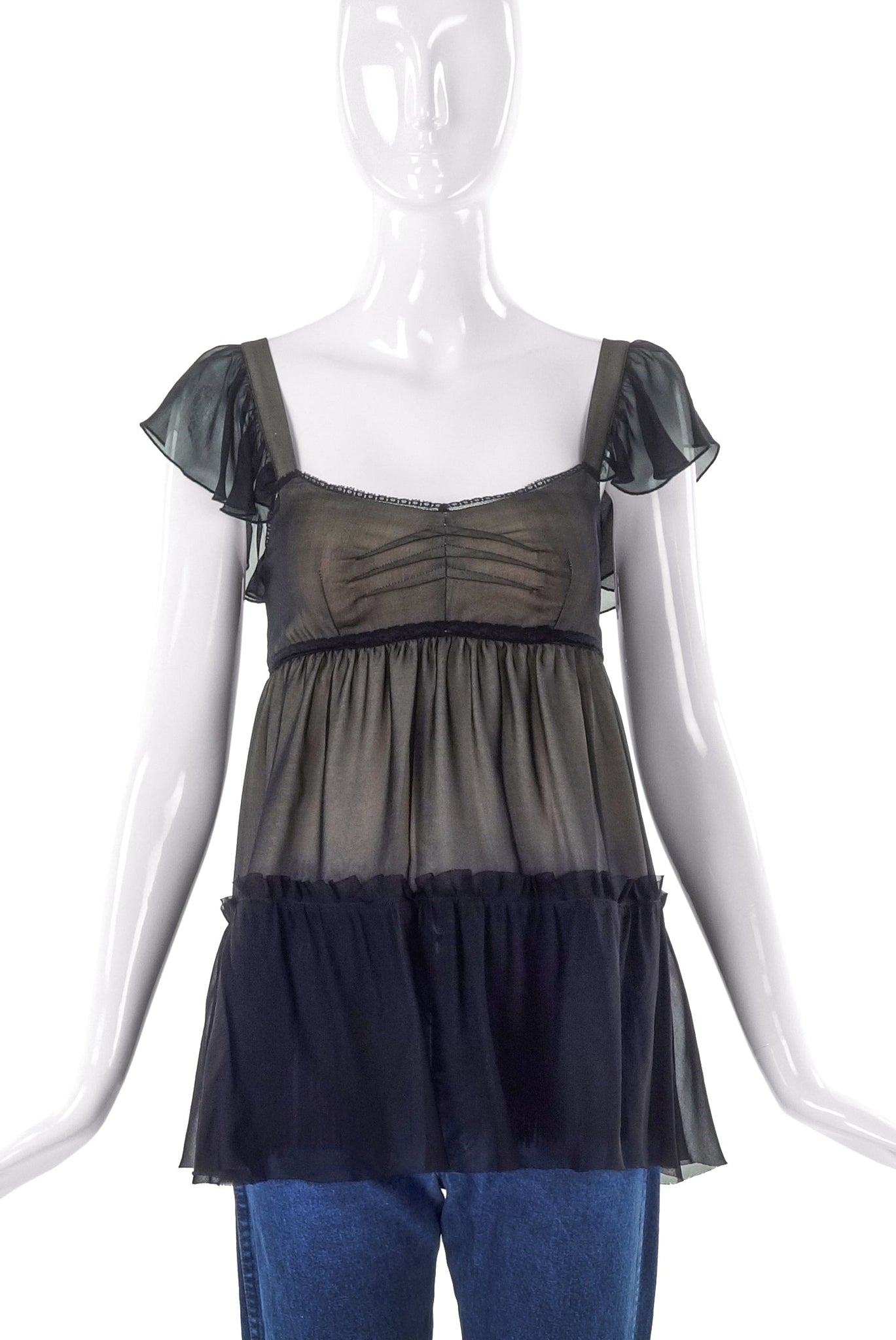 D&G by Dolce & Gabbana Black Chiffon Baby Doll Top - BOUTIQUE PURCHASE PRICE