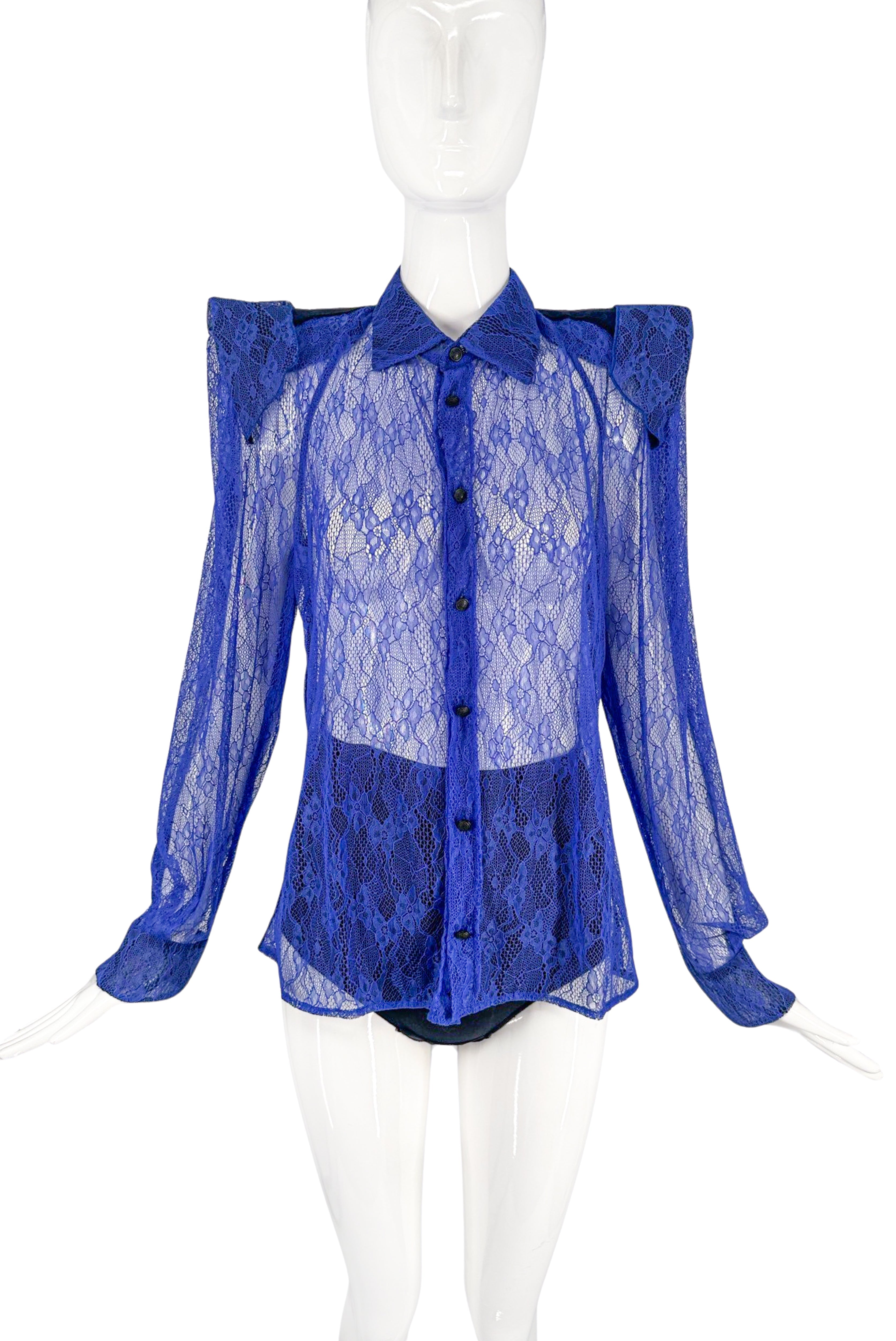 Koche Paris Blue Lace Spike Shoulder Pad Blouse Shirt
