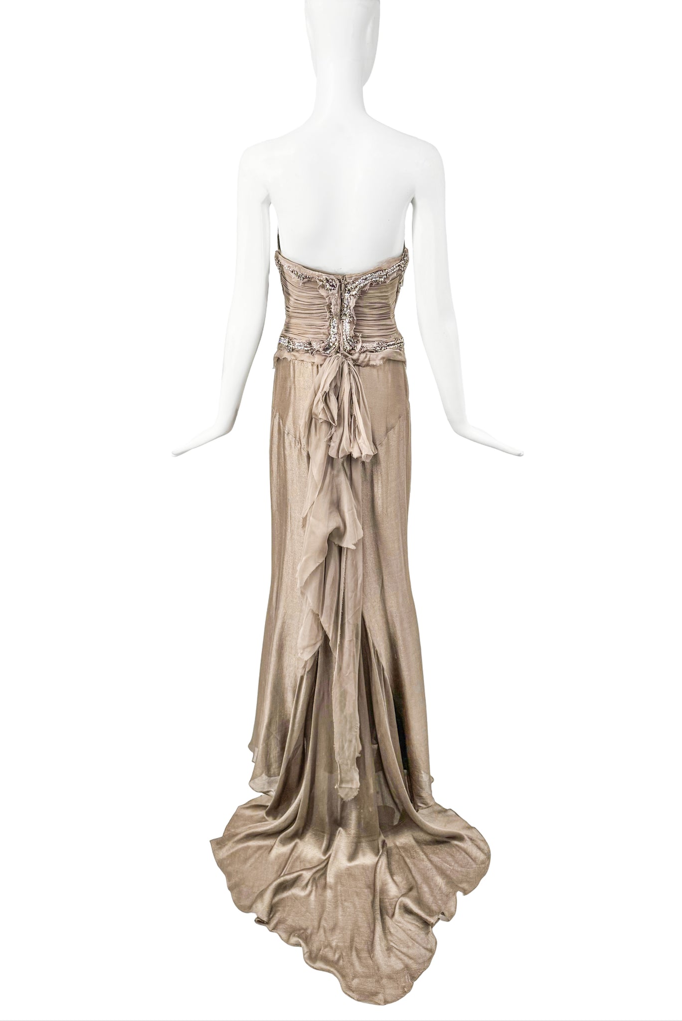 DSquared Grey Gold Metallic Crystal Corset Two Piece Gown