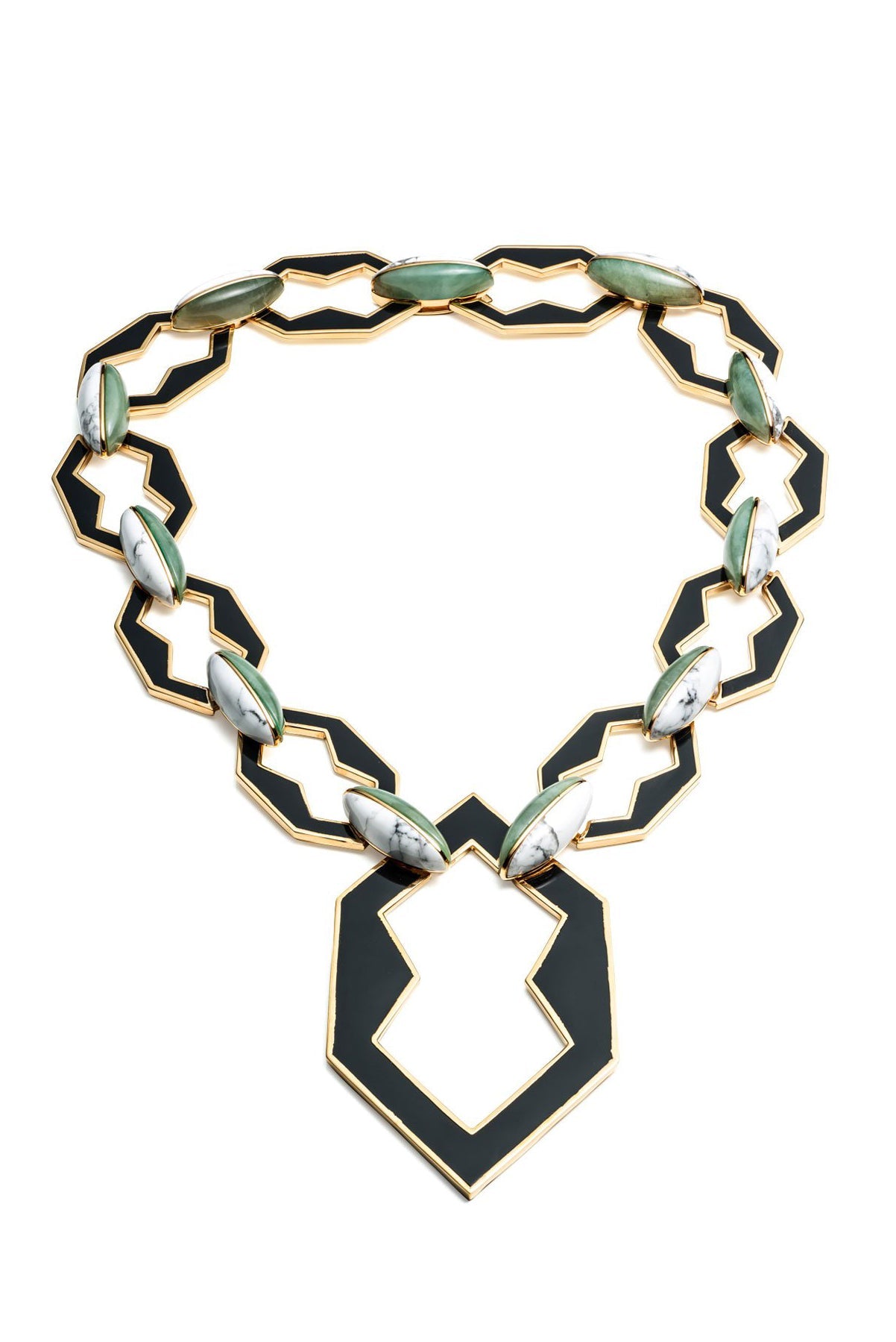 This Eddie Borgo necklace shows the designer's devotion to modernizing design with sharp shapes, graphic colors, and mixing unusual materials.